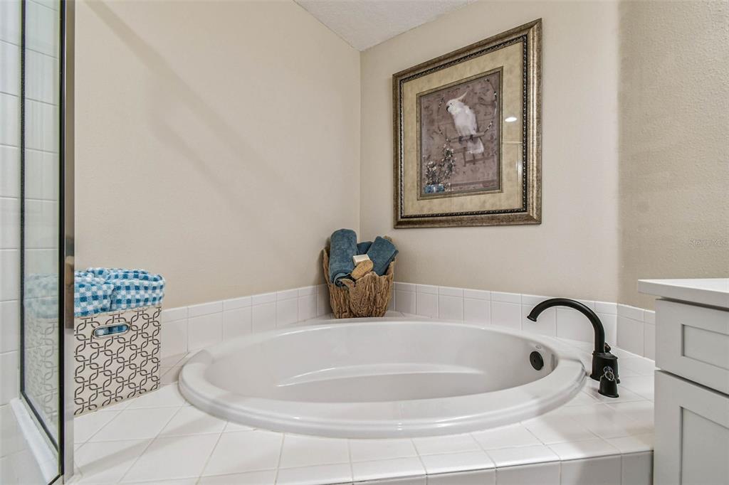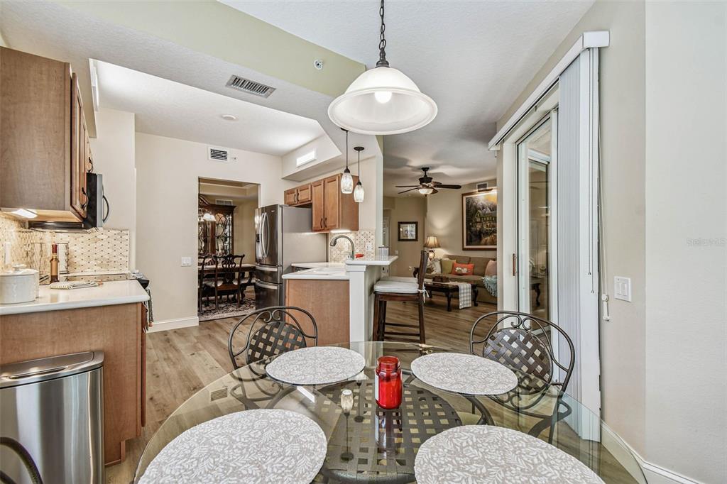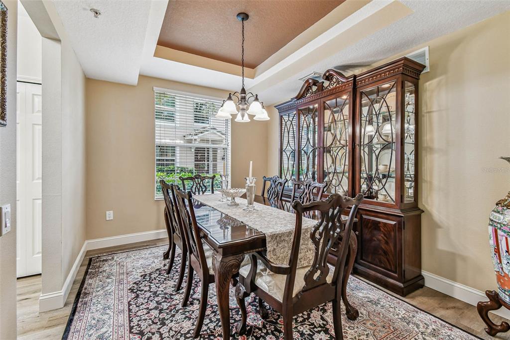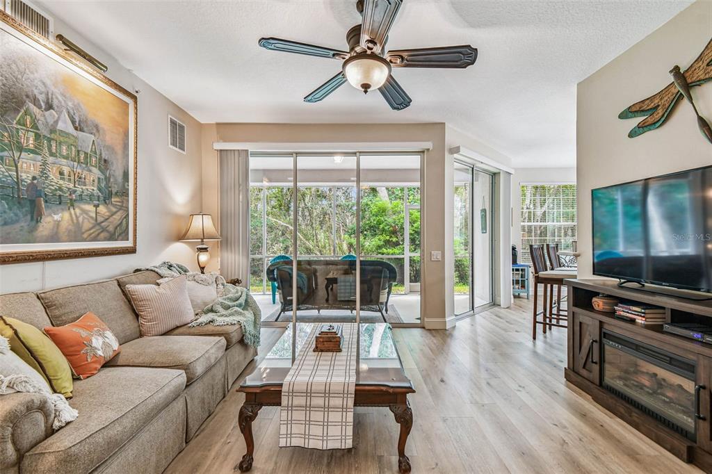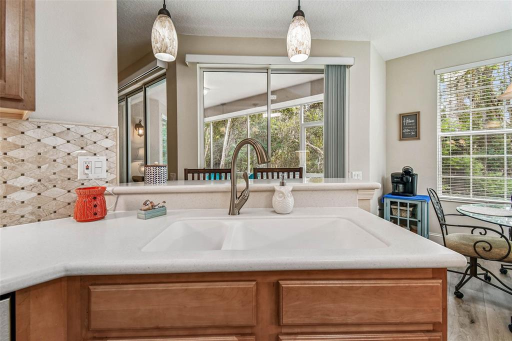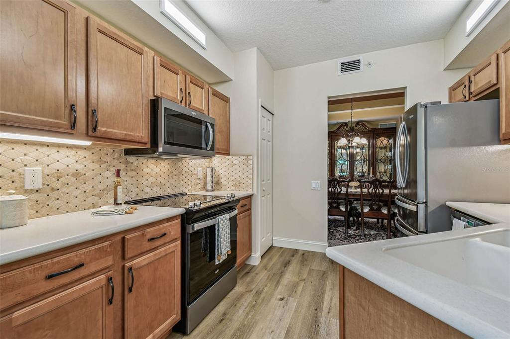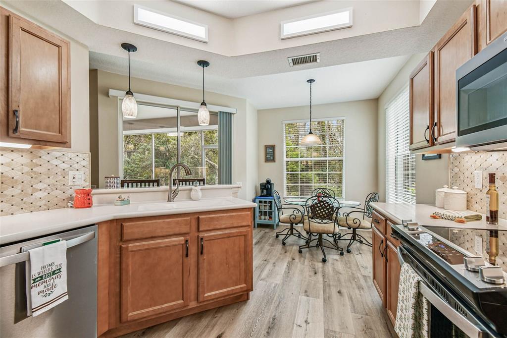 Serene and elegant ground floor condo steps from the open-air heated pool, in a quiet gated park-like pet friendly community. no flood/no evacuation zone, elevation 70'. most popular model sandpiper, a ground floor corner condo located on the reserve, a protected natural wetland. gated courtyard entry, covered front door. condo is rear-facing, spacious light & airy living room with 9’ceilings bordered by sliding glass doors overlooking lanai. foyer and dining room have trayed ceilings. kitchen has whirlpool appliances (2024), tiled back splash, under-cabinet and enhanced ceiling lighting. eat-in breakfast nook with breakfast bar overlooking lanai and landscaped grounds and reserve. lanai is private with large sliding glass doors (8'tall) leading from the breakfast nook, primary bedrm and living rm. primary bedroom has 2 walk-in closets, small linen closet, en-suite bath. en-suite bath has garden tub, separate walk-in glass & tile shower, double-sink vanity with storage, commode closet. double-doored entry to spacious third bedroom/library/office/den without closet overlooking gated front courtyard. second bedroom is large with front-facing window. laundry room with storage can accommodate side by side appliances. oversized one-car garage with storage and attic access. includes original custom hurricane shutters, hurricane rated garage door with opener, fire sprinkler system, individual vendor security system. a/c replaced 2023. private double gated loop road, mature landscaping with oak & magnolia trees. the community center houses mailboxes, well-equipped fitness center, and heated open-air community pool. waste-water lift-station generator (2019) in case of power outages. roof is included in condo monthly fee. minutes to world-class honeymoon island, clearwater beach. close-by shopping includes several publix’s, whole foods, trader joe's, sprouts, barnes and noble, clearwater mall, and countryside mall. close to tampa international, clearwater-st. petersburg airport, city of clearwater municipal airport. easy access to tampa rd, courtney campbell causeway, i-275. condo assoc approval is required for purchase or lease. verify with condo assoc for specific questions. room measurements are based on publicly published pulte floorplan.826 LANTERN #103, CLEARWATER, FL 33765