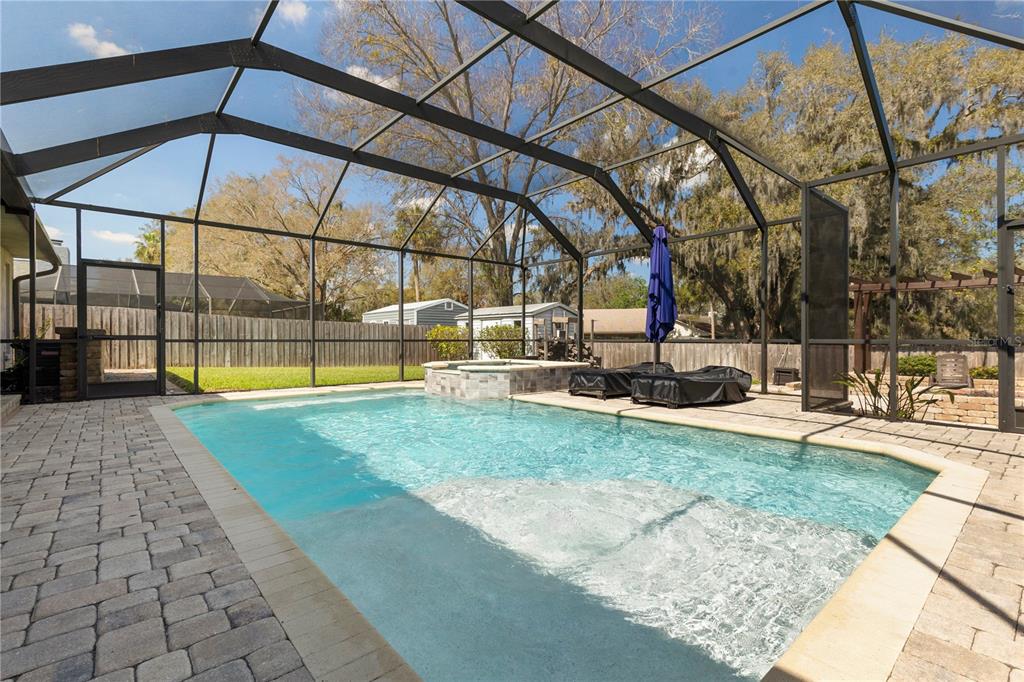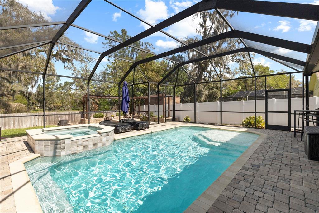 A one-of-a-kind retreat nestled in the highly sought-after timber pond community! this beautifully updated 5-bedroom, 3.5-bathroom home with a pool and fully fenced yard offers over 3,000 sq. ft. of living space on a generous half-acre lot. with no flood insurance required, no hoa and no cdd, you have the freedom to make this space truly your own while enjoying the beauty and privacy of lakeside living. step inside and be welcomed by a bright and airy foyer, with wood grain tile flooring throughout the main living areas. the spacious living room flows seamlessly into a cozy reading retreat — the perfect place to prioritize relaxation. the kitchen is a chef's dream, featuring stainless steel appliances, ample cabinet and counter space, and a dining area large enough to bring the entire family together. relax and unwind in the family room, complete with a charming wood-burning fireplace—ideal for cozy evenings with loved ones. the downstairs primary suite is beautifully done, boasting a walk-in closet and an ensuite bathroom with a dual sink vanity. upstairs, you'll find four additional bedrooms, thoughtfully arranged to provide privacy and comfort for family or guests. two bedrooms share a convenient jack-and-jill bathroom, while a third full bathroom is easily accessible to the remaining bedrooms. step outside to your private backyard oasis. a spacious deck, sparkling pool, relaxing jacuzzi and pavered patio set the stage for endless outdoor enjoyment. the built-in grill is perfect for weekend barbecues, while the pergola boasts a butterfly garden and charming firepit that will delight family members as they roast marshmallows together on cold nights. the storage shed provides a convenient place to keep yard maintenance and gardening tools. the backyard overlooks a protected wetland offering a quiet country feel and additional privacy year-round. conveniently located in the heart of brandon, this home offers easy access to tampa, riverview, and plant city. embrace the timber pond lifestyle and make this retreat your own. don't miss the opportunity to call this dream home yours!827 TIMBER POND, BRANDON, FL 33510