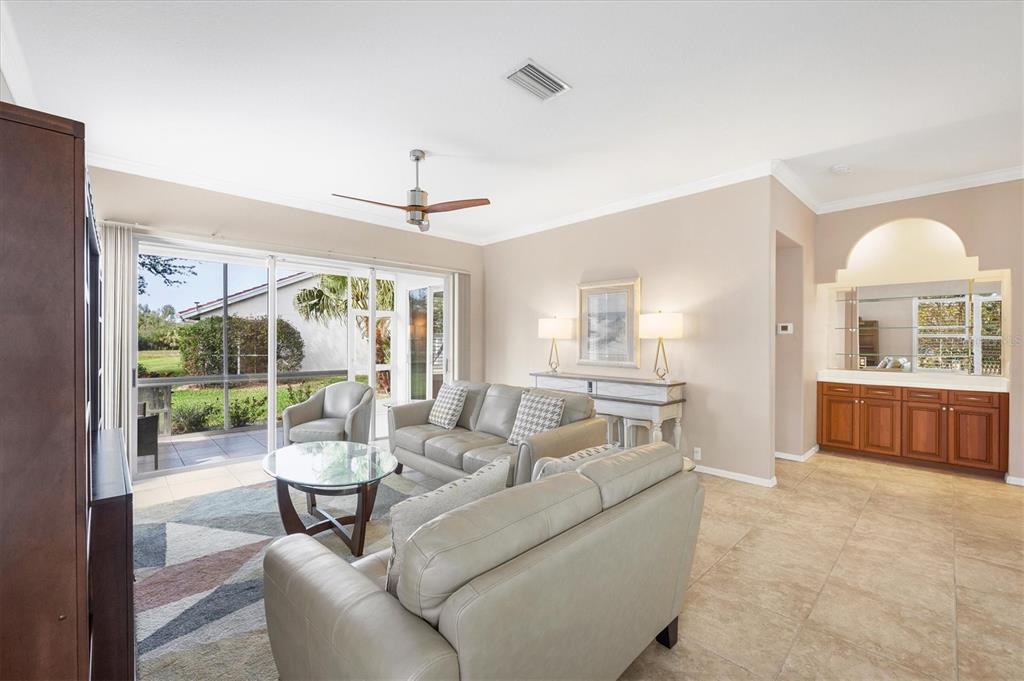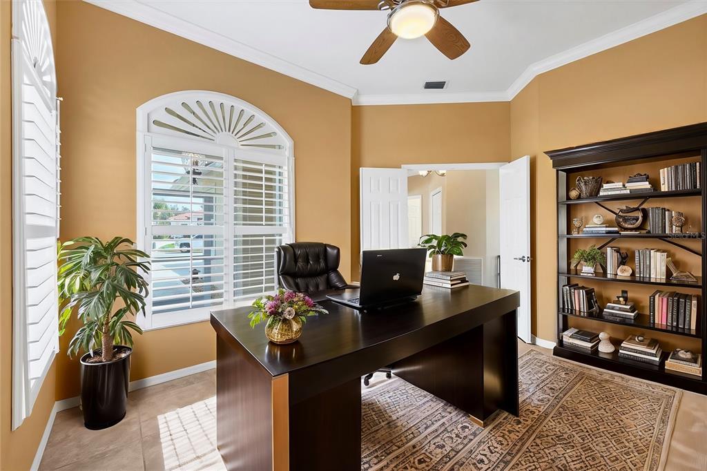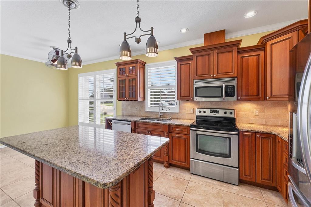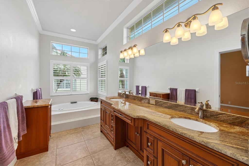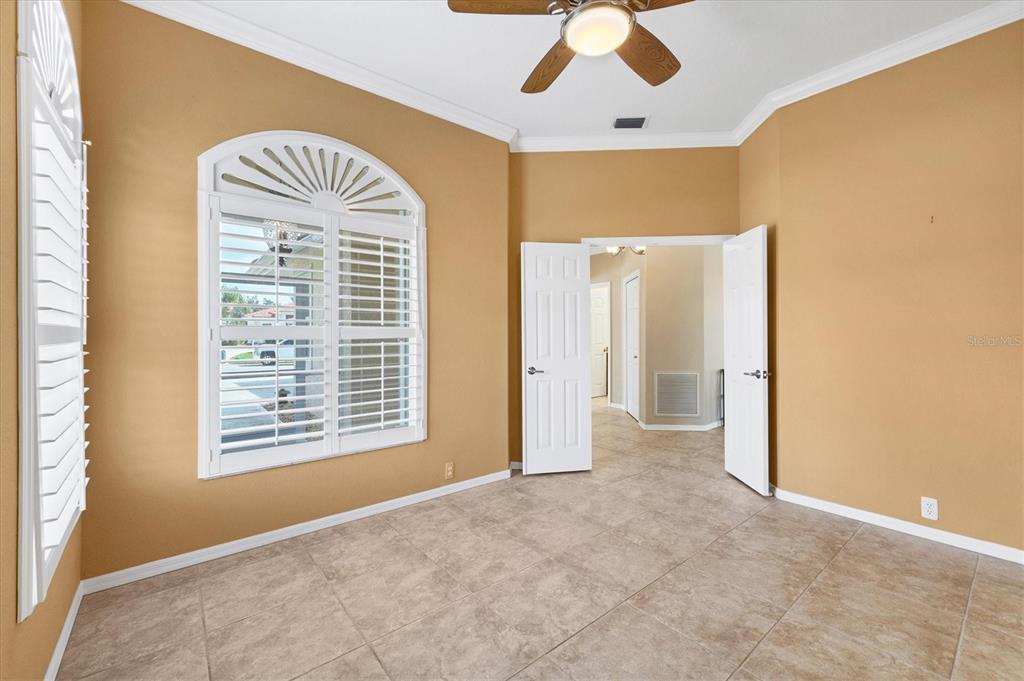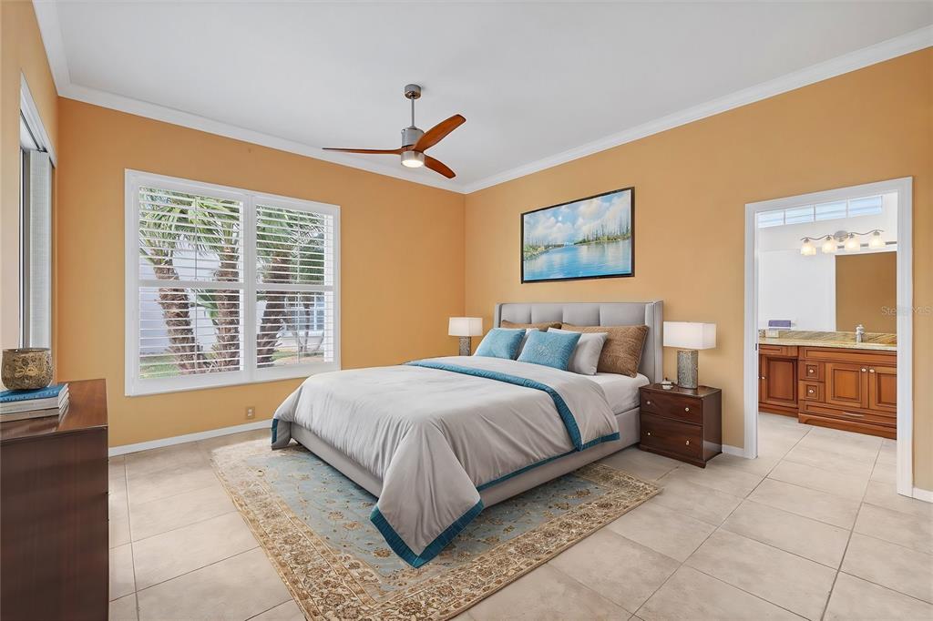 Split Bedroom Walk-In Closet(s)Ceiling Fan(s) High Ceilings Stone CountersCrown MoldingExterior Features: