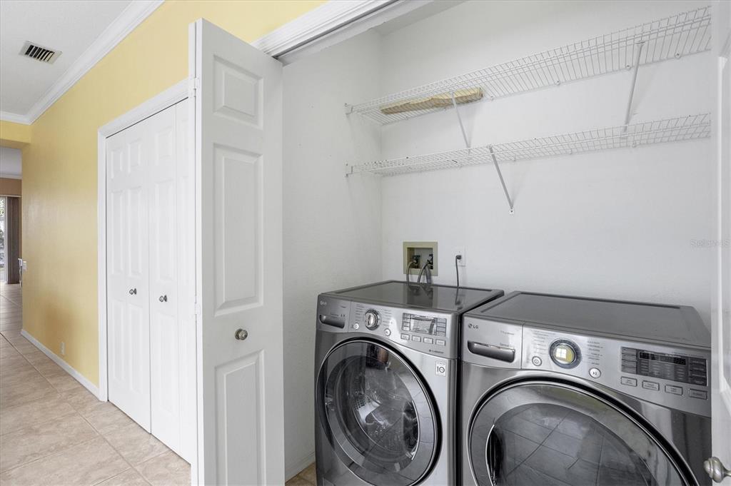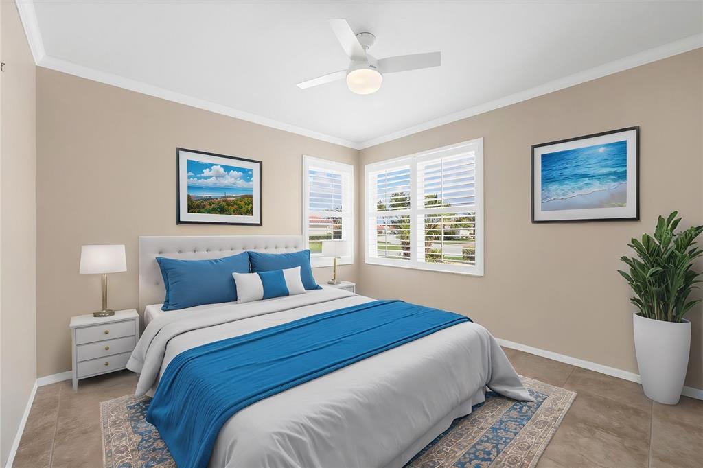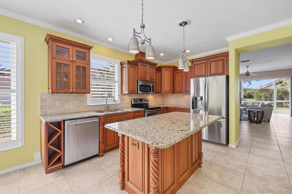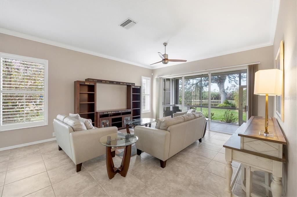 One or more photo(s) has been virtually staged. welcome to 8356 creekview lane, englewood, fl, a beautifully maintained home in the sought-after gated community of oyster creek golf & country club. this stunning 2-bedroom, 2-bathroom home + a versatile den/flex room sits on an oversized corner lot with serene lake views, offering both privacy and a tranquil setting. equipped with hurricane shutters and located in a x flood zone ensuring peace of mind during storm season. **barrel tile roof (2019)**hvac(2021)** as you arrive, the oversized u-shaped driveway welcomes you home, complemented by lush tropical landscape. step inside from your front entry porch to discover vaulted ceilings, elegant crown molding, plantation shutters and tile throughout that entire home which enhances the home’s bright and airy ambiance. the kitchen has all stainless appliances, custom cherry wood cabinets, soft close & pull-out drawers & granite counters. adding to the luxury under cabinet lighting, a built-in wine & wine glass rack and a large island for easy cooking prep. the tucked-away laundry closet in the kitchen includes a full-size washer and dryer, ensuring convenience without disrupting the home’s seamless flow. the spacious primary suite is a true retreat, featuring direct lanai access, a massive walk-in closet, and a spa-like ensuite bath with dual vanities, a garden soaking tub, and a walk-in shower. the guest bedroom and bath are thoughtfully positioned for privacy, while the den provides the perfect space for an office, workout room, or an additional bedroom for overnight guests. an open floor plan connects the spacious living room to a generously sized lanai. imagine spending your peaceful morning sitting on your lanai overlooking the lake while sipping your coffee. this home is set up perfectly for entertaining. guests will enjoy the split floor plan layout. the garage has plenty of space for all your toys & it is easy to keep clean with the epoxy flooring and utility sink. experience the best of florida living in oyster creek conveniently located just minutes away from stunning gulf beaches! this move-in-ready home offers the perfect blend of comfort, security, and florida charm. don’t miss out—schedule your private tour today!8356 CREEKVIEW LN, ENGLEWOOD, FL 34224