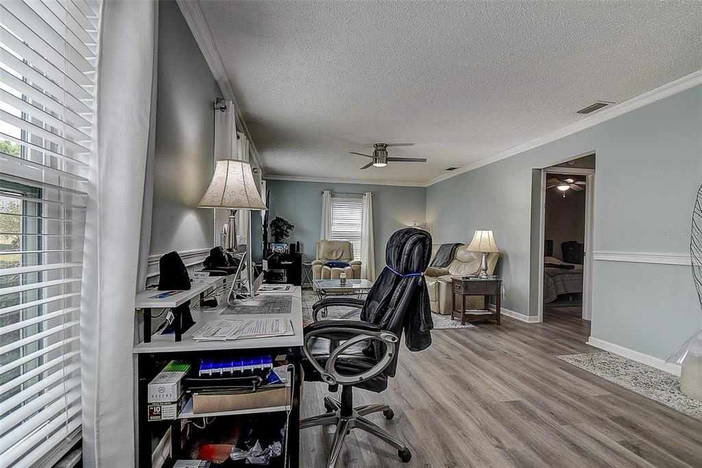 Walk-In Closet(s) Thermostat Open Floorplan Window TreatmentsCrown MoldingExterior Features: