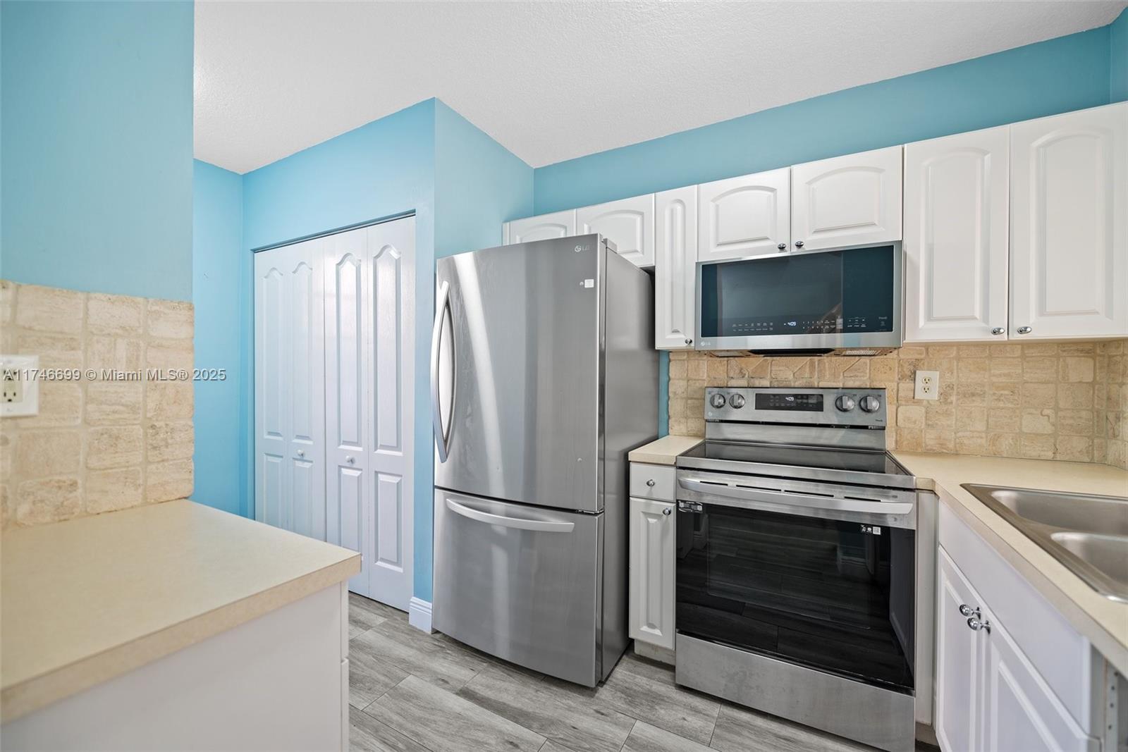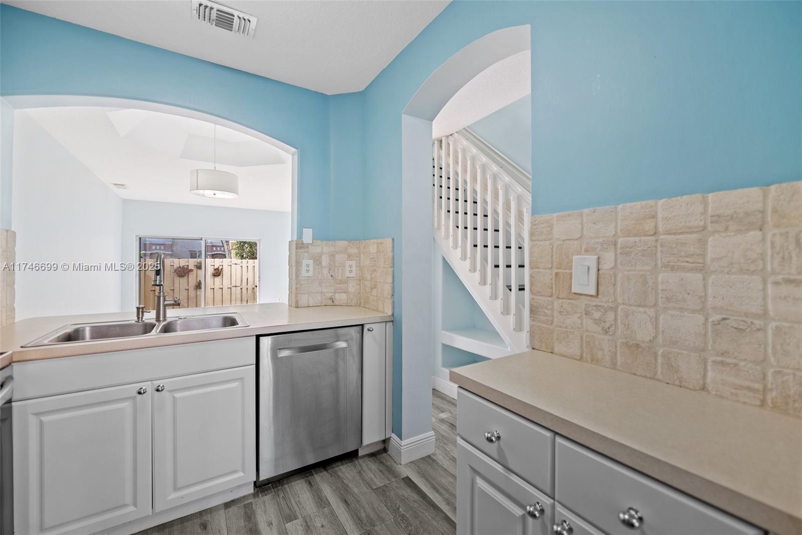 The secret garden townhomes really are one of miami’s best-kept secrets. attractive and well-maintained, they are tucked into the fontainebleau neighborhood b/t flagler & the dolphin expy, at the heart of miami-dade cty. the showpiece entrance to unit 11a welcomes you into a bright, airy gem in like-new condition. you’ll love the soothing sanctuary vibe that fills every room, created by a soft blue, green & grey palette. remodeled baths (2021), new appliances (2023) & gorgeous porcelain tile wood floors (2018) elevate the living experience. eye-catching details such as textured tile kitchen backsplashes, a coffered lighting installation, and the arched window-pass b/t the kitchen & living room put the final touches on this chic home. fenced brick patio. one parking space and guest spaces.Townhouse 2 bedrooms - SECRET GARDEN CONDO for Sale