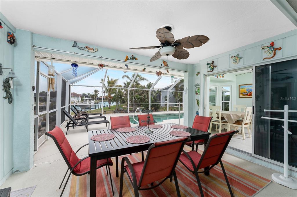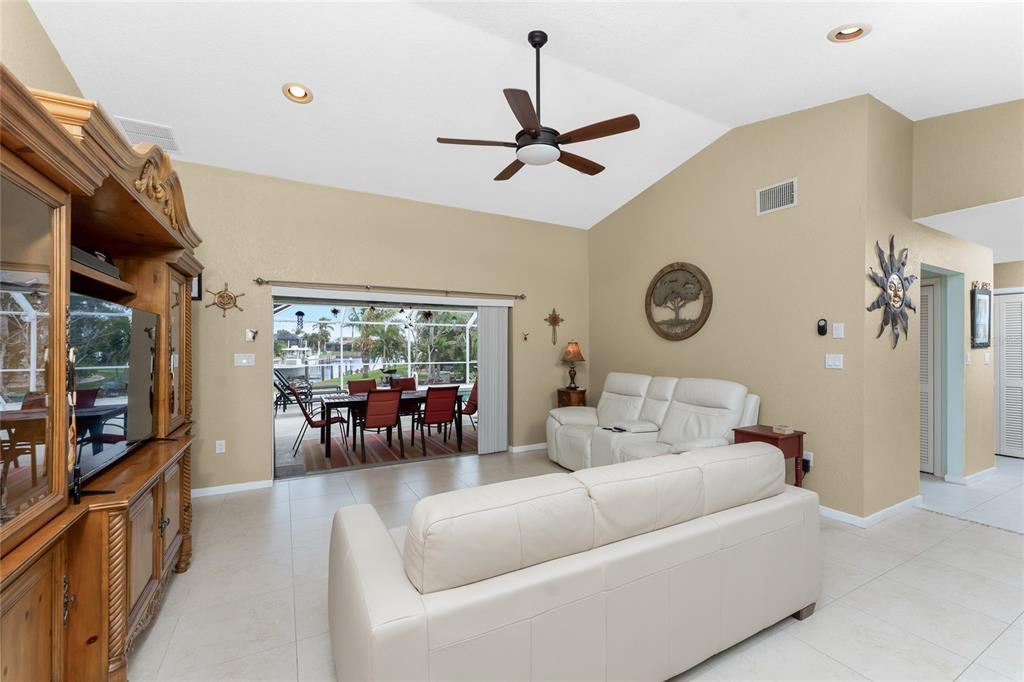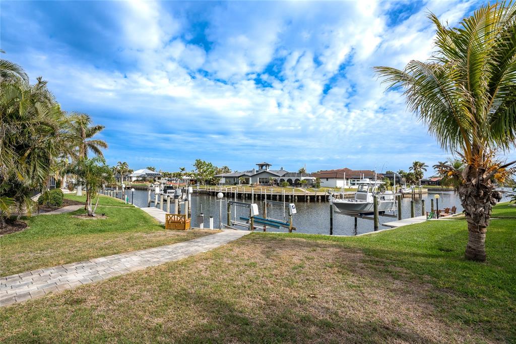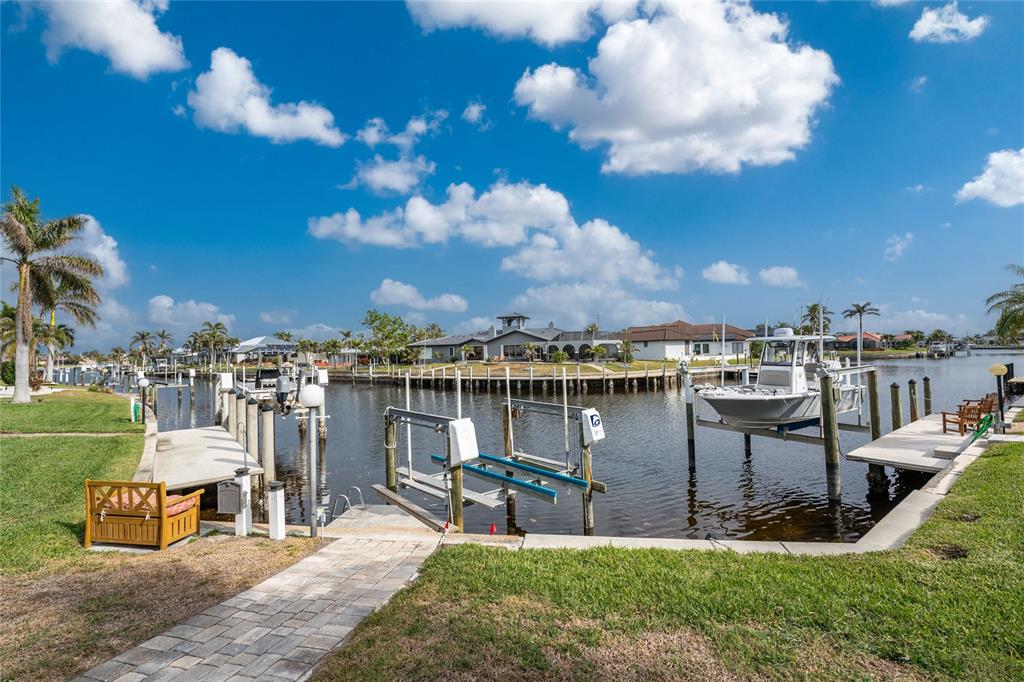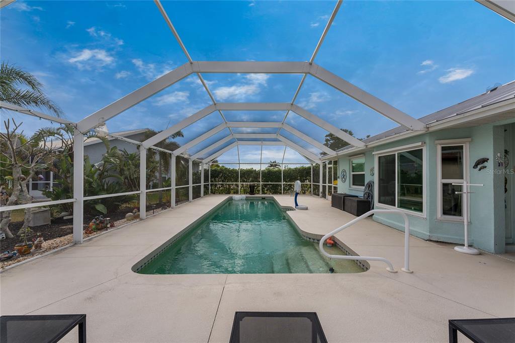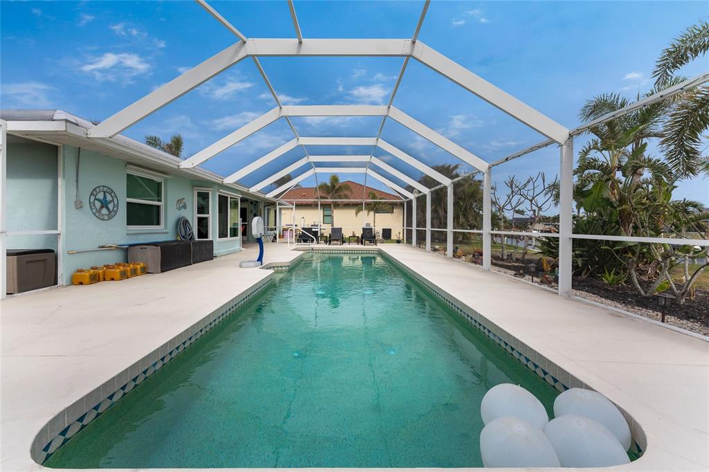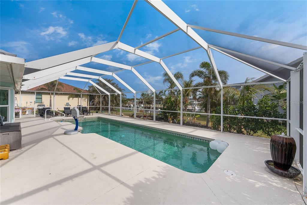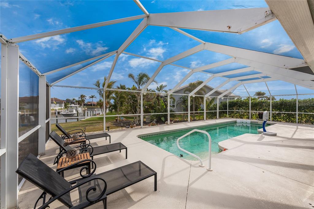 Impressive waterfront pool home with expansive water view located on a quiet cul-de-sac street in desirable deed restricted punta gorda isles. quick powerboat access to charlotte harbor and on to the gulf of mexico. this light and bright home offers 3 bedrooms, 2.5 bathrooms and 3 car garage. there is an open and split bedroom floor plan with great room, separate dining room, florida room, well equipped kitchen, inside laundry, florida room. the great room features a cathedral ceiling, tile floor, sliding glass doors to the lanai. the dining room is directly off of the great room the kitchen offers white cabinetry, stone counters, tile backsplash, closet pantry and dining area overlooking the pool and water. appliances include: oven/range, built in microwave, refrigerator, dishwasher. the inside laundry has a washer, dryer, laundry tub and shelving. the master bedroom suite features access to the florida room and lanai. there is a walk in closet and private bathroom with dual sinks, walk in shower, stone counters, wood cabinets. there are two generous sized guest bedrooms with large closets and the guest bathroom features wood cabinets, stone counters and tub/shower combination. your living space extends via sliding glass doors to the screened lanai. there is a covered area, large pool deck for sunbathing, heated inground gunite pool, and paver patio with sink, under counter refrigerator and room for a grill. a paver walkway leads to the waterfront. there is a 32 foot concrete seawall maintained by the city of punta gorda, 41sf dock and 7000 lb boat lift. other features include: 3 car garage with 4 post car lift (car lift is not included but is negotiable), hurricane shutters and impact windows, tile floors throughout, large driveway with access from both via tunis and appian drive, screened front entry, cathedral and vaulted ceilings, new metal roof 2022.....new a/c 2022....new hurricane impact windows 2022....new garage doors.....new pool heater 2019. there are deed restrictions but no hoa. utilities are city water and sewer. this home is 5 minutes from golf and 10 minutes from historic downtown punta gorda shopping, dining, medical care, waterfront parks, walking and biking paths, boat ramps, fishing piers, charlotte harbor event center, art galleries, weekend farmers markets, events and more!840 VIA TUNIS, PUNTA GORDA, FL 33950
