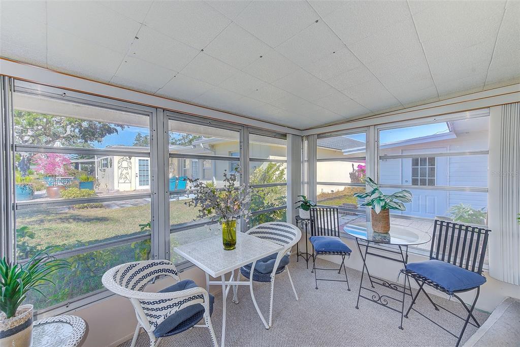 Discover your ideal dunedin florida retreat in this charming 1-bedroom, 1-bathroom end-unit villa located in the peaceful 55+ community of skye loch villas. recently refreshed with a coastal-inspired color palette, this home is in excellent condition and situated at the end of the street in a no-flood zone, offering added peace of mind. enjoy the practicality of your own covered carport, complete with extra storage. the villa boasts incredible storage options, including a large pantry in the kitchen, a spacious walk-in closet with laundry located between the bedroom and bathroom, and a generously sized linen closet adjacent to the bathroom. the kitchen features modern stainless appliances, granite countertops and ample cabinetry, making meal preparation a breeze. the bedroom offers a cozy retreat, while the three-seasons enclosed porch and an additional open patio provide perfect spaces to enjoy the serene outdoors year round. so close to downtown dunedin which is a vibrant village that offers great restaurants, boutiques, breweries and tons of local and holiday themed events year round. also located just minutes from the pinellas county trail for biking and walking, honeymoon island’s stunning sandy beaches, and world-renowned clearwater beach, this home is in the heart of everything. travel is convenient with tampa international airport less than 30 minutes away and clearwater st. pete airport only 15-20 minutes from your door. with extremely low monthly hoa fee that includes everything other than electric... hoa covers cable tv, internet, exterior and grounds maintenance, sewer, trash, water, and access to the community pool, you can enjoy a low-maintenance lifestyle in an active community. schedule your showing today and embrace the best of florida living!Villa 1 bedrooms - SKYE LOCH VILLAS UNREC for Sale