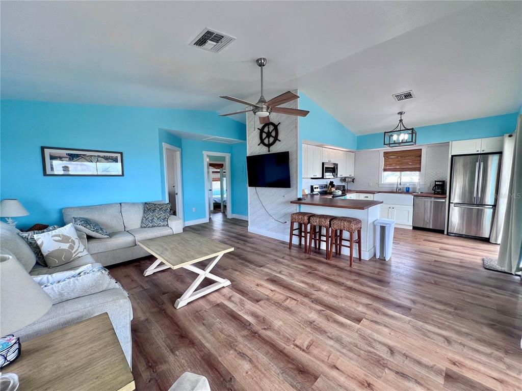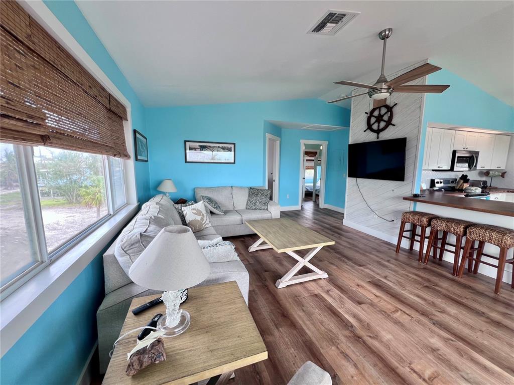 Price reduction on this lovely island home. second home back from the beach on little gasparilla island, a bridgeless barrier island off the cape haze peninsula. this home is open, bright and fully furnished, just bring your swimsuit and flip flops. the walk to the beach or dock takes about a minute in either direction. on the large front porch, where you’ll feel the warm tropical breezes, you have views of the beautiful blue-green water of the gulf. there are two porches, one that is covered and could be screened in, and the other is a sun deck and grilling area. there are two bedrooms, the primary bedroom has a ½ bath with upgraded vanity and mirror and the full bath has a laundry closet with a stack washer and dryer. the kitchen has stainless steel appliances and was updated a few years ago with shaker style cabinets, butcher block counter tops, designer tile backsplash, and farmer’s sink and faucet. both sliding glass doors onto the porch pocket back out of the way making the home feel more open. the metal roof was put on in 2024. soffit and fascia are in the process of being replaced with vented wood soffit. there is vinyl flooring throughout the home. the age of the a/c unit is 2017. new septic tank was installed in 2020. the community boat dock is first come first served; dock dues are $250 a year. downstairs there is an outdoor shower for you to use when you come back from the beach, or a day out on the boat. there is a new storage shed big enough to hold your golf cart, fishing tackle, and beach toys. little gasparilla island doesn’t have any grocery stores, restaurants, or shops but we have 3 ½ miles of uncrowded beach to wander on and collect seashells and shark’s teeth, swim, or sit with a good book and soak up the sun. there is great fishing in the surrounding waters for redfish, snook, snapper, trout and more. there are sandy trails to drive your golf cart around on and meet all the friendly neighbors. come see what it’s like living on island time.8472 GRAND, PLACIDA, FL 33946