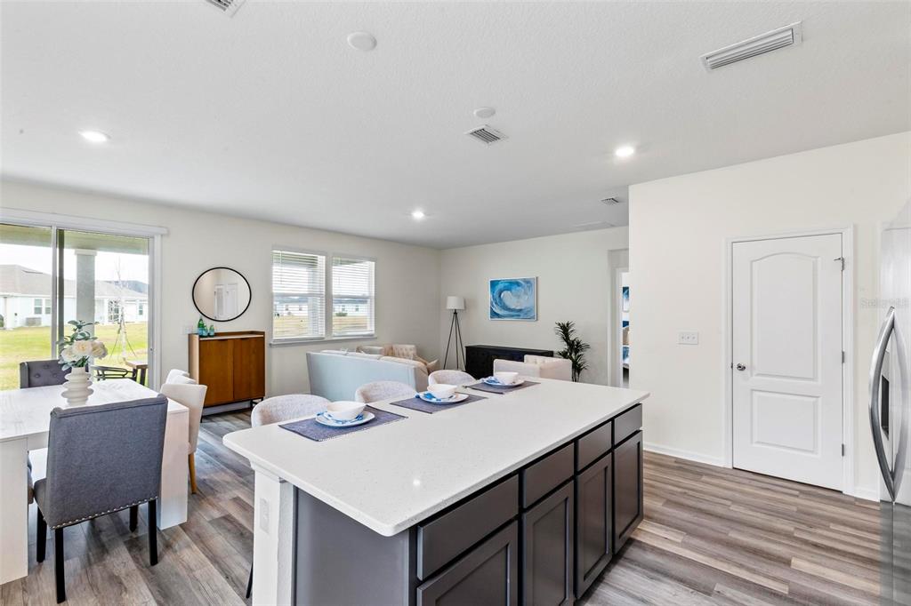 Walk-In Closet(s) Thermostat Open Floorplan Window Treatments Solid Surface Counters Solid Wood Cabinets Kitchen/Family Room ComboExterior Features: