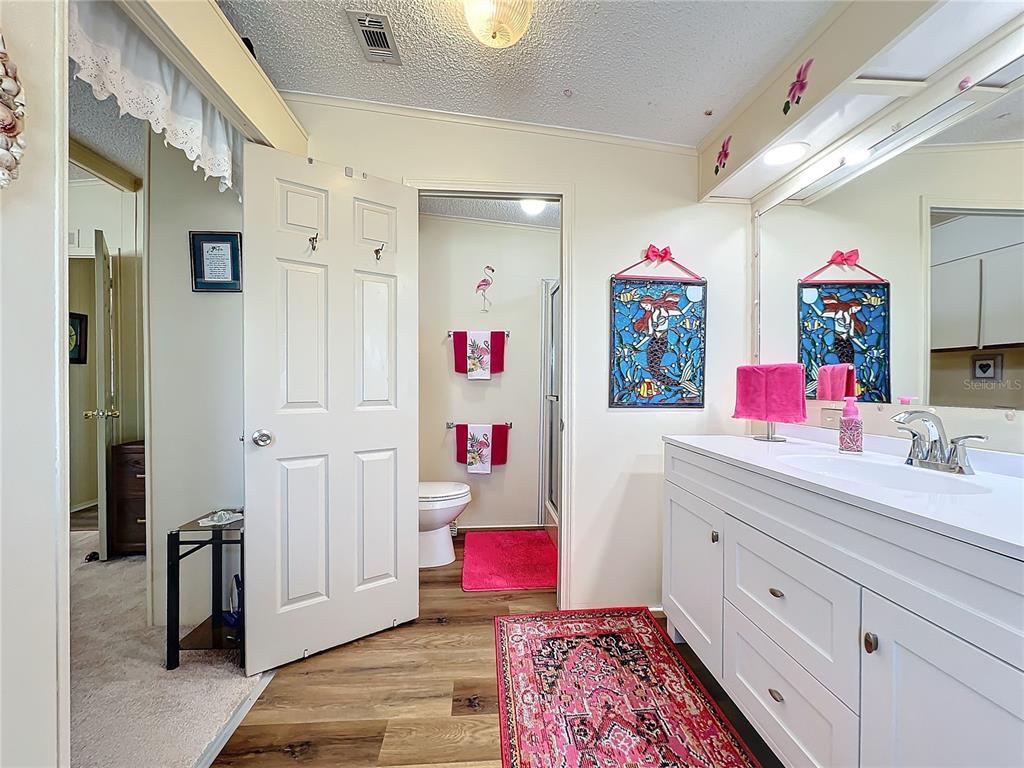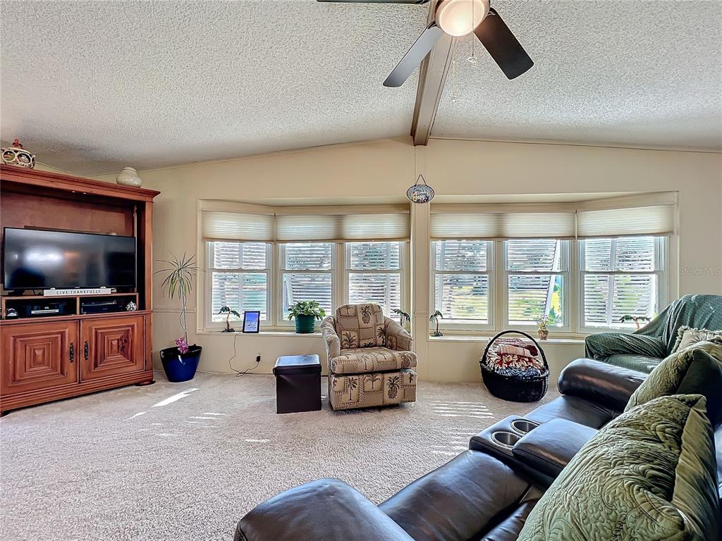 Land owned! spacious home in active 55+ community! this lovely property, overlooking a serene pond, is located on a corner lot. there is plenty of room to relax and entertain in this two bedroom, two bathroom home. the ample living room and enclosed side porch, both have pond views where bird watching is a daily event. the kitchen has a large cooking island with seating, pantry, and plenty of cabinets. off the kitchen is extra space which could be used as additional seating, dining, an office or anything you choose. the huge primary bedroom suite has dual closets, & en suite bathroom with separate room for the commode and shower. the cheerful second bedroom also has an en suite bathroom with tub/shower. other features include: wet bar, built-in cabinets and shelving, inside laundry, plantation shutters, curbed landscaping in the front, storage shed and carport. all appliances included. shingle roof replaced 2024 with transferrable warranty. central a/c (2016). quarterly fees of $631/quarter includes trash & grounds maintenance. this pet friendly community features a heated pool, tennis courts, and many activities and opportunities to make friends. close to i-75, outlet mall, library, dining, retail, and worship. don't let this gracious home get away!Manufactured Home 2 bedrooms - RIDGEWOOD MEADOWS PH II & III for Sale