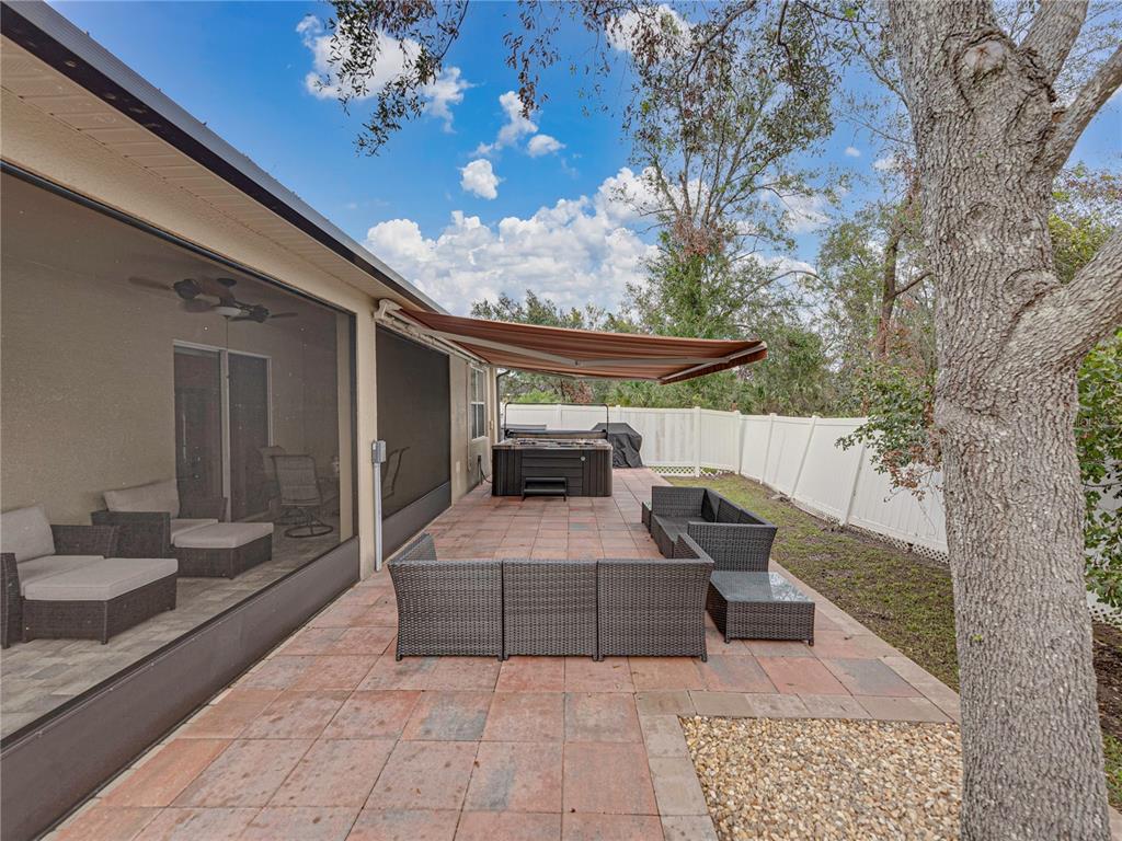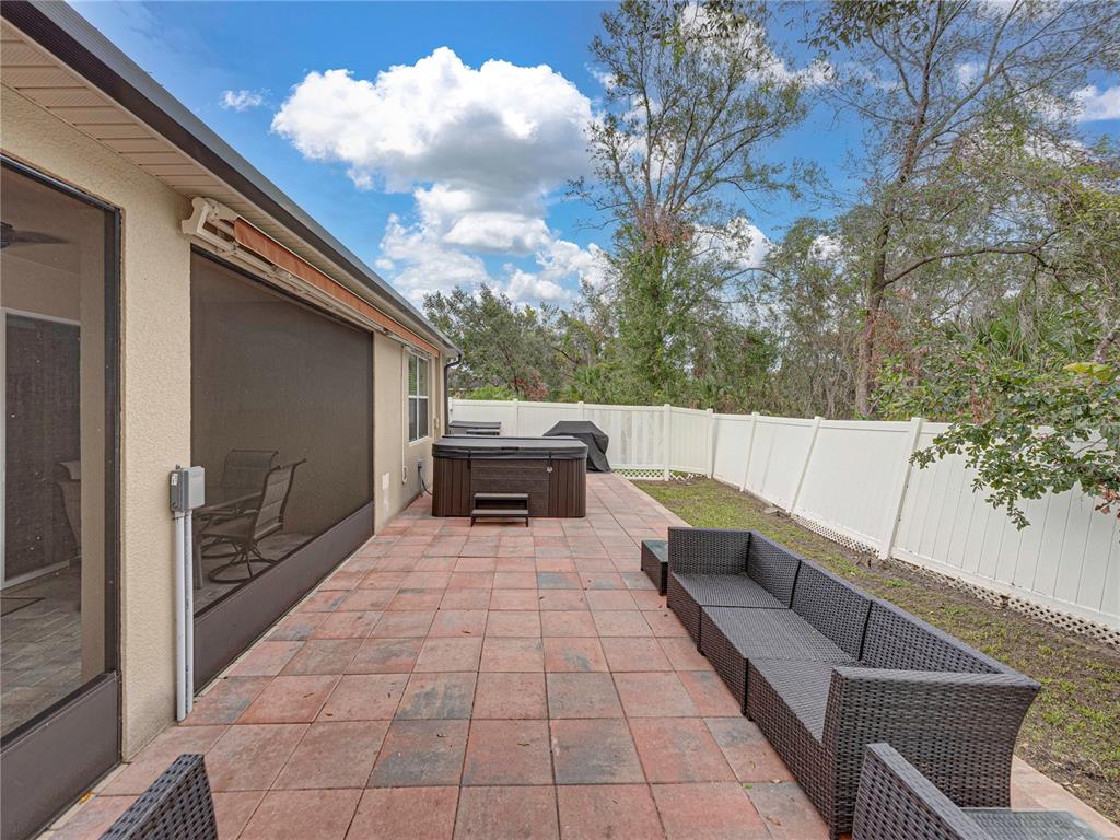 Immaculately maintained home in riverplace with a brand new roof!!! no cdd!! welcome to your dream home! this beautifully maintained property offers a spacious and open living/dining/kitchen floor plan that seamlessly extends to an expansive screened lanai. perfect for entertaining or relaxing, the lanai leads to a raised deck in the fenced backyard, featuring a luxurious hot tub with dual motors, 56 jets, lighting, waterfall, and fountain. enjoy the privacy of no backyard neighbors and the comfort of a large retractable awning that lights up, providing wonderful shade and cooling the entire house. inside, you’ll find tile flooring throughout the main living areas and wet areas, ensuring easy maintenance and a sleek look. the primary bedroom is a true retreat with an en suite bath that includes a large soaking tub, separate shower, and dual sinks. the kitchen is a chef’s delight, boasting an island with seating for four, a large pantry, and a convenient coffee station. additional features include a direct wire in the garage for a generator plug-in, perfect for stormy days when power outages occur. nestled in the private neighborhood of riverplace, this home offers tranquility and convenience with no cdd fees. all schools are conveniently located with bus pickup in the neighborhood. don’t miss out on this exceptional home that has everything you need and more. schedule your showing today!8518 TIDAL BREEZE, RIVERVIEW, FL 33569