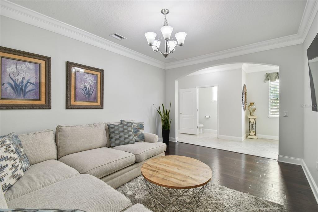 Walk-In Closet(s)Ceiling Fan(s) Living Room/Dining Room Combo Open Floorplan Window Treatments Solid Surface Counters Solid Wood CabinetsCrown Molding Kitchen/Family Room ComboExterior Features: