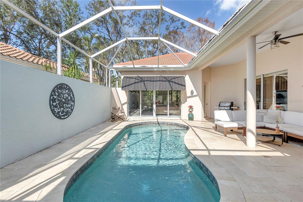 Welcome to the gated, picturesque golf community of rosedale! this beautifully updated home boasts a modern kitchen, an abundance of natural light, and soaring ceilings that create a spacious, inviting atmosphere. as you enter, you'll be greeted by a grand entrance leading to your secluded retreat, complete with a serene courtyard and sparkling heated pool – perfect for relaxation and entertaining. the unique separate bungalow serves as a private third bedroom, art studio offering versatility and privacy. recent updates include a new tile roof (2022), a/c (2020), and hot water heater (2020), ensuring peace of mind for years to come. the home also features a two-car garage with additional parking for your golf cart. ideally located for easy access to i-75, and all the amenities offered by lakewood ranch and university town center. membership of the golf and country club is optional and there are various levels of membership. the recently renovated club offers fitness, tennis, golf, dining and countless social activities!8717 54TH E, BRADENTON, FL 34211