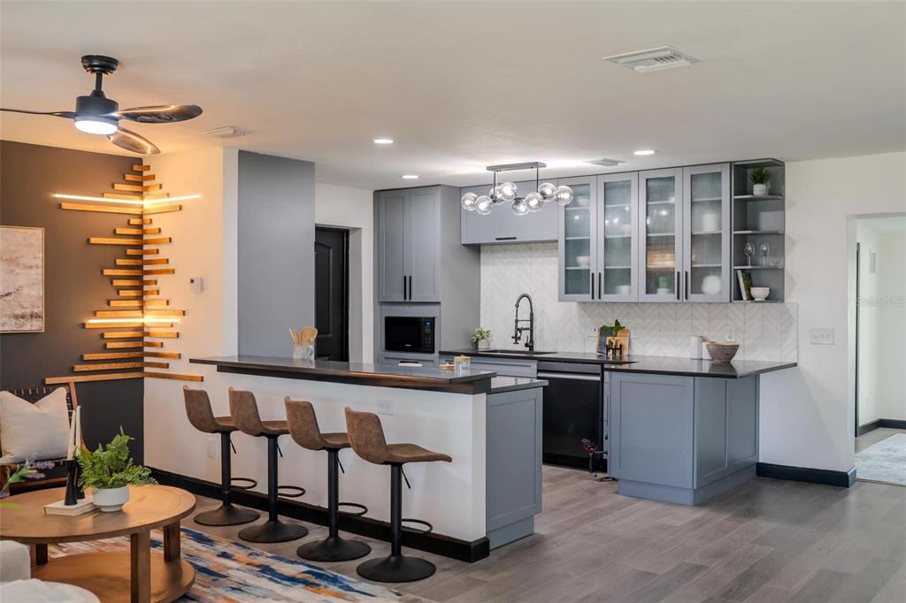 Boaters paradise! welcome to your dream waterfront retreat in the coveted bay crest park community of tampa! this stunning 3 bedroom, 2 bathroom home has been meticulously transformed into a modern coastal haven, offering direct gulf access for all your boating adventures. from the moment you step inside, you'll be captivated by the thoughtful design and high-end finishes that make this home exceptional. the heart of the home is the completely renovated kitchen, featuring sleek new cabinets, striking dark quartz countertops, and dark stainless steel appliances. this space flows seamlessly into the expansive living areas, where energy-efficient sliding glass patio doors invite you to take in breathtaking water views. these doors fully open and stack on both sides, creating a seamless connection between indoor and outdoor living spaces, perfect for entertaining or simply enjoying the serene surroundings. no detail has been overlooked in this top-to-bottom renovation. the home boasts a brand-new roof, hvac system, updated electrical and plumbing, and impact-resistant windows and doors for your peace of mind. the luxurious bathrooms have been thoughtfully redesigned with modern fixtures and finishes, providing a spa-like experience in the comfort of your own home. step outside to discover your private backyard oasis. a luxury pergola with led lights and a louvered roof, hot tub, outdoor kitchen grill, and a fire pit await your relaxation and enjoyment. the new seawall and dock ensure you're ready for summer fun and adventures at a moment's notice. additional upgrades include a new hurricane-resistant garage door, water heater, beautiful new flooring throughout.. and so much more. this is a rare opportunity to own a piece of paradise in the sought-after bay crest park community in town n country. where virtually everything in this home is brand new, all that is left to do is move in and start enjoying the waterfront lifestyle you've always dreamed of. schedule your private showing today and experience this extraordinary home for yourself. county records show previous square footage and bedrooms before the renovations. the county will be updating. current square footage is 1839 with 3 bedrooms - new seawall - new dock - new roof - new hvac - new electrical - new plumbing - new impact windows/doors - new hurricane garage door - new water heater - new kitchen upgrade - new bathroom upgrades - new flooring - backyard oasis (pergola, hot tub, fire pit) - and so much more. this house did flood from the most recent hurricane. all remedies were taken care of immediately.8722 ELMWOOD, TAMPA, FL 33615