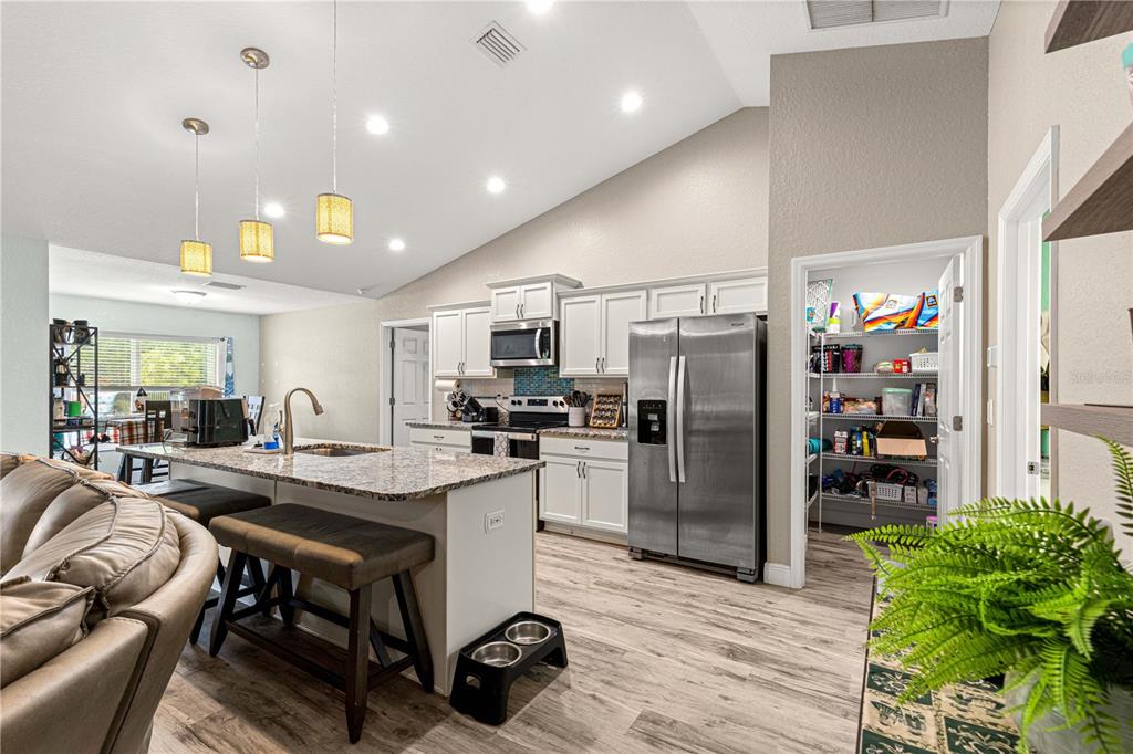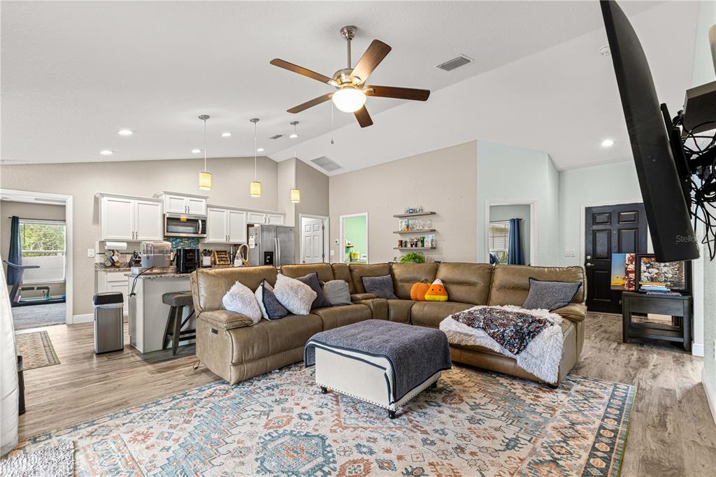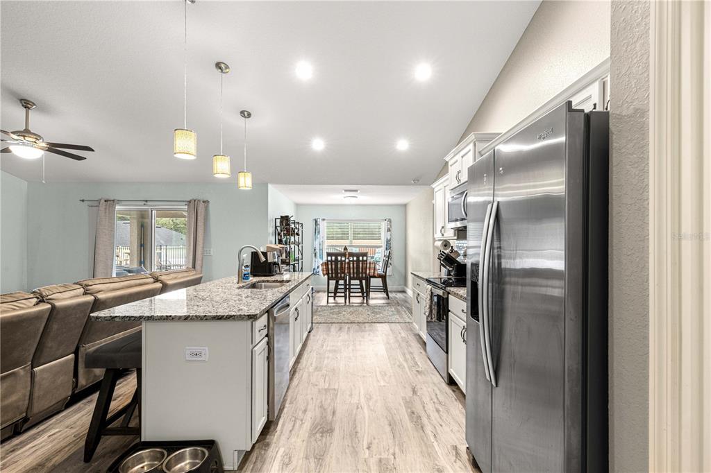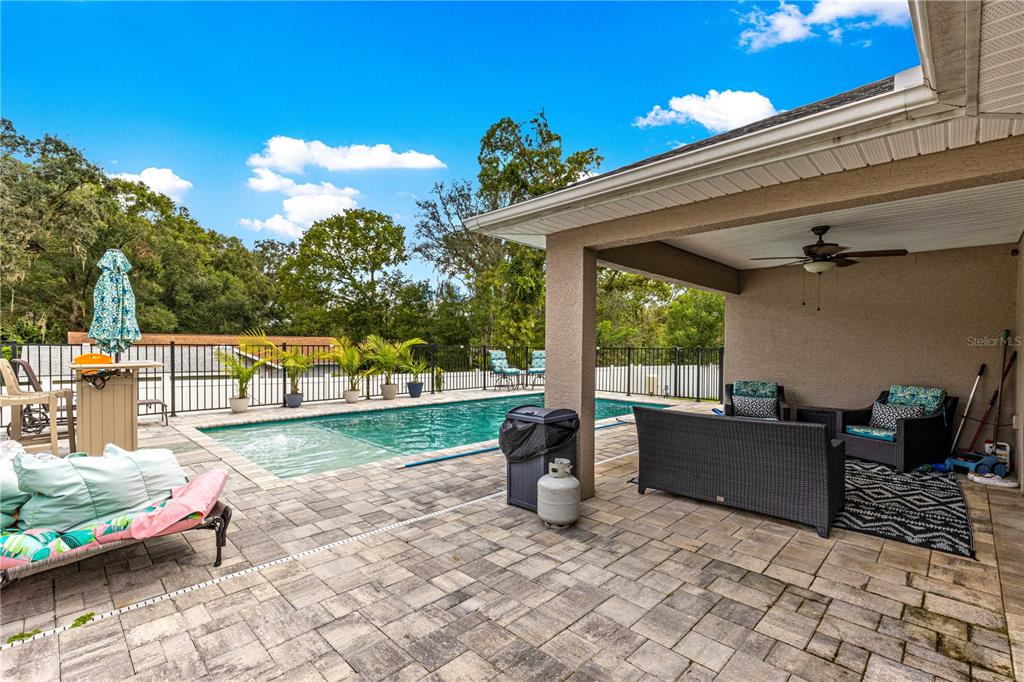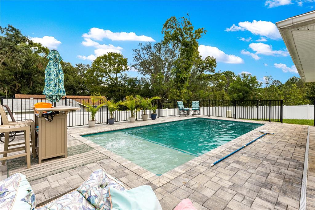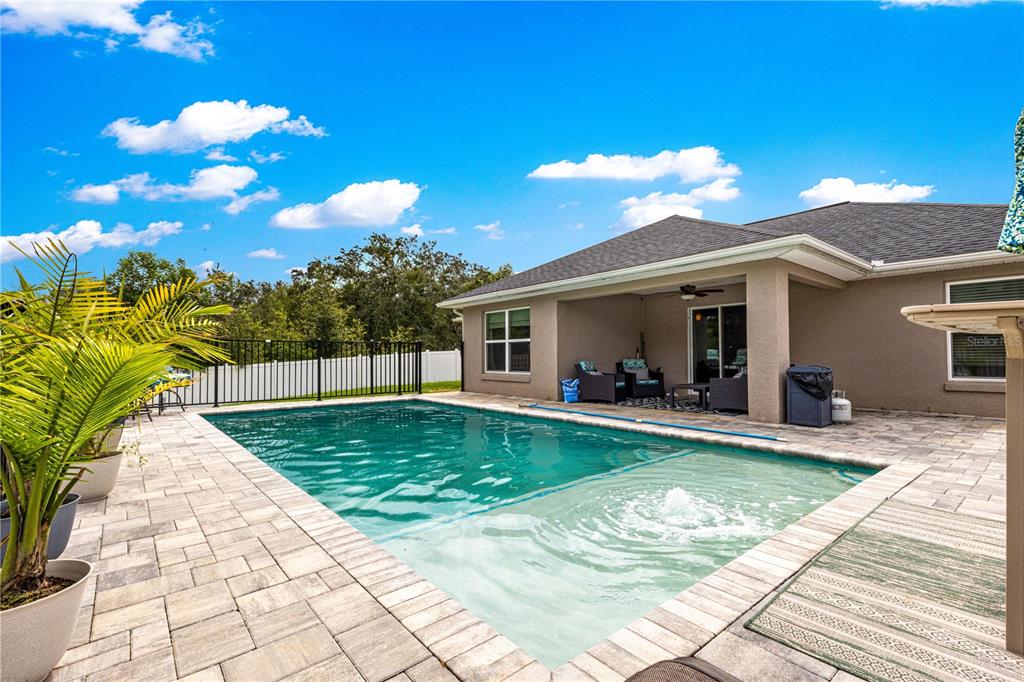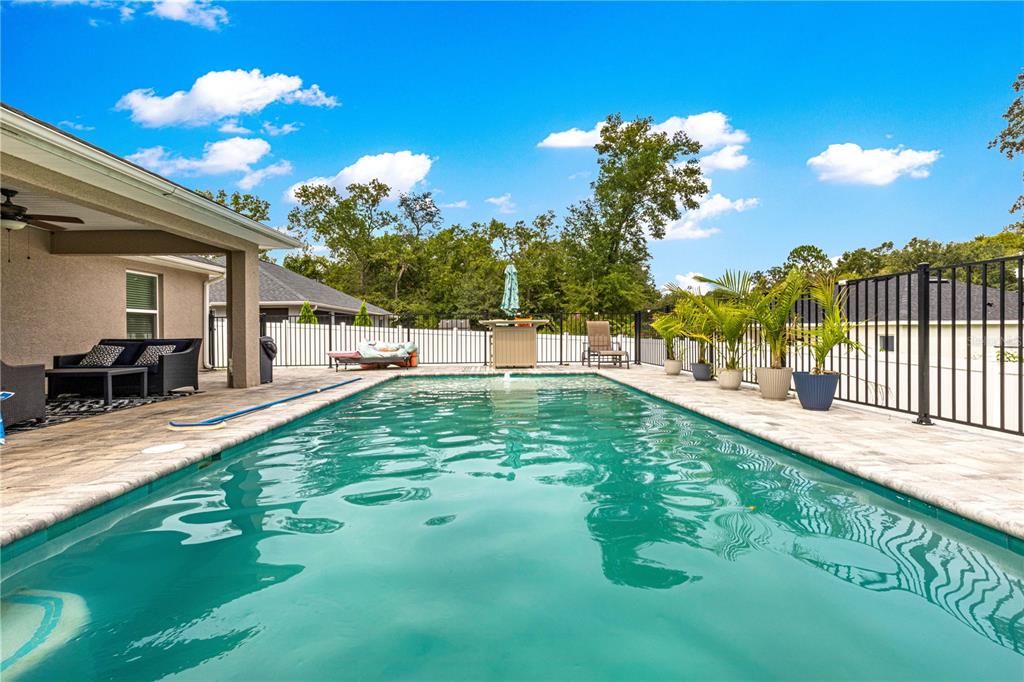 Discover this beautifully designed contemporary pool home offering modern comfort and style. featuring a spacious open split floor plan, this residence is perfect for both entertaining and everyday living. the thoughtfully planned layout separates the primary suite from the guest bedrooms for added privacy, while the open-concept living, dining, and kitchen areas flow seamlessly. step outside to a covered patio and beautiful pavers that frames the sparkling pool—ideal for enjoying florida’s sunny days or hosting evening gatherings. pool also features a ledge for seating and lights. the backyard is fully fenced with vinyl fencing for privacy. the home also has an attached two-car garage with an additional golf cart space ensures ample room for vehicles, storage, and your golf adventures. tucked away on a quiet dead-end street, this home provides a peaceful retreat while still being just minutes from the villages,the va clinic, as well as convenient shopping, dining, and entertainment options. whether you’re seeking a permanent residence or a vacation retreat, this home offers a perfect blend of modern living, convenience, and resort-style relaxation. close enough to take the golf cart to publix.8753 SE 159TH, SUMMERFIELD, FL 34491