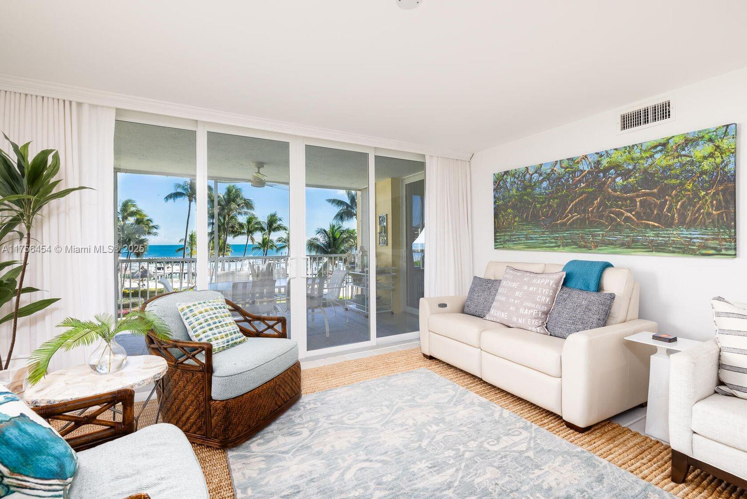This luxury gated enclave offers breathtaking ocean views and lush tropical grounds with top-tier amenities, including a tennis/pickleball court, oceanfront clubhouse, fitness center, waterfront pool, marina with boat slip rentals, beachside tiki hut with bbq, and car charging stations. this spacious unit boasts ocean views from nearly every room, with an expansive screened-in balcony accessible from the living room, master suite, and second bedroom. the master suite features a large ocean-facing window, private bathing room, double-sink vanity, and walk-in closet. the second bedroom shares stunning ocean views, while the third bedroom enjoys a private balcony. meticulously maintained, the unit includes new café kitchen appliances, a washer/dryer, and impact-rated doors/windows.87851 OLD HWY #M26, PLANTATION KEY, FL 33036