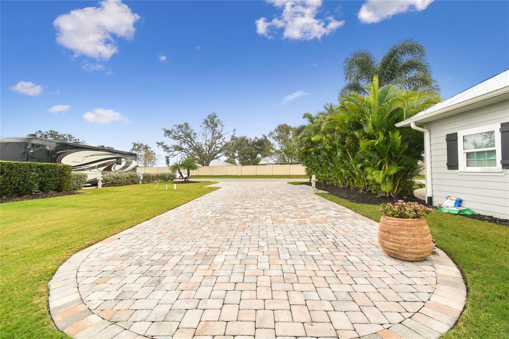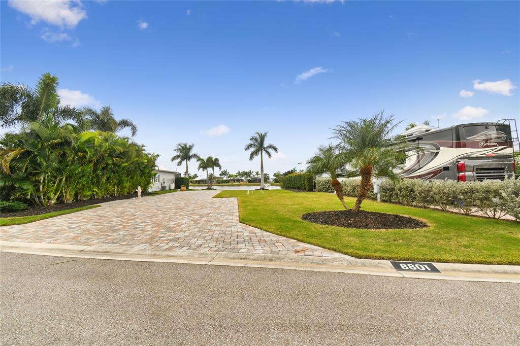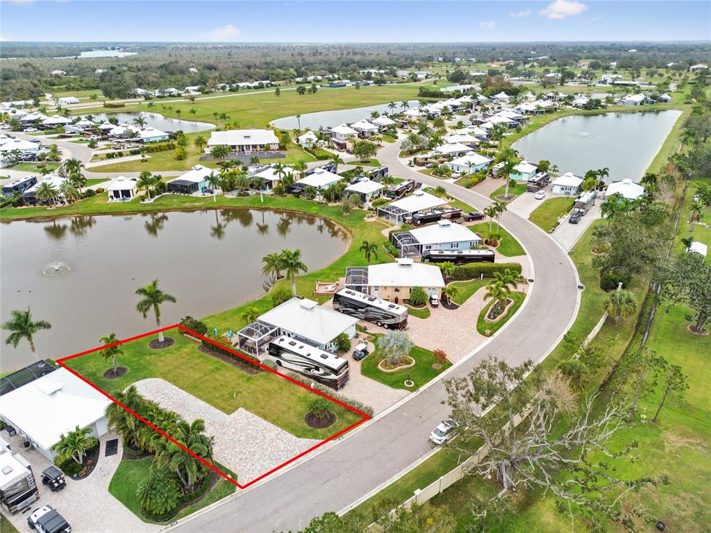 This spacious lot features a large pull-in parking pad that is thoughtfully paved to ensure ample space for any size motorcoach. the front area of the lot boasts an extra-wide paver layout, offering abundant space alongside your coach for added comfort and utility. this lot not only provides a breathtaking water view but also enjoys a unique placement with no neighbors directly in front. encased in vibrant, lush landscaping, the rear of the property is adorned with tropical palm trees, adding to the tranquility of the water view. given its sizable layout, the lot allows for the construction of a casita of up to 1,000 square feet, providing vast potential for customization. enjoy the liberty to design and build your dream space on your own schedule, without the worry of any mandatory building deadlines. this is your chance to claim a coveted lifestyle in this exquisite setting. reach out for a private tour and discover the full potential of this exceptional piece of paradise.8801 SW SAND CRANE, ARCADIA, FL 34269