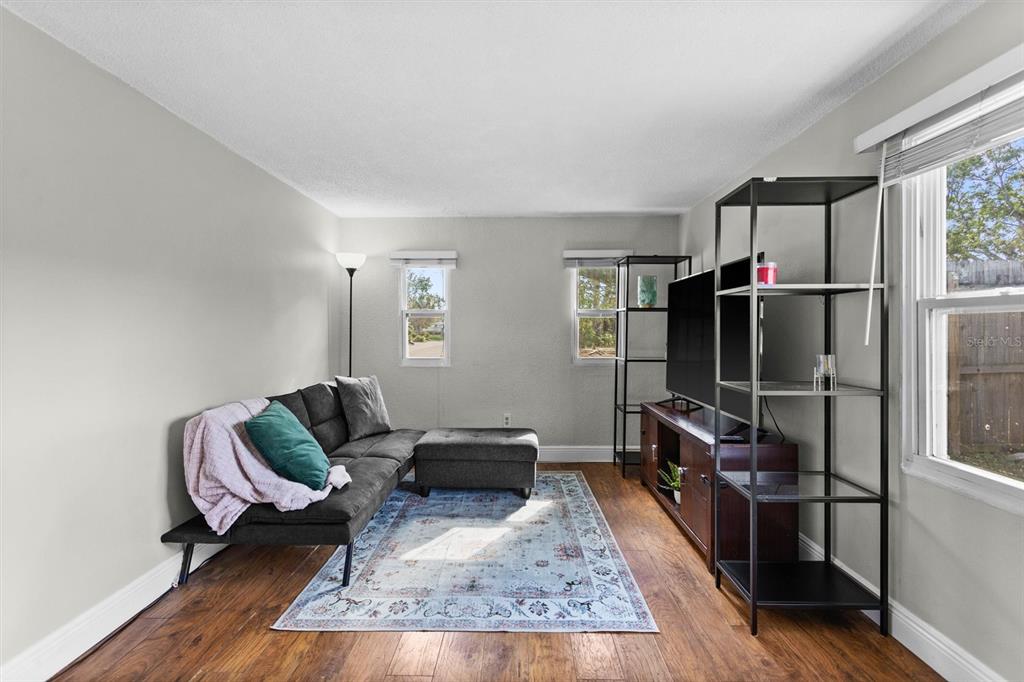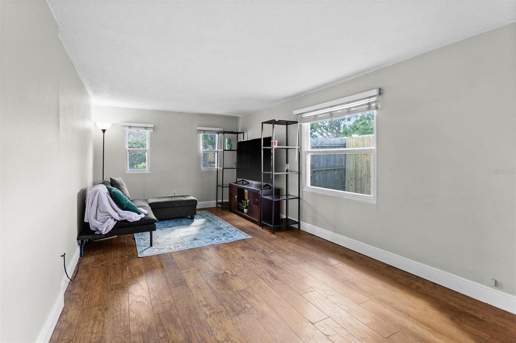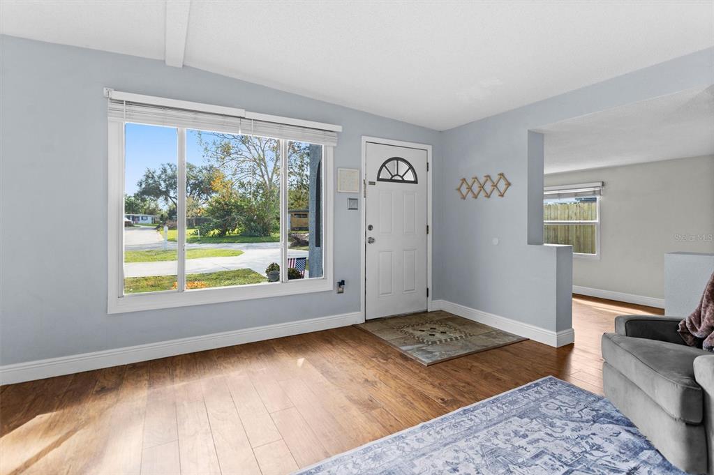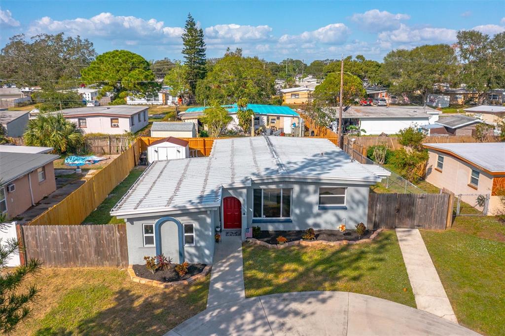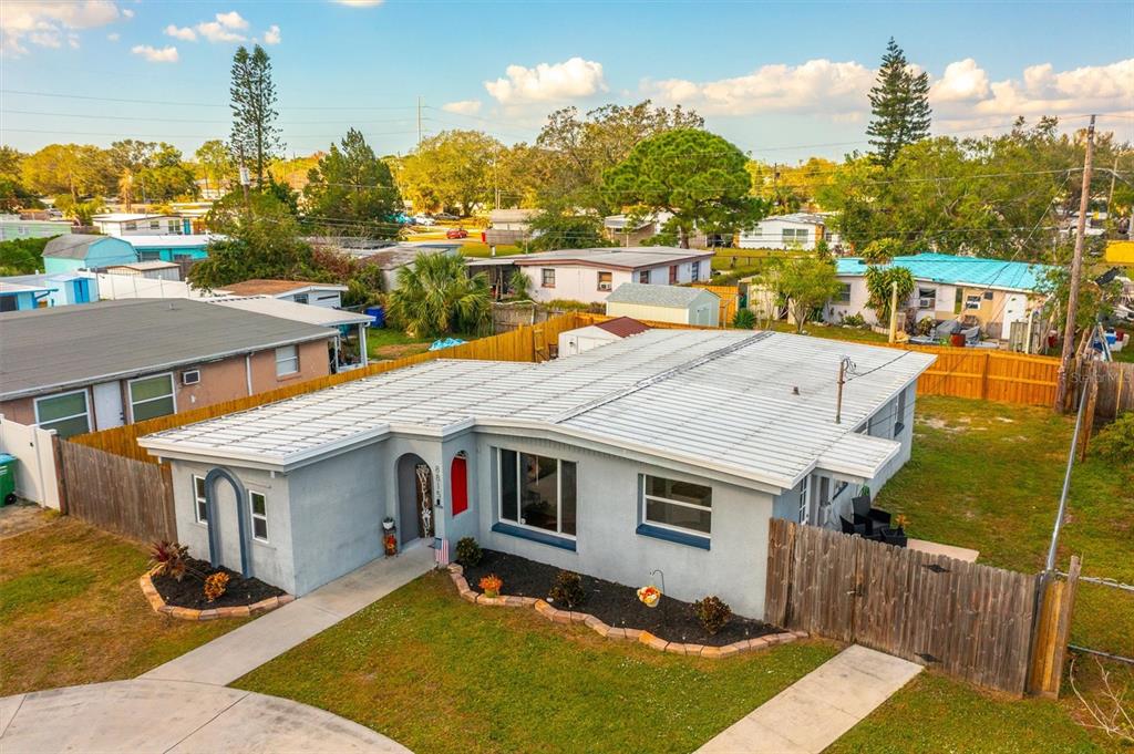 In the heart of seminole, where quaint and cozy meet convenience; welcome to this 3-bed, 1-bath home that is full of endless charm. as you pull into the large circular driveway, you are greeted by the simple beauty of this meticulously maintained front yard and freshly updated landscaping. beyond the front door, you will step into the large bonus space that is the center of the home; be sure to notice the vaulted ceilings and the inviting sunlight that shines throughout your common spaces. extending to the right is your eat-in kitchen with all stainless steel appliances and no shortage of storage space with the modern white cabinetry. back to the left; your oversized living room that also provides an ideal space for hosting and entertaining. separate from the living spaces; as you head up the hall toward the back of the house, you will find your three bedrooms all complete with ceiling fans, and the newly updated bathroom. this 1,100 sq/ft floorplan boasts spacious living areas and secluded bedrooms with no carpet and wood laminate flooring throughout. for added value; your indoor laundry room, all double-pane vinyl replacement windows, a long-lasting metal roof, and no flood insurance required; this home sustained zero flooding or damage during the recent hurricanes. with patios off both the living room and kitchen, your fully-fenced backyard provides the unlimited potential of developing your own oasis, the available space to put in a pool, and a large storage shed. second to all this home presents on its own, is its location in the highly desirable bardmoor neighborhood and central to all seminole has to offer. you are only a 5-min. drive to publix and bardmoor golf and tennis club, 7-min. to starbucks, 10-min. to seminole city center, 15-min. to the award-winning beaches of pinellas county, 15-min. to st. pete clearwater international airport and a quick 25-min. to tampa international airport.8815 92ND, SEMINOLE, FL 33777