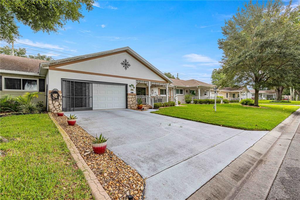 Looking for a great home in which to relax and enjoy life! wait ‘til you see this one! this isn’t just where you live, it’s where life happens. where memories are made, and adventures begin. it’s more than a home, it’s a lifestyle promising leisure, activity, and a community of neighbors that quickly become friends. your search ends here – come see why this home in on top of the world is where your next chapter awaits! this expanded bostonian has 2 bedrooms, 2 bathrooms, 2 car -garage and florida room under heat & air. once you arrive you will be enchanted by the view and the spacious covered tile front porch. step inside to the spacious living room which is designed for relaxation and easily accommodates the family and friends gathering. notice the solar tube for additional lighting and the hard wood flooring that continues into the right side of living area into a common hallway with 2 linen closets that joins the master suite & guest bedroom & bath. guest bath has many upgrades with new sink, new high efficiency toilet and large step-in shower with new glass doors. guest bedroom is located at the front right corner of the home and features ample size and extra – deep closet for storage. the master bedroom suite is located at the back right corner of the home features a large walk – in closet and a new custom retractable ceiling fan with a remote and master bath with a large step – in shower with new glass doors, new sink and high efficiency toilet. moving on to the back left side, is the heart of the home with a generously sized kitchen featuring : new upgraded cabinets and hardware, granite countertops and matching backsplash with light switches painted same color, new cast iron sink and faucet, tile flooring, newer appliances, solar tube to add more light. prep island with seating, plenty cabinets and work space and access door to 2 – car garage with tile flooring , new garage door, new garage screen replacement, attic insulation was added plus ceiling spraying and replaced lights. laundry area with washer/dryer and laundry sink. off the kitchen area you have beautiful new french doors leading to florida room under heat and air with newer glass enclosed windows throughout the home, new tiled flooring , new custom retractable ceiling fans with remote makes this a place to relax for reading , watching football games or quite time. the access door leads to an open tiled flooring with a 8x15 attached aluminum pergola patio is idea for grilling activities. the backyard is impressive landscaped with river rock and two lovely red maple trees and is has a vinyl fence. this charming bostonian villa is in impeccable condition and comes with many, many upgrades. did we mention it has a full home generac generator that only has 24 hours currently on generator with a transferable warranty and was just service 9/10/2024 (oil change & new air filters). the propane tank is a rental. the home features: new a/c 2015, newer roof 2017, new front door,3 – new custom retractable ceiling fans with remotes, 3 solar tubes, installed hand rails on front porch and gate, river rock in front and back yard. call today! don’t miss the opportunity to see this home …Villa 2 bedrooms - ON TOP OF THE WORLD for Sale