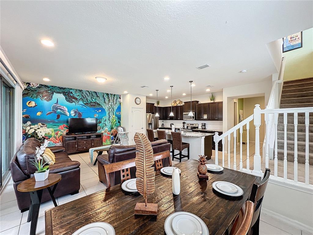 Located in the popular windsor at westside this stunning 5-bedroom, 4.5-bathroom townhome is beautifully decorated with themed bedrooms and is being sold fully furnished. this lovely townhome boasts a roomy open floor plan and has a fantastic kitchen with granite countertops, 42-inch dark cabinets, stainless-steel appliances and a large breakfast bar. upstairs in addition to 4 of the 5 bedrooms there's a cozy loft area that can be used as a sitting area or games room. out back there's a lovely, covered lanai and screened in private swimming pool. zoned for short term rental this fantastic vacation home is the perfect investment property or second home. windsor at westside resort is a gated community that provides amazing amenities that include an 8,000 square foot resort-style clubhouse with a huge, heated pool, a spa, and a lazy river as well as a poolside cabana, a recreation center, a game room, restaurant, bar, and relaxing lounge as well as volleyball, tennis, and basketball courts. all this and just a short drive to disney world and all the other famous attractions!Townhouse 5 bedrooms - WINDSOR AT WESTSIDE for Sale