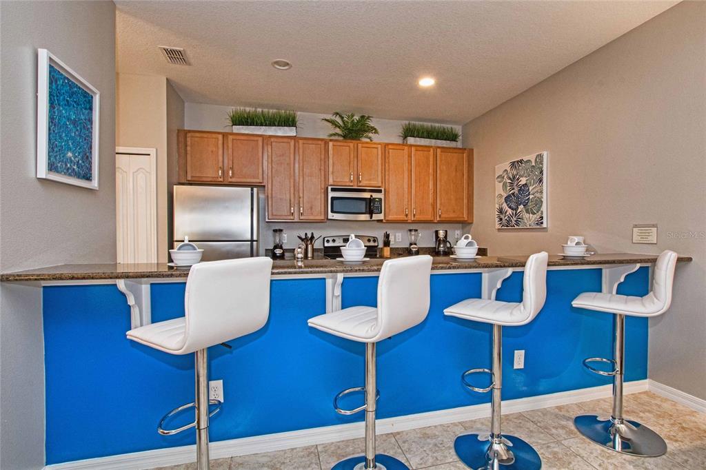 Beautiful townhome with great club house proximity. currently in active rental program with existing rentals in place.. private pool , ceramic tile, granite countertops, stainless steel appliances and professionally furnished. one of disney's closest and well known vacation home communities. packed with resort guest amenities this home is ready to go. a 24/7 gated and guarded community. the resort features a store , grill , gym , gameroom along side a beautiful lagoon style pool with multiple spas and waterfall grotto , kids play area , tennis , basketball and playgrounds... entire amenity is set beside a beautiful fresh water pond directly behind the resort ... lots of sun and 15 mins from disney property ... perfectTownhouse 4 bedrooms - PARADISE PALMS RESORT PH 1 for Sale
