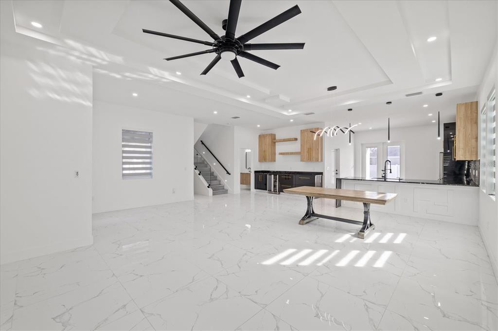 One or more photo(s) has been virtually staged. this modern home, located on the busy w sligh ave directly across from the tampa zoo, features contemporary architecture both inside and out. the two-story house includes a 2-car garage, 4 bedrooms, and 2.5 baths. the completed pvc-fenced backyard provides privacy, while the open floor plan boasts spacious living, dining, and kitchen areas. the first floor is adorned with porcelain tiles, while the second floor features wood laminate. the kitchen is equipped with custom wood cabinetry, a large breakfast bar island with a quartz countertop, and high-end appliances. additional highlights include modern lighting, hurricane-impact windows, stylish window curtains, and easy access to downtown tampa, midtown, the westshore district, international and westshore malls, tampa international airport, and local beaches—all within a 10 to 15-minute drive. this home truly combines innovative design with high-quality finishes, making it a dream place to live in florida.902 W SLIGH, TAMPA, FL 33604