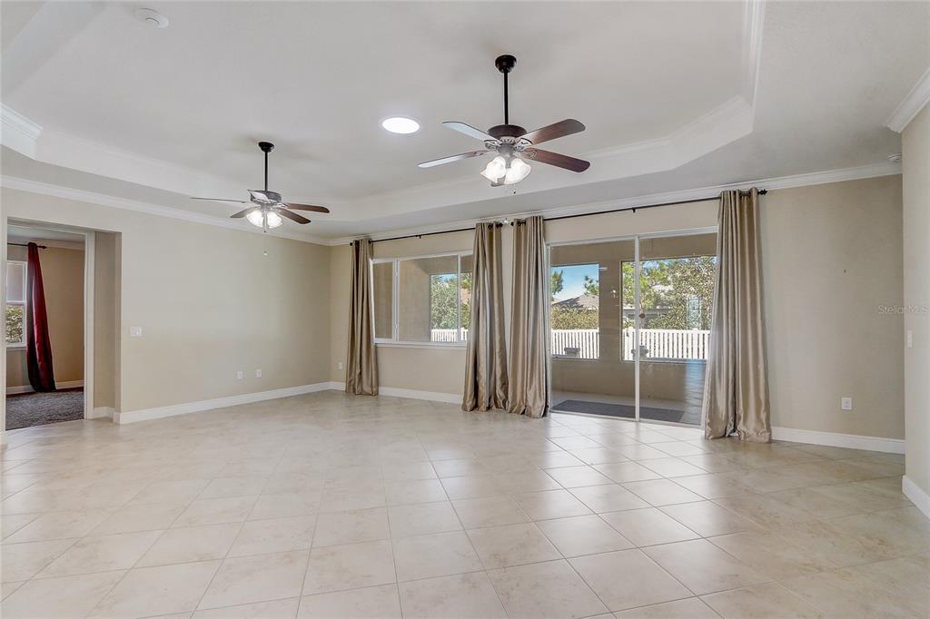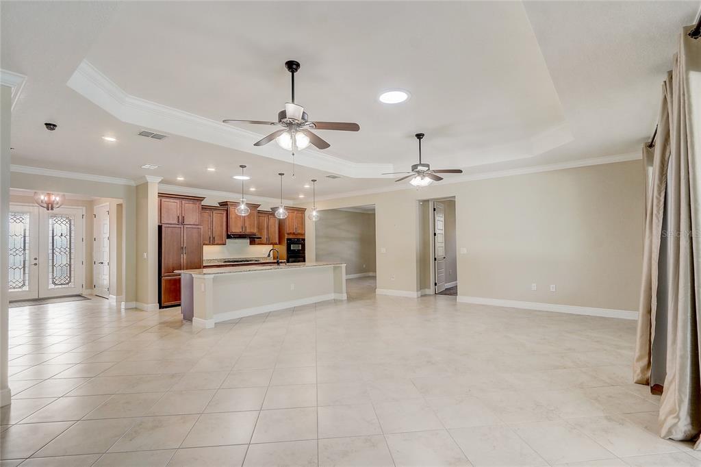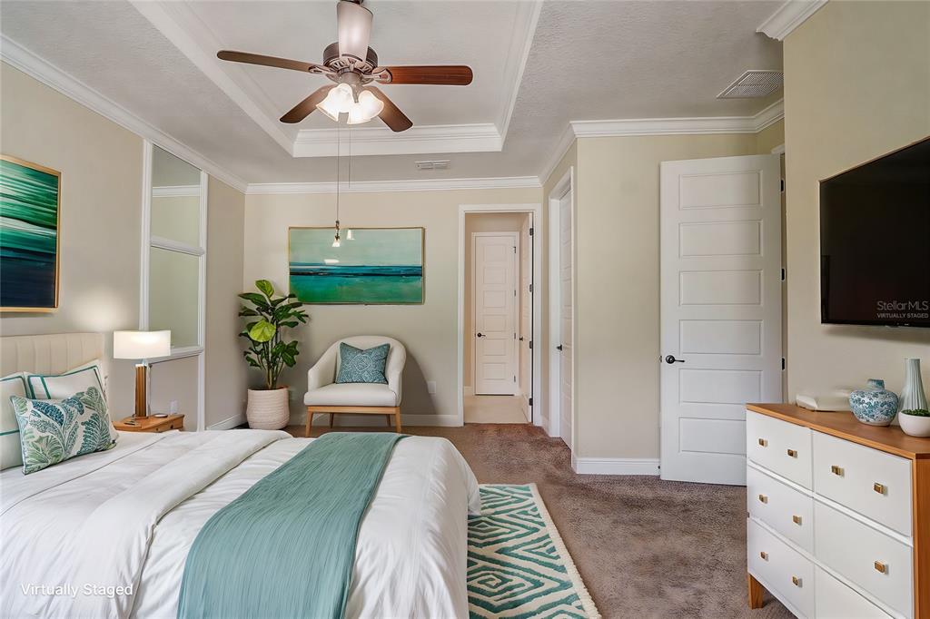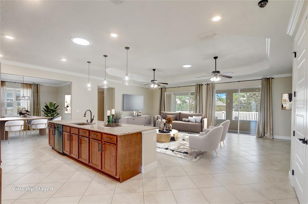 Walk-In Closet(s)Ceiling Fan(s) Open Floorplan Solid Surface Counters Solid Wood CabinetsCrown Molding Primary Bedroom Main Floor Kitchen/Family Room Combo Tray Ceiling(s)Exterior Features:
