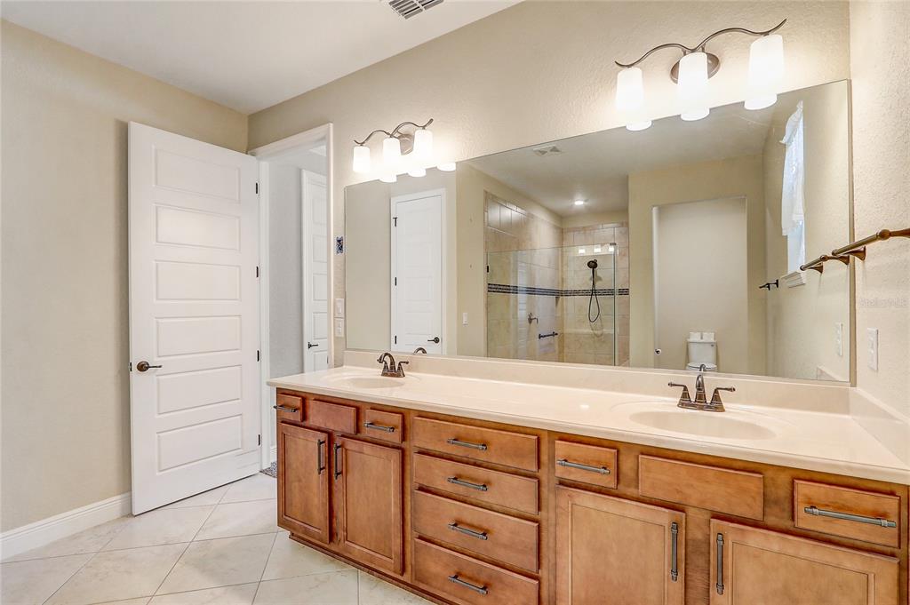 One or more photo(s) has been virtually staged. nestled in the exclusive candler hills golf community in ocala, florida, this exquisite home offers 3 bedrooms, 3 bathrooms, and 2,801 sq ft of refined living space. the front of the home faces the golf course, ensuring peaceful views and no front neighbors. as you enter, you'll be greeted by high-end finishes throughout, with the kitchen featuring solid wood cabinets, a large eat-in island, and seamless access to both the formal dining room and living room. the living room boasts tray ceilings and a sliding glass door that opens to a screened-in, covered lanai—perfect for enjoying the outdoors. the spacious primary suite offers tray ceilings, a walk-in closet, and a luxurious en suite bathroom, complete with dual sinks and a large, walk-in glass-tiled shower with a built-in bench. on the opposite side of the home, the additional bedrooms are thoughtfully placed for privacy, with one bedroom featuring its own connected bathroom, making it ideal for guests or family members. outside, the fenced-in backyard is beautifully landscaped, with a pavered patio perfect for entertaining or relaxing. a 3-car garage provides ample storage space and room for vehicles. the candler hills community offers resort-style amenities, including a clubhouse, dog park, fitness center, gated entrance, and a pool—providing the perfect blend of comfort and convenience.9058 SW 89TH, OCALA, FL 34481