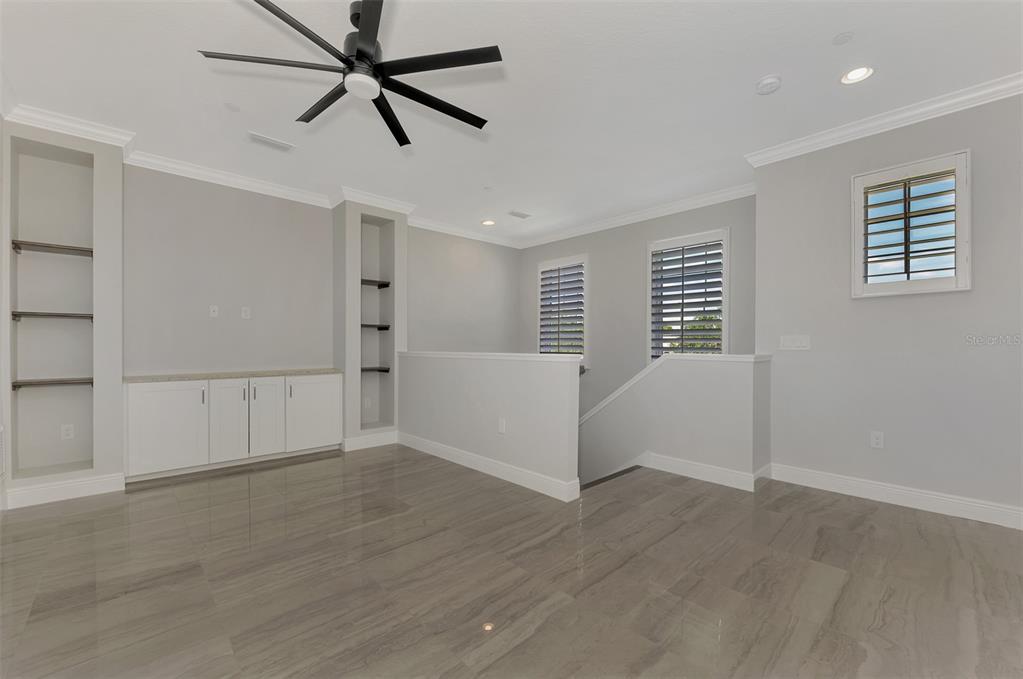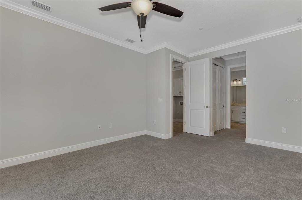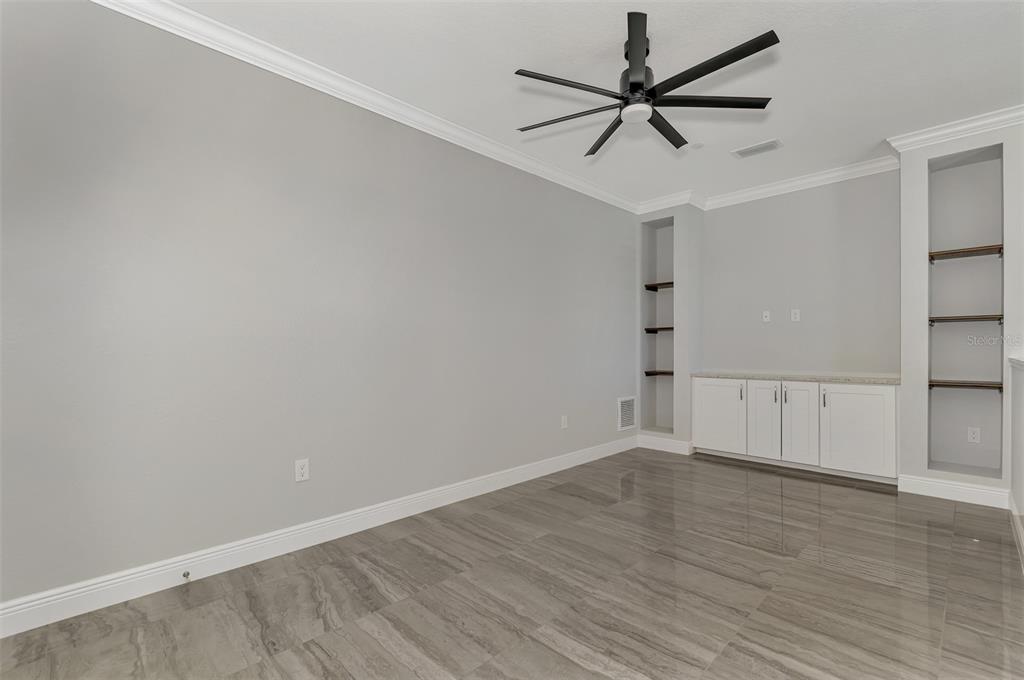 Walk-In Closet(s)Ceiling Fan(s) Stone Counters Open Floorplan Window Treatments Solid Wood CabinetsCrown Molding Primary Bedroom Main Floor Kitchen/Family Room ComboExterior Features: