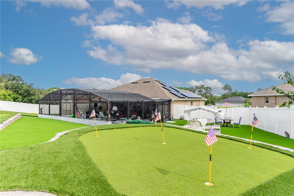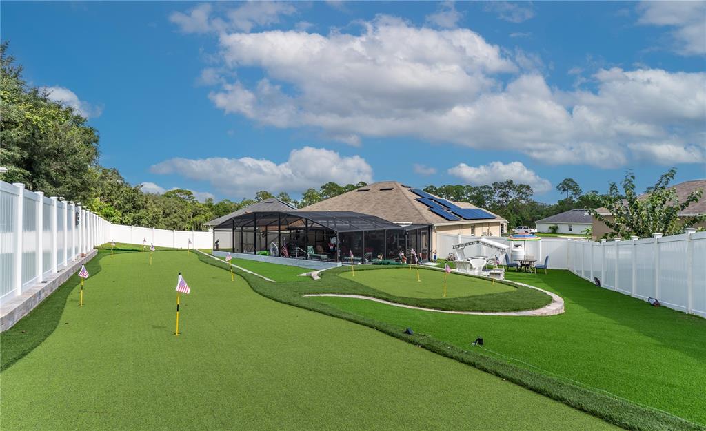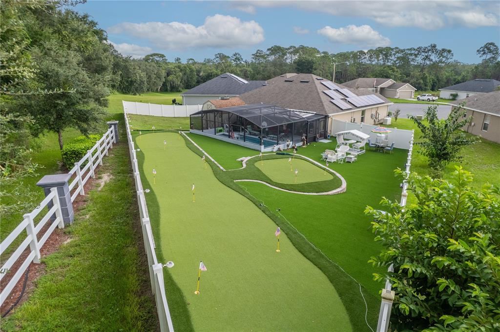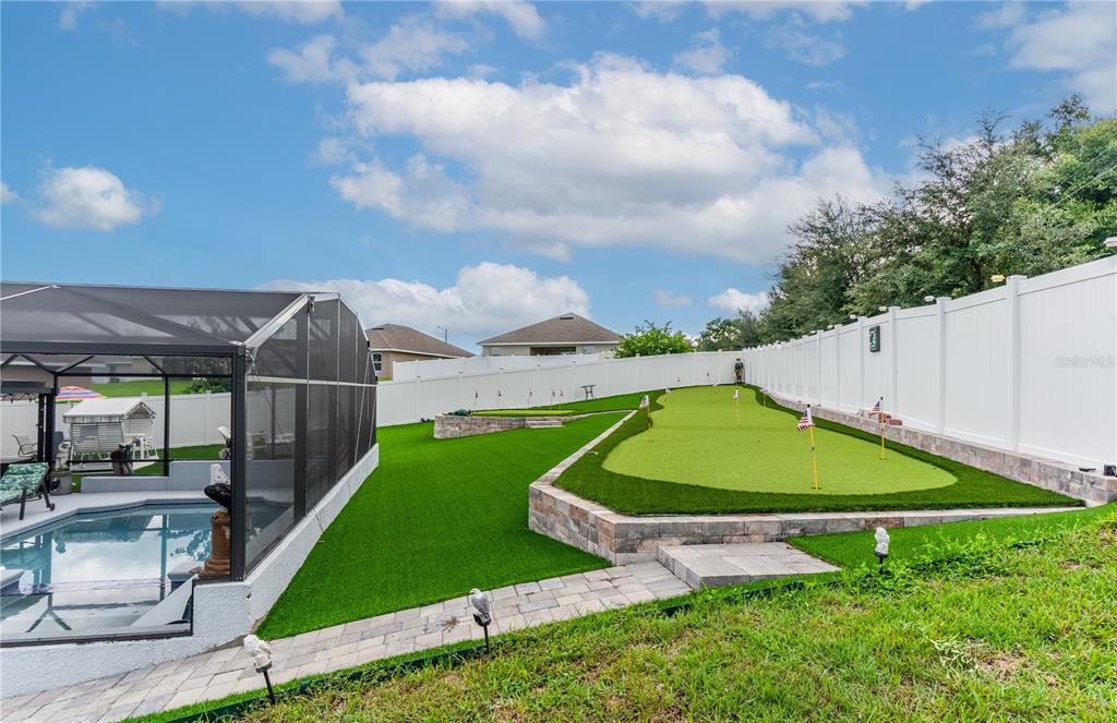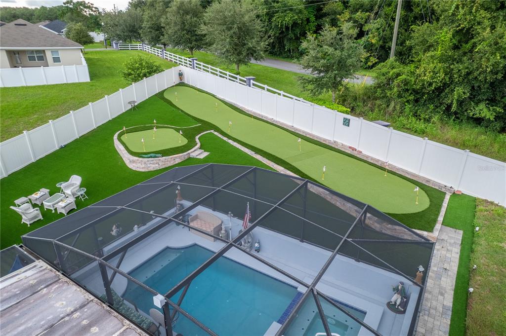 **welcome to your dream oasis staycation!** this stunning property is a golfer's paradise, featuring a meticulously designed 15-hole putting green that promises endless hours of fun and practice. nestled in a serene cul-de-sac, the home boasts a fenced backyard adorned with lush artificial turf, creating a low-maintenance yet vibrant outdoor space that is perfect for gatherings and relaxation. dive into luxury with a heated pool and spa, thoughtfully screened for year-round enjoyment, making this oasis ideal for entertaining or simply unwinding after a long day. the open and spacious floorplan invites natural light, seamlessly blending indoor and outdoor living, perfect for hosting family and friends. equipped with a whole-house solar system and a backup generator, you can enjoy peace of mind during power failures, ensuring your staycation remains uninterrupted. don’t miss the opportunity to call this incredible property your own—a personal retreat where leisure meets luxury!906 EDITH, FRUITLAND PARK, FL 34731
