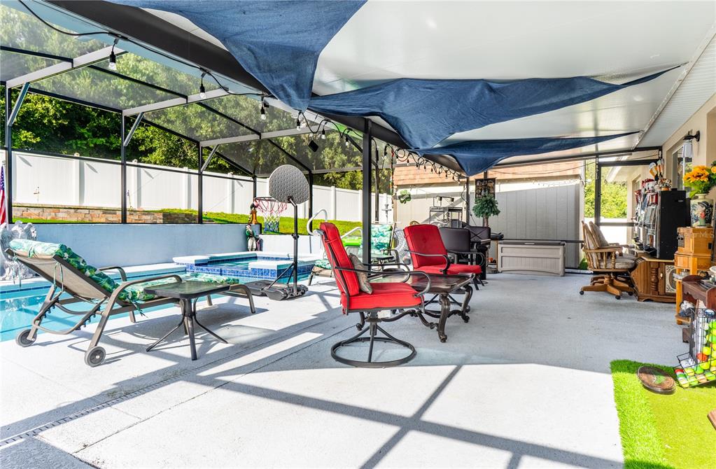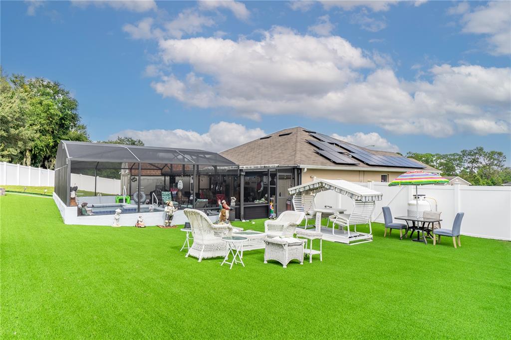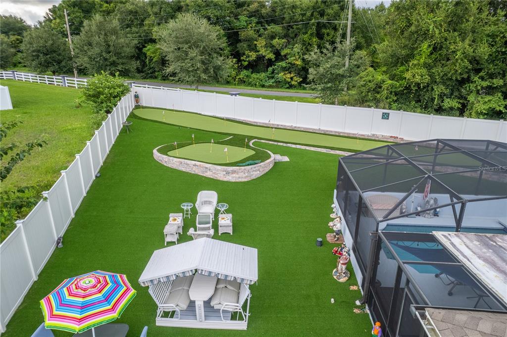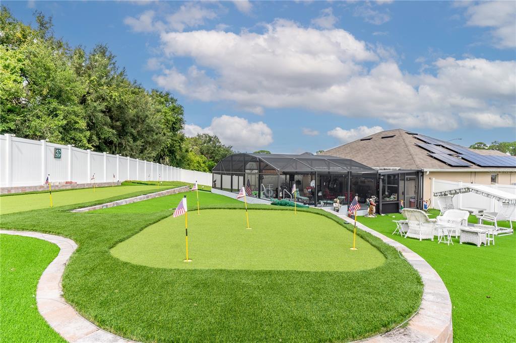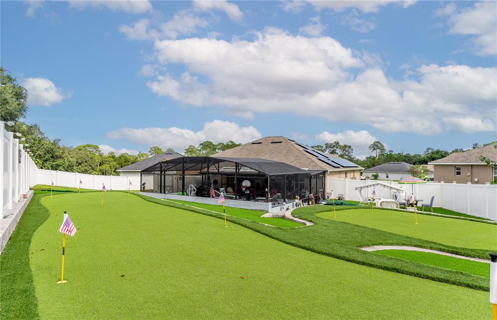 **welcome to your dream oasis staycation!** this stunning property is a golfer's paradise, featuring a meticulously designed 15-hole putting green that promises endless hours of fun and practice. nestled in a serene cul-de-sac, the home boasts a fenced backyard adorned with lush artificial turf, creating a low-maintenance yet vibrant outdoor space that is perfect for gatherings and relaxation. dive into luxury with a heated pool and spa, thoughtfully screened for year-round enjoyment, making this oasis ideal for entertaining or simply unwinding after a long day. the open and spacious floorplan invites natural light, seamlessly blending indoor and outdoor living, perfect for hosting family and friends. equipped with a whole-house solar system and a backup generator, you can enjoy peace of mind during power failures, ensuring your staycation remains uninterrupted. don’t miss the opportunity to call this incredible property your own—a personal retreat where leisure meets luxury!906 EDITH, FRUITLAND PARK, FL 34731