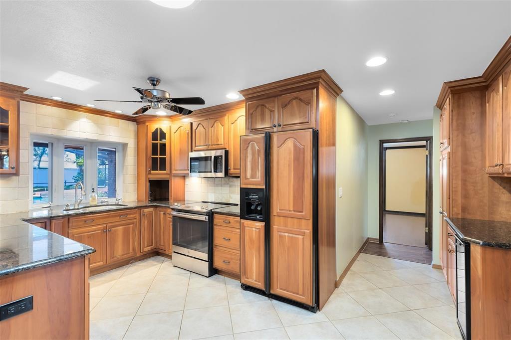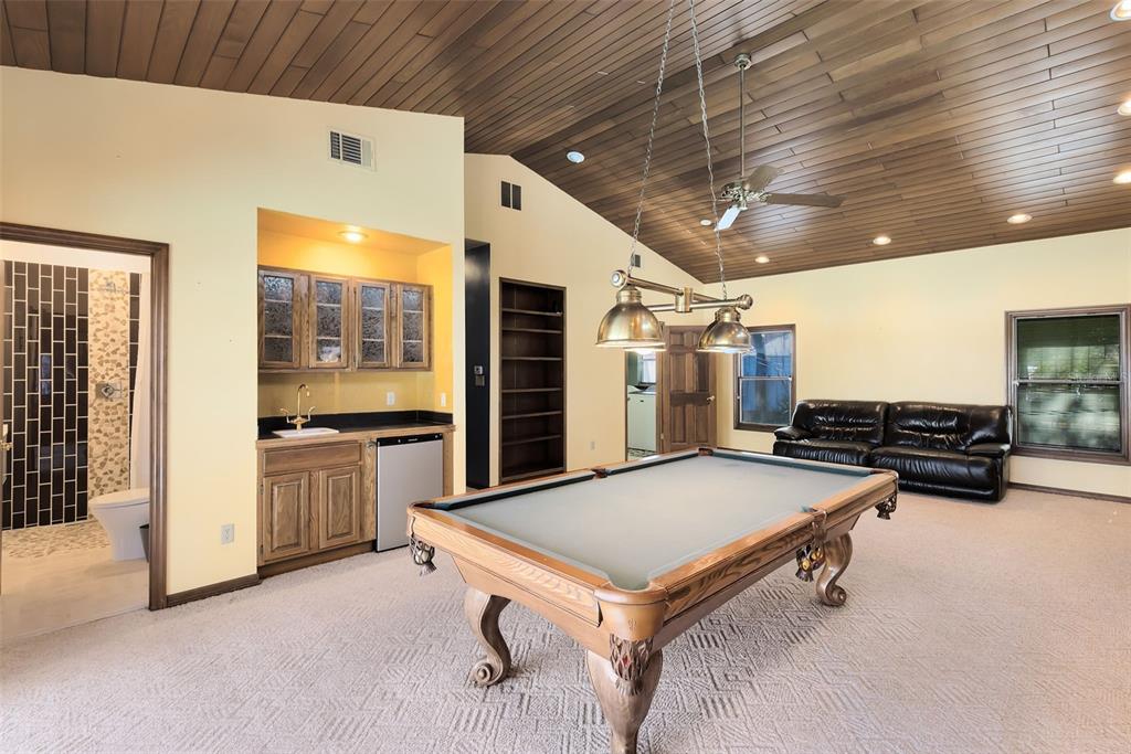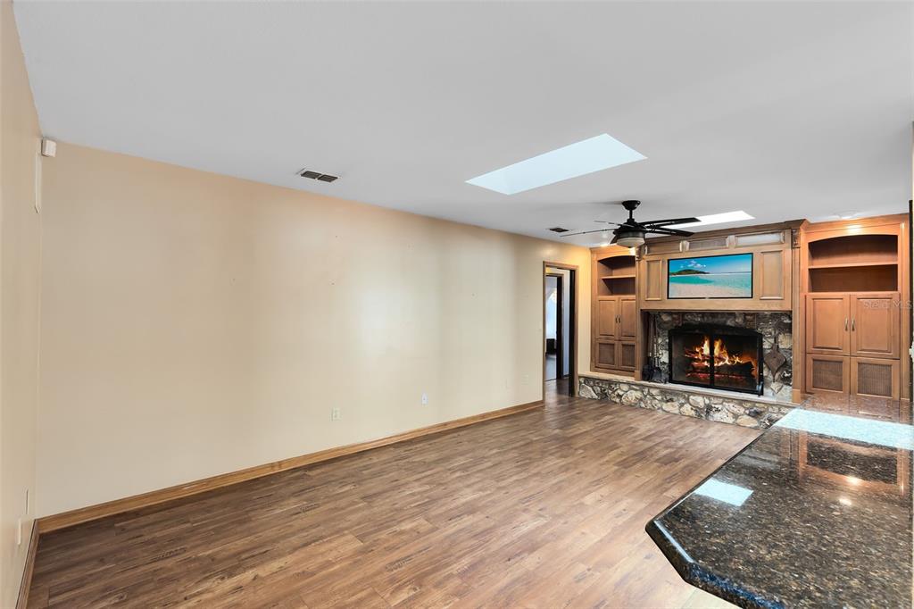 Split BedroomWet Bar Walk-In Closet(s)Ceiling Fan(s) High Ceilings Stone Counters Window Treatments Skylight(s) Kitchen/Family Room ComboExterior Features: