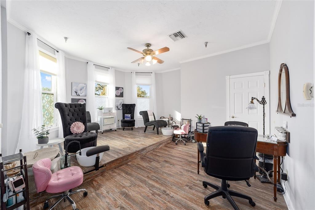 One of ocala’s most prominent properties, the 1890 teague house. this 3 story queen anne style property was originally built as a residence, with renovations over the years to restaurant, office, and day spa use. most recently, with particular attention to detail such as locally handmade doors and other features, it has been renovated to full day spa use. currently income producing and has the potential for prime office/retail space with an average daily traffic count of over 32,000 vehicles. less than 1 mile to thriving historic downtown ocala with lodging, dining, shopping, a theater, parks, and more. the east silver springs boulevard corridor is one the most popular commercial areas in ocala. the 1st floor has 4,023 sf nra -includes a reception area, office, waiting areas, men’s and women’s restrooms, 11 treatment/office rooms, a private 1/2 bath, and a laundry room. 3 staircases and an elevator provide access to the second and third floors. the 2nd floor has 2441 sf nra- includes a spa, salon, men’s and women’s restrooms, waiting area, and a laundry room. the 3rd floor has 1703 sf nra- includes waiting areas, treatment/office rooms, a private office, full bathroom with shower, and a locker room. the basement has 987 sf nra and is used for meeting and event space. b-2 zoning on 1.07 acre includes land on the north side that is zoned r-3, and a secondary access by road along ne 2nd street. 43 parking spaces. info taken from public record, measurements are estimates, buyer to verify.Retail - CALDWELLS ADD for Sale
