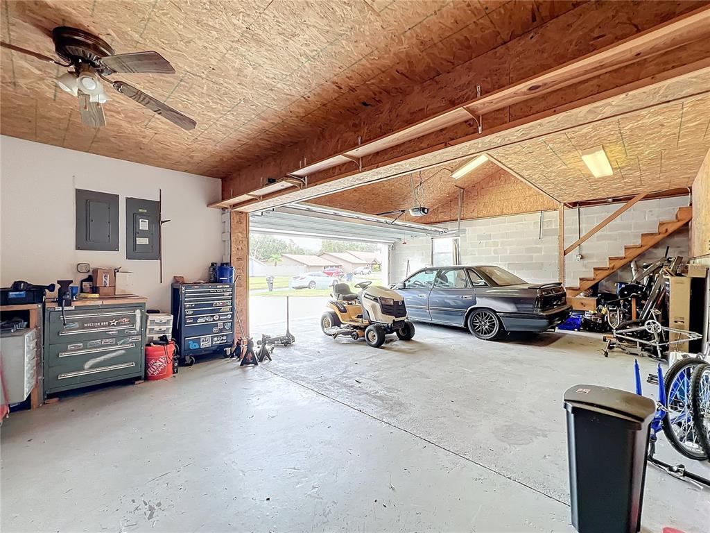 Nestled on a picturesque half-acre lot with plenty of outdoor space, this stunning property is the perfect blend of natural beauty and all the convenience for a family. as you step inside, you'll be greeted by the warm and inviting living room and dining room combo, where the focal point is a beautiful wood-burning fireplace that adds ambiance and coziness to any gathering. the gourmet kitchen is a true showstopper, boasting real wooden cabinets that exude warmth and character, paired with sleek stainless steel appliances that provide modern convenience. the pièce de résistance is the double oven, perfect for culinary enthusiasts who love to cook and entertain. with ample space to create and enjoy meals, this kitchen is sure to be the heart of the home. but that's not all - this incredible property also features expansive outdoor living areas, perfect for soaking up the sun or relaxing in the shade. the 40 foot long lanai on the ground floor and the equal length balcony on the 2nd floor provide breathtaking views and endless opportunities for outdoor relaxation and entertainment. the floor plan is equally impressive, with 4 spacious bedrooms, including a 4th bedroom has a private entry, full bath, and walk-in closet - perfect for an in-law suite or guest retreat. throughout the property, natural light pours in through the large windows, illuminating the beautifully appointed spaces. with ample parking, loads of storage, and upgrades galore, this property has been very well maintained and is waiting for you. seller is highly motivated.92 WOOD HALL, MULBERRY, FL 33860
