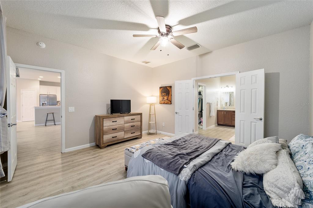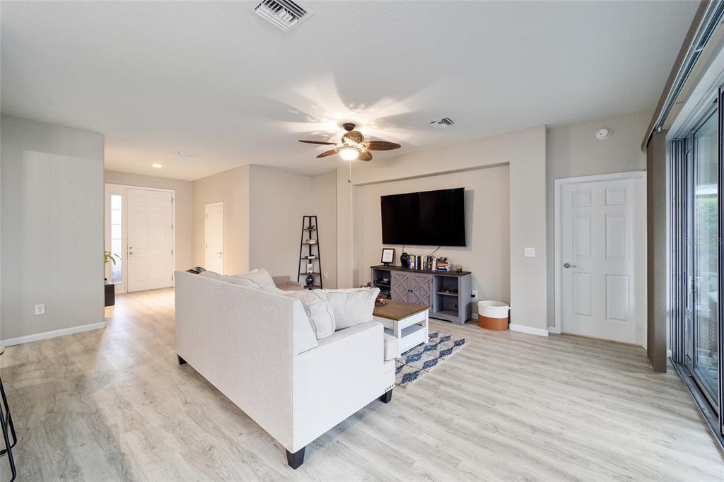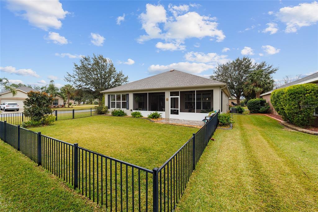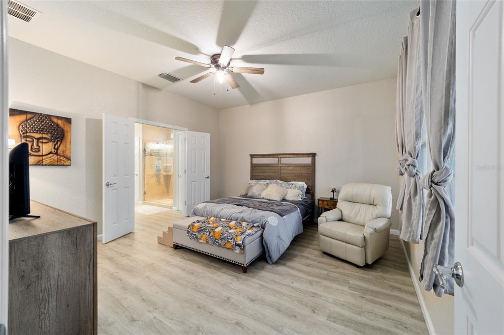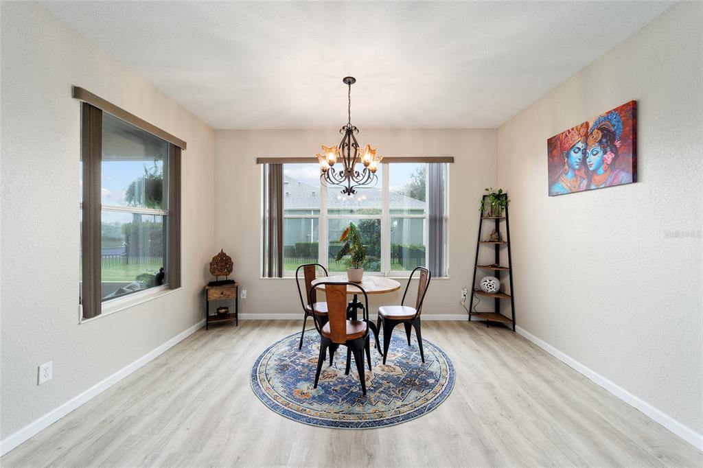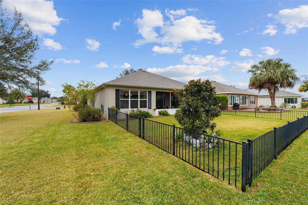 Stetson model in stone creek by del webb with stunning views of the sebastian lake with its beautiful fountain and the golf course located just across the lake. this charming residence boasts 2 bedrooms, 2 bathrooms, a flex room/den, and a 2-car garage. inside, you'll find luxury vinyl flooring throughout the main living areas, primary bedroom, and bathroom, as well as elegant curved drywall corners and ceiling fans. the kitchen is fully upgraded with quartz countertops, a stylish backsplash, and stainless steel appliances. the owners' suite is filled with natural light and includes an en suite featuring an upgraded shower with a frameless glass door, granite countertop, and a spacious walk-in closet. the laundry room has upper cabinets, making it convenient for storing cleaning supplies. plus, the fenced yard is an ideal space for pet owners, while the screened lanai offers a tranquil retreat. the lanai has also been upgraded with a new screen. other notable features include a hideaway screen door, glass french doors in the den, a water softener, a new roof in 2022, a new ac system in 2021 and custom interior paint. don't miss the opportunity to visit this delightful house!9211 SW 66TH, OCALA, FL 34481