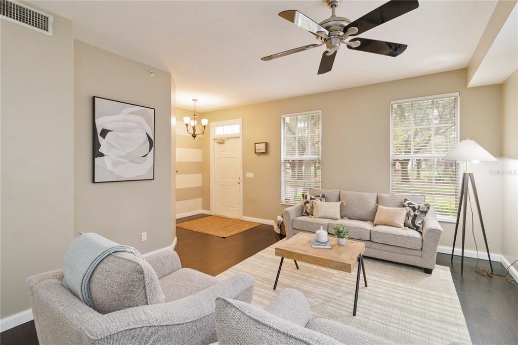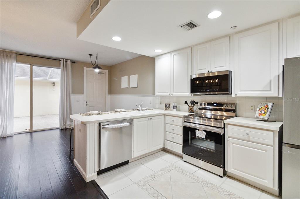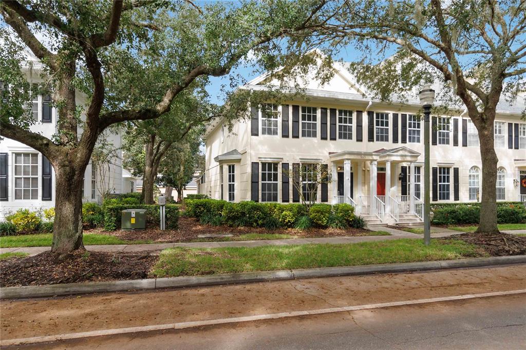 Enjoy your mornings sipping coffee on this covered porch overlooking a street with fully grown live oak trees that canopy over, complete with spanish moss. if you’re up early enough, you might be able to see the deer that frequent the area. there is a unique feature with a front living room with a beautiful bay window, adding elegance and more space. this townhouse is built by the highly sought-after builder divosta. this is an end unit that allows for ample natural light. also, you share one wall, but any noise will never be an issue because the first and second floors are constructed from concrete blocks with additional concrete between the floor levels. this style of construction will keep the townhouse well-insulated. you will also be well protected from the elements because the second-floor concrete block connects directly to the hurricane straps on the trusses. the hoa recently replaced the roof. the brand-new kitchen microwave, dishwasher, range, and refrigerator are all stainless steel and have never been used. the open kitchen has ample cabinet space and intricate tilework. the washer and dryer are just off the kitchen, and a half bathroom is just beyond. under-cabinet floor lighting is in this and all other bathrooms. wainscoting panels complete this bathroom in the dining and living room just off the kitchen. there is a central vacuum system with ports throughout the townhouse. the primary bedroom has multiple windows for lots of ambient light. the walk-in closet is huge and complete with shelving. the primary bathroom has a large shower, tub, dual vanity, ample cabinet space, and a linen closet. there are two other bedrooms, another full bathroom, and loads of closet space in the hallway and bedrooms. speaking of storage, the attic space above the garage is accessible by the pull-down stairs. there is a large covered patio between the townhouse and the garage. don’t wait to see this stunning townhouse!Townhouse 3 bedrooms - NORTHLAKE PARK AT LAKE NONA for Sale