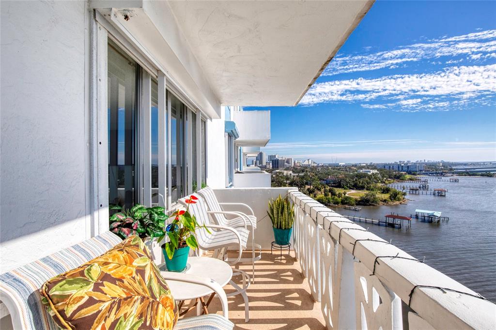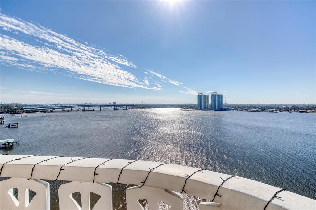 This unique unit is the on western point of the preferred south building where you can stand in the living room and view the dunlawton bridge to the south and the granada bridge to the north along with glimpses of the atlantic ocean. the panoramas offered from this unit are only offered in 10 other units and makes this the very best! the first thing that you will notice are the breathtaking views only followed by the very apparent pride of ownership. the lovely waterfront living room can be opened through sliding doors to the generous balcony that overlooks the intracoastal waterway and the nightly sunsets. both bedrooms are direct waterfront and wonderful views. an ample eat-in kitchen is in beautiful condition and ready for a new owner. the unique architectural placement of the bayshore towers allows for the balcony's handful of benefits and privacy new flooring freshly painted ss appliances hurricane shutters amenities galore so much more this unit is calling your name!925 N HALIFAX #1001, DAYTONA BEACH, FL 32118