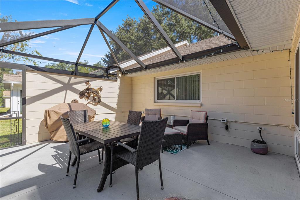Tastefully updated montgomery model villa in the friendship colony neighborhood of on top of the world (otow), a premiere 55+ gated golf community in sw ocala fl. this spacious 2 bedroom, 2 bath, 2-car garage villa has been updated throughout, including hvac 2023, roof 2021, energy efficient windows 2011 (with transferrable warranty!), birdcage & more! notice the custom stacked stone landscaping on your way to the welcoming front porch, the perfect location for your morning coffee or evening beverage, with views of a tree lined street. step inside the great room and notice the laminate floors, and extra light from a solar tube. the bedrooms are located on the right side of the home with the guest bedroom in the front with a large closet. the guest/hall bath divides the bedrooms. the guest bath has been updated step-in shower, glass shower surround, custom tile work, new vanity, and comfort height toilet. the primary bedroom with large walk-in closet is in the back right of the home for privacy. the primary bedroom en suite has been updated with new vanity, glass shower surround, and comfort height toilet. back through the great room to the kitchen, and what a kitchen! the sellers removed all old cabinetry and installed upgraded soft close cabinets, pan drawers, deep sink, brand new stainless appliances, upgraded lighting, and more! the kitchen is open to the family room. from there step out into (no step down) the fully finished florida room. notice the massive picture windows! from there step out into the birdcage with patio space – perfect for outdoor florida living & grilling. this home has also been replumbed with all water lines moved to attic. the monthly hoa fee includes basic cable, irrigation water, roof repair, exterior painting every seven years, exterior maintenance and insurance, landscaping, trash & recycling, 24/7 monitored gates and all the amenities that otow has to offer; three pools (2 outside & 1 inside & another under construction), two state of the art fitness centers, pickleball, billiards, archery range, corn hole, bocce ball, tennis, shuffleboard, horse shoes, remote control flying field and race cars, 175+ clubs, woodworking shop (extra fee), library, and much, much more! a golf cart community with access to three shopping centers.Villa 2 bedrooms - ON TOP OF THE WORLD for Sale