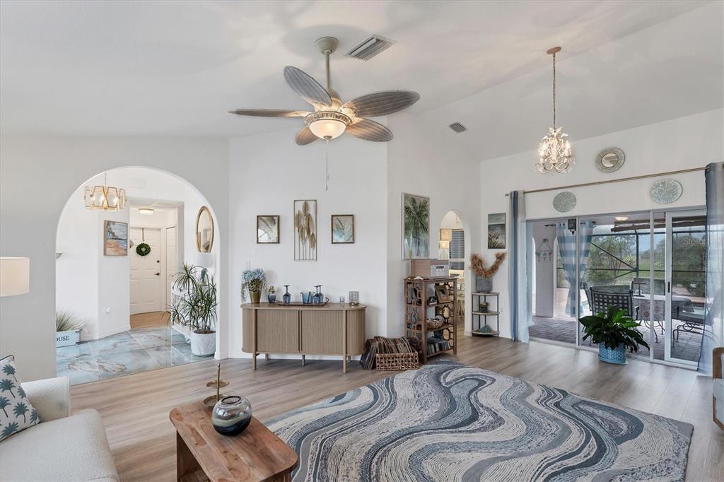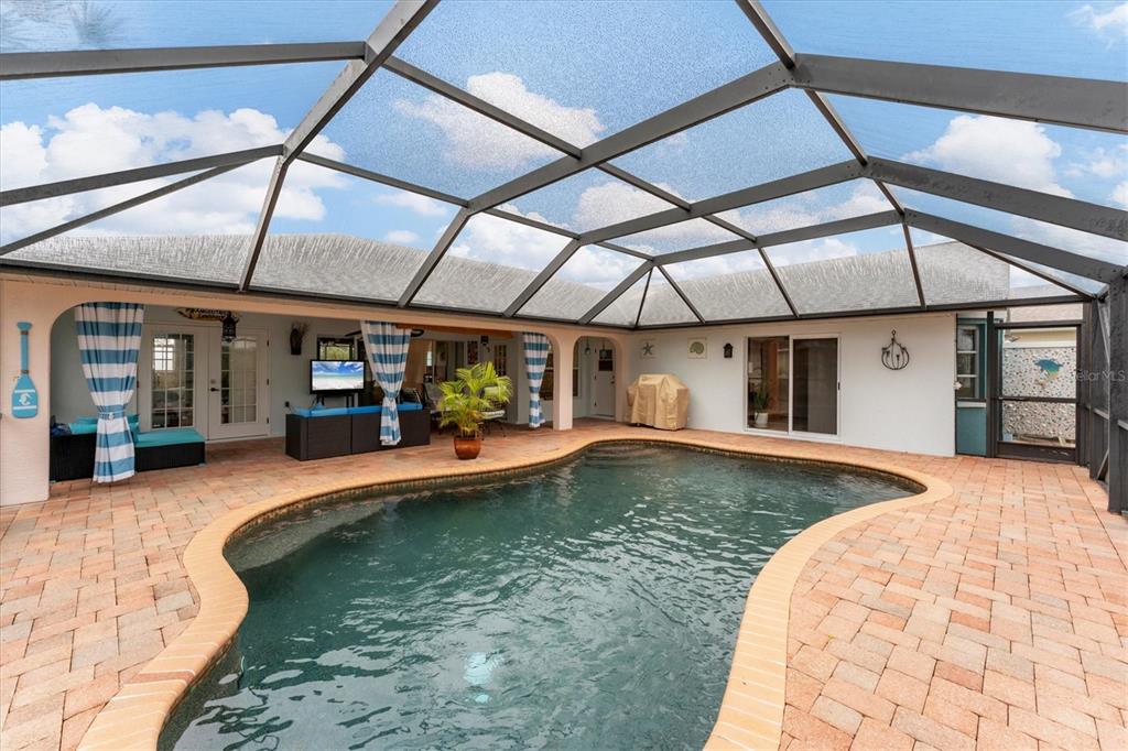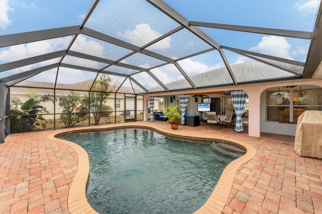 Prepare to be impressed by this stunning home that looks like a model! from the moment you step inside, you’ll be captivated by the beautiful tile flooring in the foyer. this spacious home offers a separate living room and family room, 4 bedrooms, and a thoughtfully updated master suite with french doors leading to the pool, his-and-hers walk-in closets, and an en-suite bathroom featuring dual sinks, a soaking tub, and a separate shower. the family room boasts three pocket sliders that open to the pool area, creating seamless indoor-outdoor living. the eat-in kitchen includes charming plant shelves, a breakfast bar, and a convenient poolside door. one of the bedrooms also features pool access, making it perfect for guests or a home office. additional highlights include a skylight in the laundry room and an oversized lanai with a 34x9 covered area and a 25x33 screened section, offering ample space for relaxation or entertaining. step outside to enjoy the serene rotonda river view from a hammock or host gatherings on the backyard paver patio. there's even an outdoor shower for added convenience. practical updates include a 2022 roof and 2021 ac system. steps away from the cape haze bike trail and 20 minutes to boca grande beach. this home truly has it all—don’t miss your chance to call it yours!926 BOUNDARY, ROTONDA WEST, FL 33947