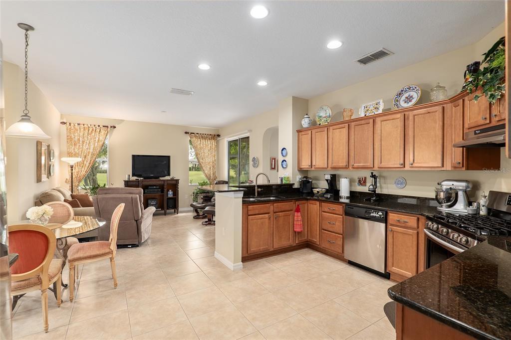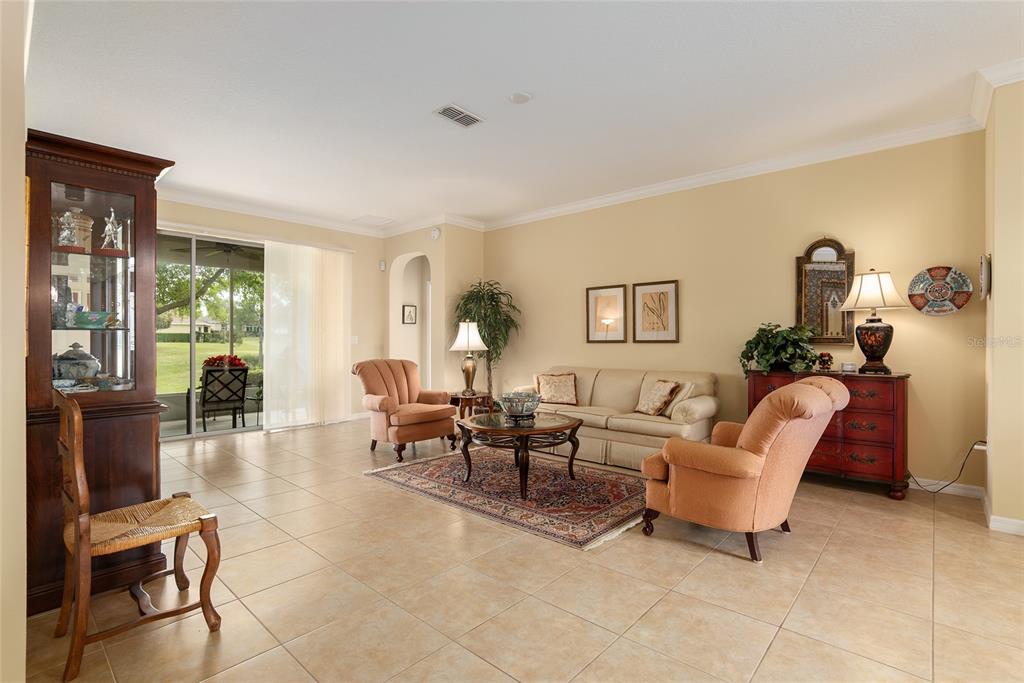 Welcome to windsor east in on top of the world, a premier 55+ active adult community offering resort-style living with complete exterior maintenance included—no mowing or upkeep for the homeowner! 3 bedroom 2 bath home has been luxuriously appointed! beautiful views out back from living and family rooms and primary bedroom. paver driveway and entry way accent the great street appeal upon arrival to the property. tiled flooring throughout. crown molding accents. 2 bay windows. the kitchen includes stainless appliances, granite counters tops, 5 burner gas range and closet pantry. casual dining area and spacious family room. formal dining and living room are great for entertaining. primary suite has two walk in closets. the primary bath features jetted tub and separate shower, 2 vanities and private water closet. the other 2 bedrooms offer plenty of space and storage. gas generator for energy backup. enjoy the park like setting from the enclosed lanai. landscaping includes curbed flower beds. this area is truly a resort style community. this home is conveniently located in the windsor section of on top of the world, within walking distance of the arbors activity center which includes the indoor pool, an outdoor pool, fitness center, and so much more. come explore this premier 55+ active adult community with golf cart access to 3 shopping centers. on top of the world features 10 pools, 5 pet parks and 3 champion golf courses and so much more. furnishings can be purchased separately.9274 SW 94TH, OCALA, FL 34481