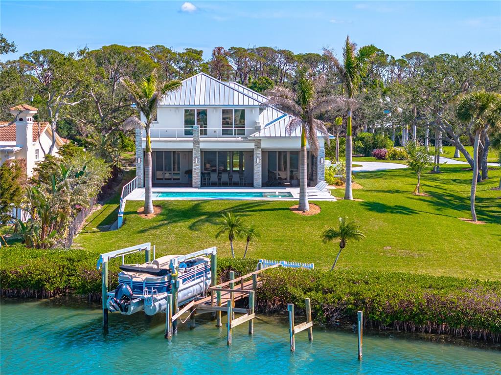 This stunning coastal waterfront estate is a fishing and boaters' dream. this property promises the sought-after florida sunsets night after night! this private oasis sits on .65 acre and establishes security with a private solar powered gate. walking into the foyer you experience the open floor plan with a linear gas fireplace in the great room, and high end finishes throughout. pocket sliders line the great room, kitchen, and owner’s suite, with breathtaking views of the intracoastal that provides an abundance of natural light! the flow from the kitchen to the great room provides functionality for everyday living or entertaining. the kitchen provides stainless steel thermador wifi-compatible appliances, a convection double oven, glass induction cooktop, microwave drawer, and an oversized refrigerator with two ice makers! it is also fitted with italian tile backsplash! the owners' suite is conveniently located on the first floor with the same beautiful views, a large shower, and a favorable walk-in closet. other features of this spectacular home include a sonos sound system, and an elevator to the 2nd floor. the elevator opens up to a loft and three additional bedrooms. two of the three bedrooms include ensuites with a private patio and breathtaking views to the north and south of the intracoastal waterway. the 3rd bedroom shares the public bathroom. once outside there is a spacious lanai with a fully equipped outdoor kitchen, including seating versatility for dining, watching your favorite tv programs, and entertaining. the lanai is also equipped with a linear gas fireplace, powered sun and storm shades, and a sonos sound system. after a short walk down to the dock you will find easy access to a 10,000 lb boat lift with remote control operation. there is electric and a fresh water source for convenient fish and boat cleaning. just 1.1 miles from nokomis beach, this estate allows for a quiet and private lifestyle and is within a short drive to vibrant downtown venice and sarasota. don’t miss out on your chance for coastal living! *dont forget to click the virtual link* *this is turnkey optional*935 BAYSHORE, NOKOMIS, FL 34275