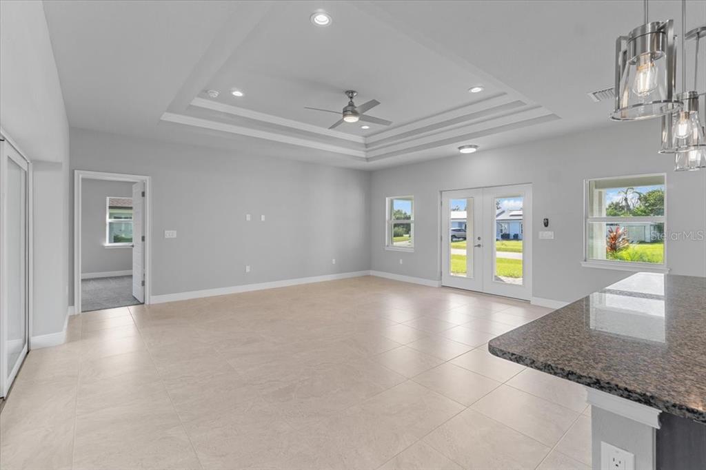 Completed new home, move-in ready. the pinehurst from harbor home builders. a welcoming front porch with seating space leads to a double door entry with 11' foyer ceiling. expansive open floorplan with porcelain tile throughout (shaw brand carpeting in bedrooms) pocketing 12' impact sliding doors leading to covered lanai. kitchen features a 3' x 8' island with an undermount double bowl stainless sink, stainless appliances, disposal, wood cabinets. and granite countertops. the mater bedroom has a walk-in closet and a second closet as well. master bath features wak-in tiled shower, twin vanities with full width mirrors, wood cabinetry and granite counters and an enclosed toilet. other features include: impact windows throughout, 6' 8" interior doors with 2 1/4/" wood casing, stepped ceilings in living room and master bedroom with crown moulding, designer lighting, inside laundry room, 15 seer a/c with programable thermostat, r30 blown or batt ceinling insulation, taexx inwall pest control system, and more. please call today for a private tour.9461 ATTICA, PORT CHARLOTTE, FL 33981