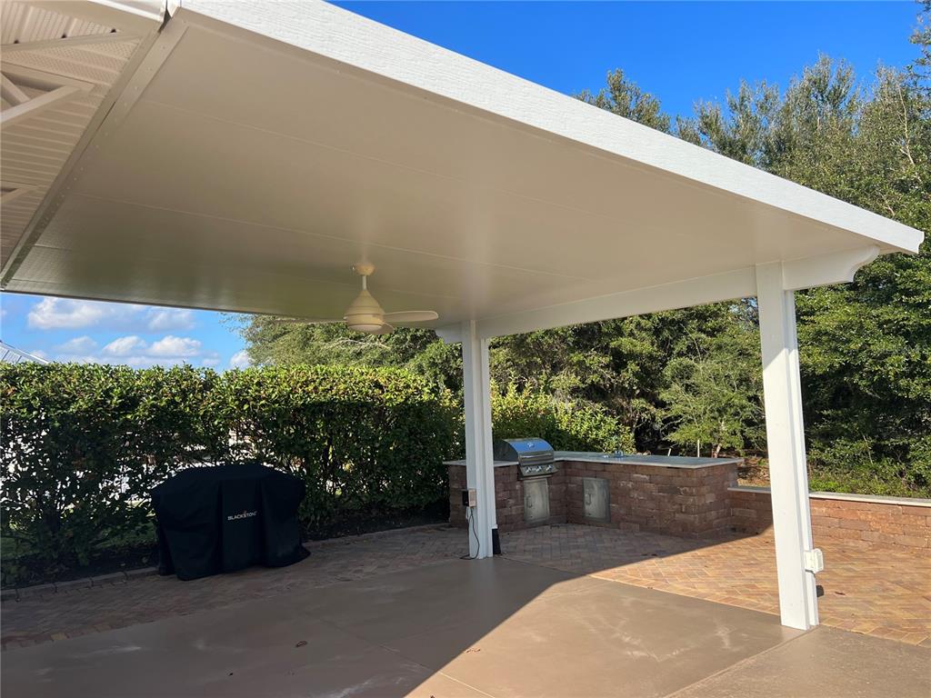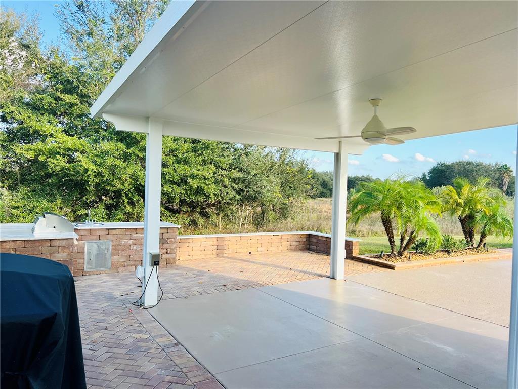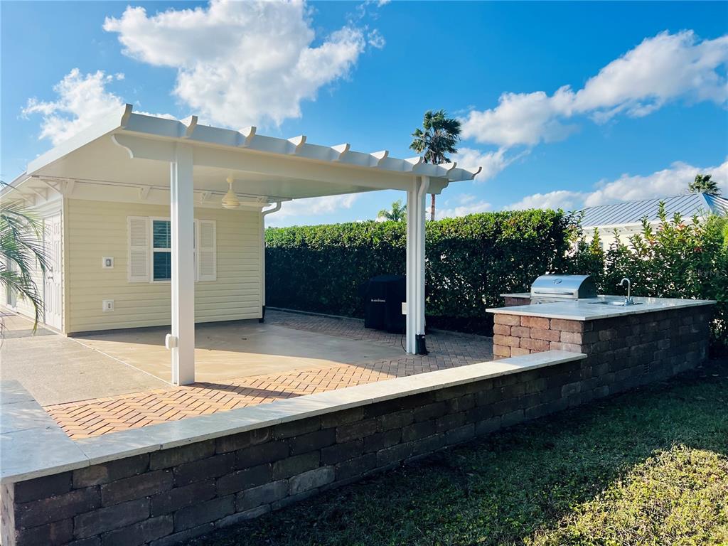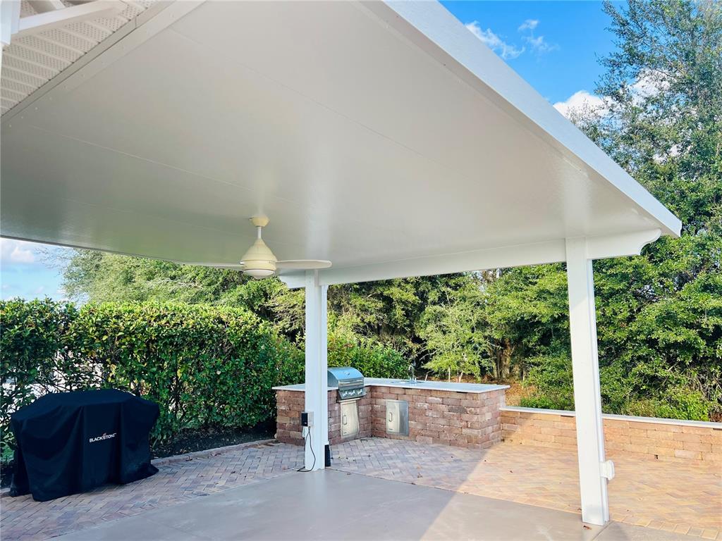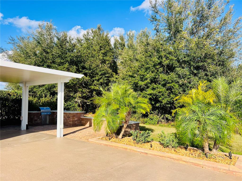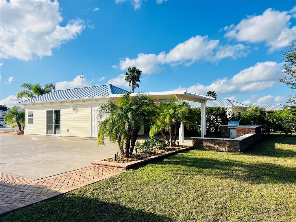 Located in a prime location within florida grande motor coach resort, lot 219 offers a spacious 5,076 sq. ft. lot with a 26'x76' concrete pad, providing ample room for your motorcoach. this back-in lot features extra pavers that stretch along the entire property, along with a beautiful 12x16 solid surface pergola off the back of the grande suite that backs up to a tranquil tree view, perfect for relaxing in the florida sunshine. the outdoor kitchen is a highlight with a built-in grill, sink, and storage, ideal for outdoor cooking and entertaining. watch rocket launches from your own backyard. the property is also equipped with a water softener and filter system that services both the grande suite and your motorhome pedestal, ensuring a premium experience. the brand-new 384 sq. ft. grande suite is thoughtfully designed with extensive solid surface countertops and an abundance of cabinets. featuring luxurious vinyl plank flooring, the suite includes a kitchenette with a convection/microwave oven combination and a beverage refrigerator. the full bathroom is highlighted by a walk-in shower and stunning tile flooring. for added convenience, the laundry room/storage area is equipped with a garage lift capable of raising and lowering storage with a remote control. the washer/dryer hookups are raised to an ergonomic height, eliminating the need to bend down as far for laundry duties. extra storage is also available in the attic, providing even more space. florida grande motor coach resort is an all-ages, class a and super c resort that warmly welcomes two pets per property. the hoa dues of $843 per quarter cover water, sewer, trash, irrigation, mowing, access to a brand-new pickleball complex, dog park, pool, and all amenities at the 20,000 sq. ft. clubhouse. regularly scheduled activities and special events fill up the calendar, ensuring there's always something to enjoy. if you’ve been considering a motorcoach resort, this lot is an absolute must-see. this exceptional property won’t last long – make your appointment today!Other Land - FLORIDA GRANDE MOTOR COACH RESIDENCE for Sale