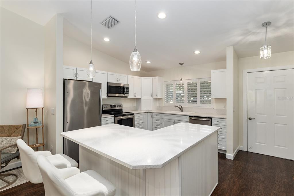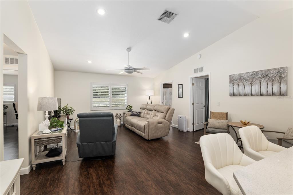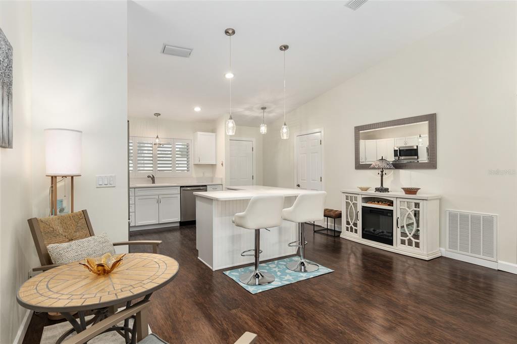 Motivated seller! you will fall in love with this beautiful sienna model home in the crescent ridge area of on top of the world. this split-plan, open concept, completely updated home, includes heavy duty, lvp flooring throughout and tile in the bathrooms. the open kitchen features sparkling, white quartz countertops, lots of cabinet space with soft close drawers, a lazy susan in the kitchen island and stainless steele appliances. the vaulted ceilings and recessed lighting brighten the large living room and the split bedrooms provide privacy when you have guests. the bathroom vanities are upgraded with moem faucets and quartz, upgraded sinks and comfort high toilets and updated master shower. the closets are adorned with glass doors. the driveway and patio have been upgraded with stone pavers. the home features a three-season room and additional lanai. energy efficient, plantation shutters installed throughout the home on 4/2024 with a lifetime warranty, specially made for the florida weather. roof 2010, a/c 2016, water heater 2020, window world insulated windows, 2015. on top of the world is ocala's premier, gated, active 55+ community, loaded with amenities and includes golf cart access to three shopping centers. call for more information.Villa 2 bedrooms - ON TOP OF THE WORLD for Sale