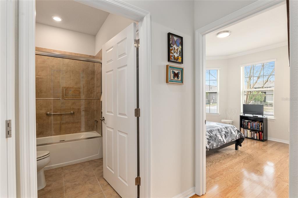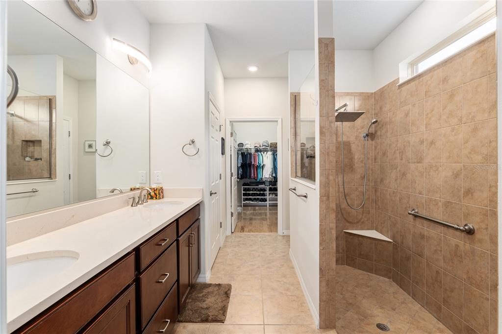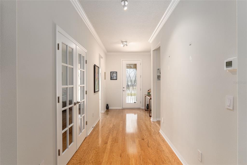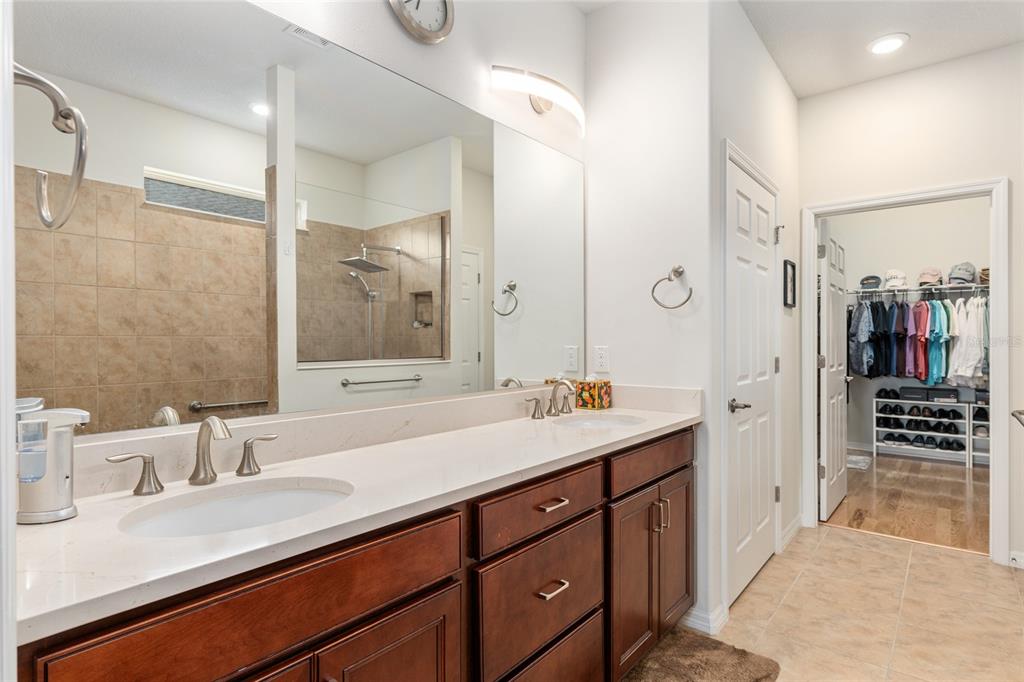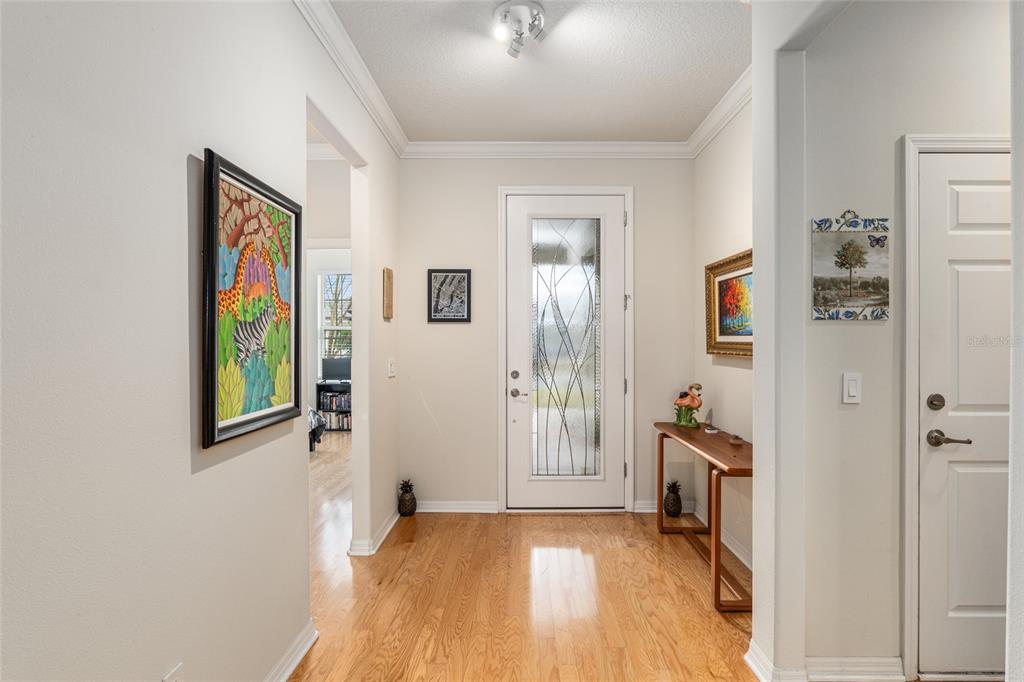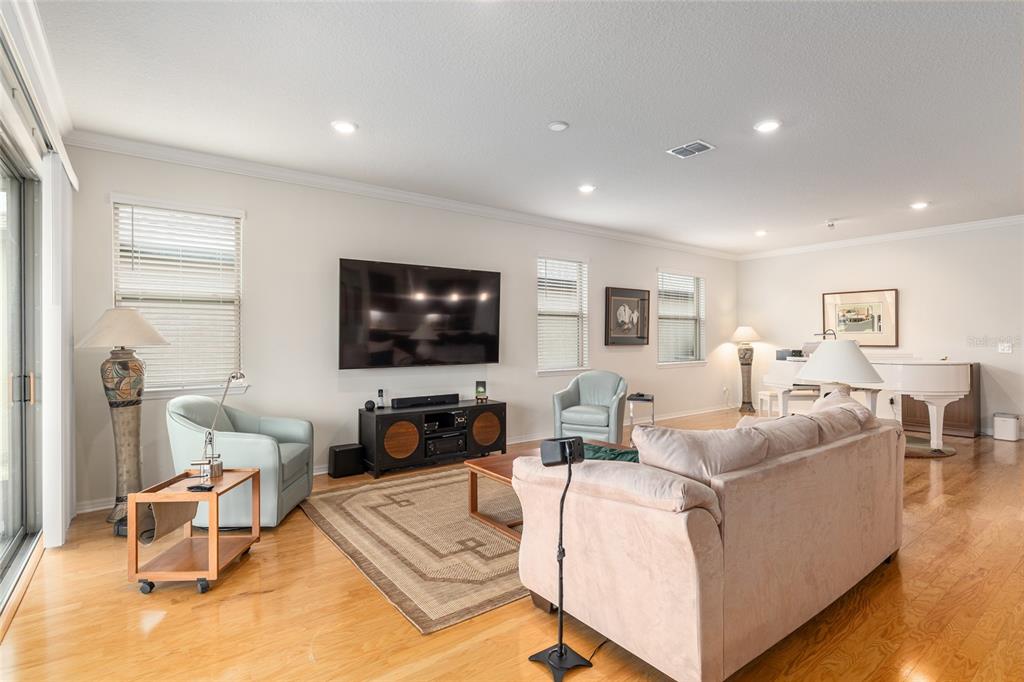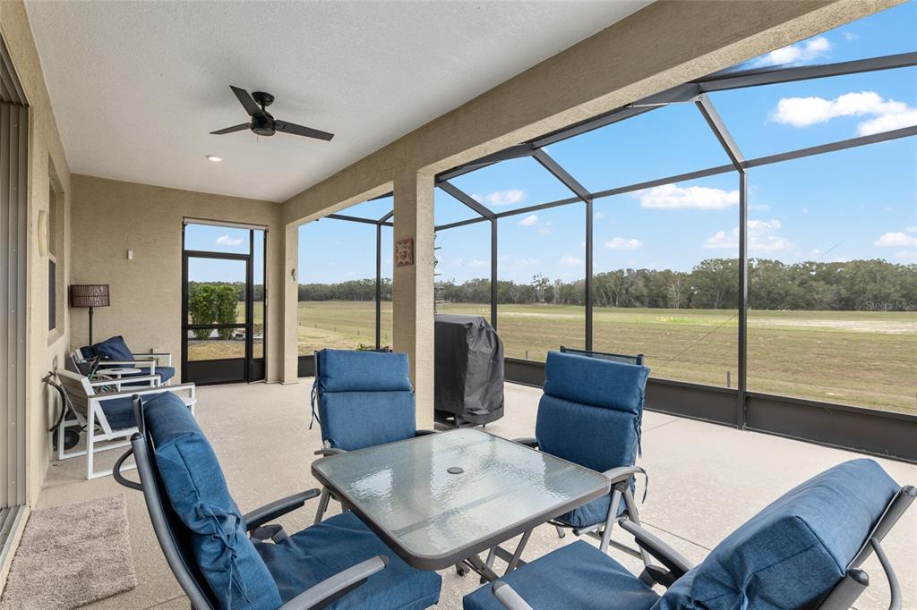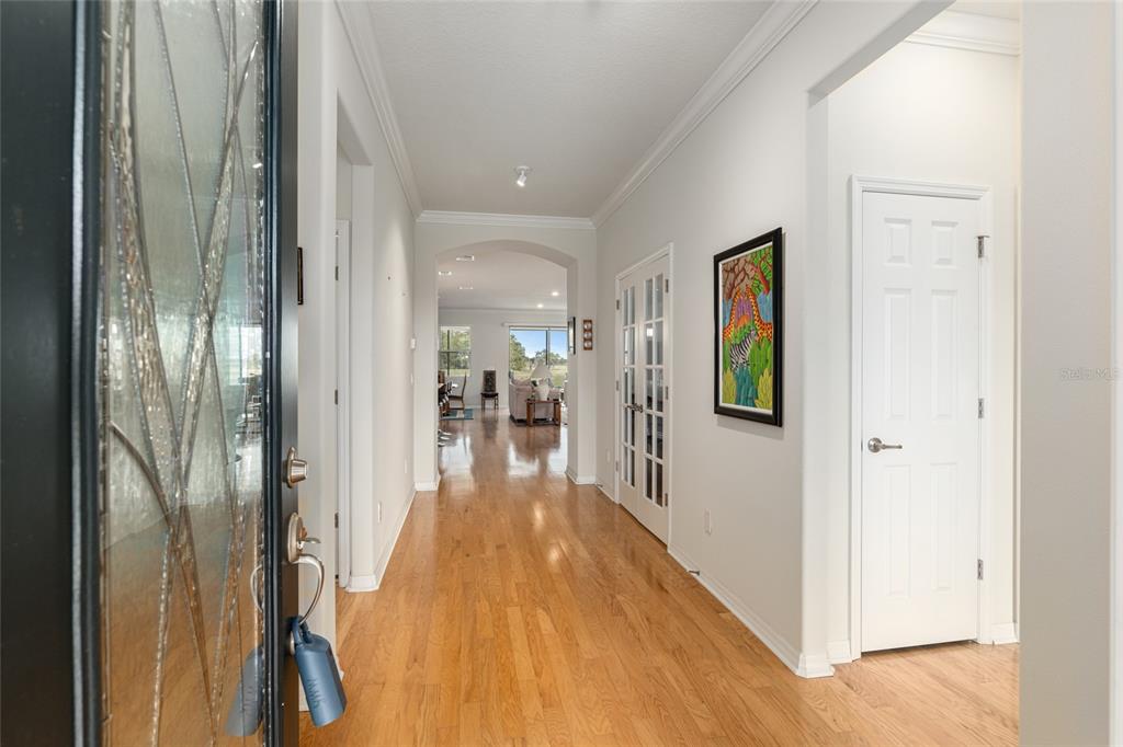 Welcome to stone creek, a popular senior community. this splendid two bedrooms, two bathrooms, and a flex room that could serve as a den or office. you will love this nearly new built home (2019) with gleaming hardwood floors throughout that enhances every room. custom paved driveway and walkway. expanded garage great for extra storage. enjoy a peaceful, and private evening in your outdoor living area in this expanded lanai. privacy is crucial for a serene backyard to relax in your outdoor space. this carefully planned kitchen has a convenient work area. you will love the look of this kitchen with mahogany cabinets, quartz counter tops, stainless appliances, contemporary backsplash and pantry. a large island with counter stools for small intimate dining. triple tea lighting over island. modern convertible wall mount stainless steel range hood. dimmer light switches. recess lighting. the foyer opens up to the kitchen and expanded great room with room for informal dining. crowned molding throughout. master bedroom with walk in shower and large walk-in closet. extra-long vanity in master bedroom with double sinks. a quiet separate bedroom wing for your guest. spacious laundry room with an abundance of wood mahogany cabinets. this lovely neighborhood pride is reflected in the well-kept homes of your future neighbors. stone creek, a secure gated del webb community that has outstanding activities. careful buyers, be sure to visit this one.9581 SW 63RD, OCALA, FL 34481