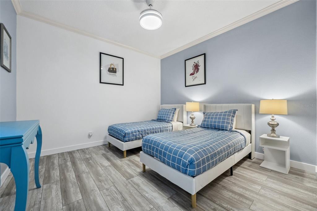 Remodeled, contemporary ground floor condominium located on castle point drive in stoneybrook golf & country club is now on the market. this meticulously maintained and fully furnished two-bedroom, two-bath unit is situated within the highly sought-after golf and tennis community of stoneybrook. the condo features newely installed luxury wooden laminate flooring throughout, enhancing ease of living, while updated lighting and ceiling fans contribute to the overall appeal. the master en-suite bathroom serves as a welcoming retreat, complete with a spacious, modern tiled walk-in shower, an updated sink vanity, and a linen closet. the master bedroom is equipped with two walk-in closets and a glass sliding door leading to an additional enclosed lanai. enjoy the serene and private views of the preserve, surrounded by abundant nature. the second remodeled full bathroom includes a luxurious vanity and a tub/shower combination. the guest bedroom also features a walk-in closet for added storage convenience. additionally, there is a dedicated laundry room equipped with shelving and a full-size washer and dryer. condo has a deeded 1 car garage with plenty of room for your car, beach toys and sports gear. walk out your front door to your own heated community pool and screened in deck area to visit with neighbors and enjoy the sunshine. stoneybrook golf and country club is an established community with top-notch amenities that include an 18 hole arthur hills designed golf course, lighted har tru tennis/pickleball facilities, well-stocked pro-shop, bocce court, an additional heated pool and spa, full service restaurant/bar/meeting rooms, well-equipped fitness center, yoga/dance room, sharing library, walking/biking trails, fishing spots, and loads of planned activities! in 2024, the golf course went through a complete redesign and is now open to the members!as a bonus, the seller has paid the full golf course modernization project assessment—giving you full access to the upgraded course at no additional cost! stoneybrook is a prime location close to the legacy trail, minutes to area beaches, shopping, the arts, restaurants and all sarasota and venice has to offer! stoneybrook offers its members more than a residence but a social lifestyle to enjoy for years to come. ******lender, rob kozina, with nmls#1081156 from midamerica lenders & co, is extending an offer of up to 1% of the loan amount towards a rate buy down or lender credit specifically for this property. midamerica lenders & co, nmls#309009, is an equal housing lender. please be advised that this offer does not constitute a commitment to lend, and certain restrictions may apply********* make your appointment now to see this awesome condo/life style. come and discover florida living at its finest!9611 CASTLE PT #912, SARASOTA, FL 34238