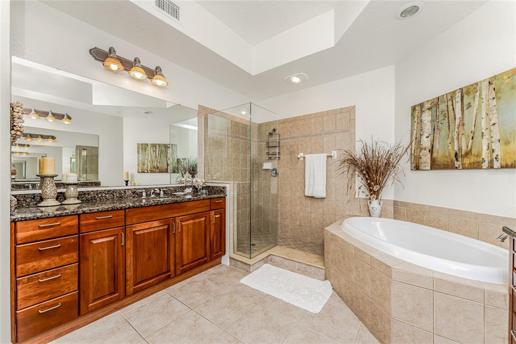 Split Bedroom Walk-In Closet(s)Ceiling Fan(s) High Ceilings Stone Counters Thermostat Open Floorplan Solid Wood Cabinets Tray Ceiling(s)Exterior Features: