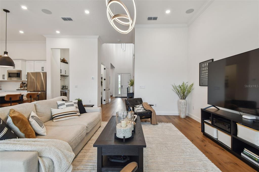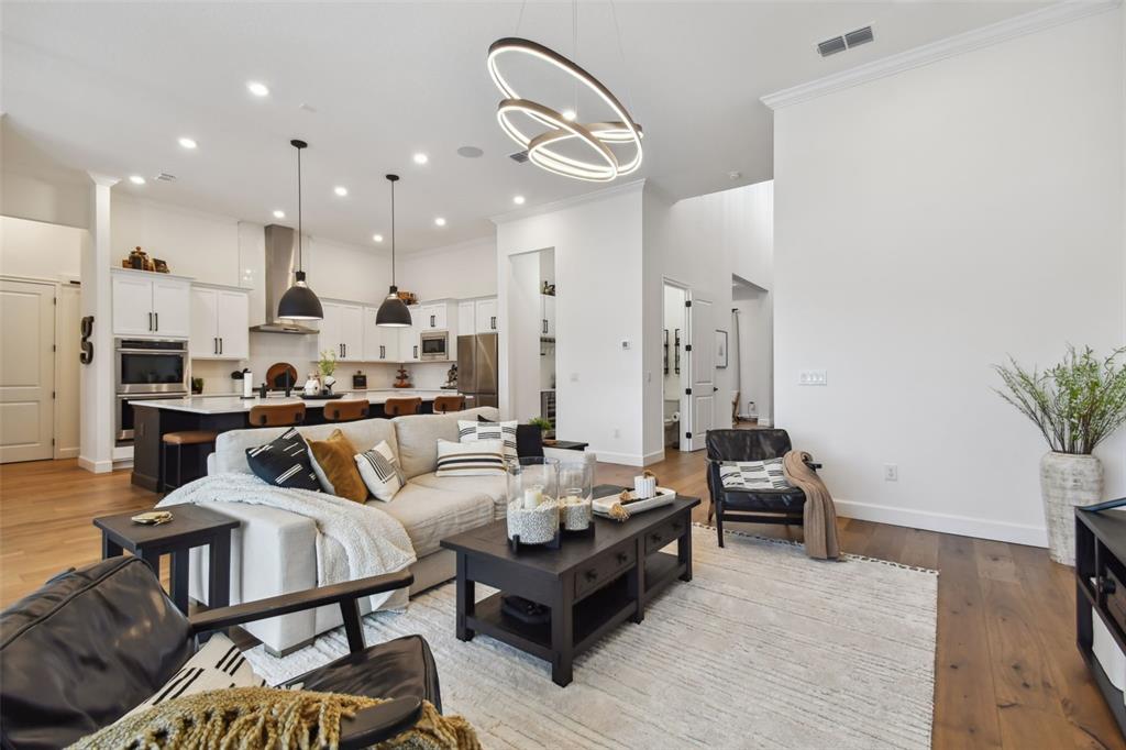 Split BedroomWet BarBuilt-in Features Walk-In Closet(s)Ceiling Fan(s) Eating Space In Kitchen High Ceilings Living Room/Dining Room Combo Stone Counters Thermostat Open Floorplan Solid Surface Counters Solid Wood CabinetsCrown Molding Primary Bedroom Main Floor Kitchen/Family Room Combo Coffered Ceiling(s) L Dining Tray Ceiling(s)Cathedral Ceiling(s)Exterior Features: