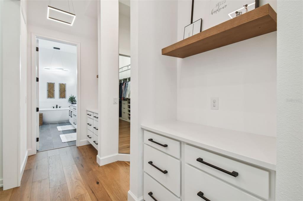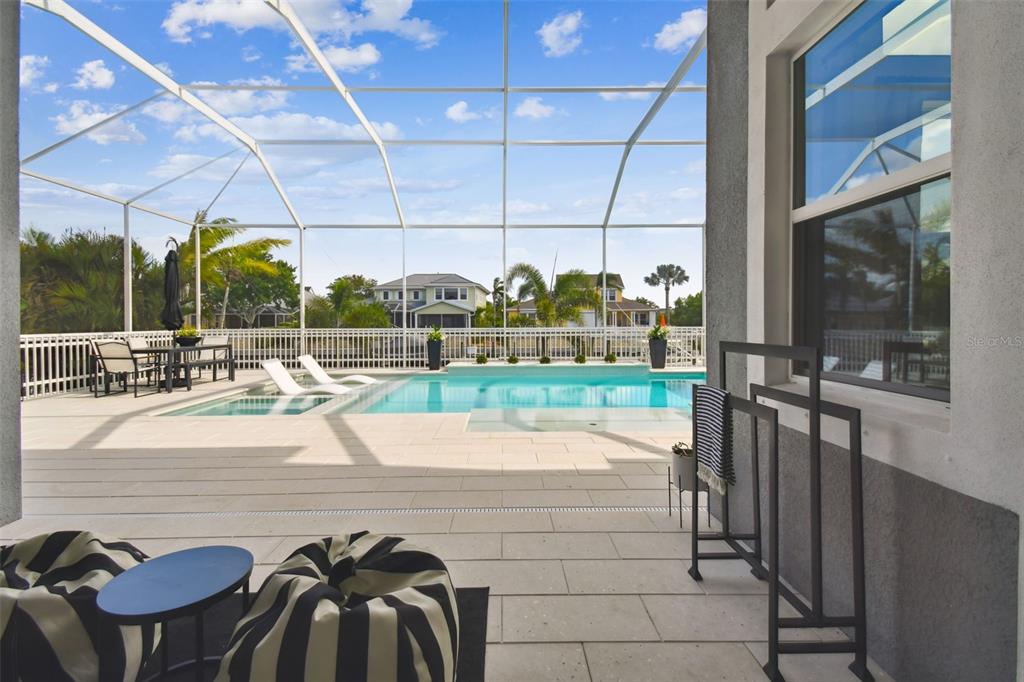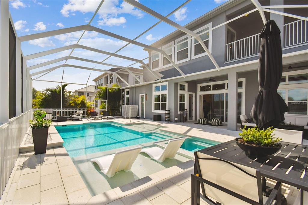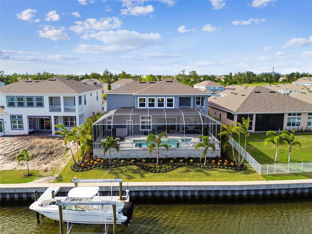 Exquisite waterfront, pool home with direct bay/gulf access available to the buyer who appreciates the finest upgrades and move-in ready furnishings. step into this unparalleled blend of luxury living in the prestigious mirabay neighborhood. meticulously crafted and curated, this newly constructed 2-story home boasts 6 bedrooms, 5 full baths, 2 half baths and features a host of upgrades. this is the only cararra model with this distinctive elevation in mirabay. your journey begins the moment you enter the dramatic 25-foot foyer and take in the stunning architectural details and thoughtful design choices that reflect the seller's passion for interior aesthetics. upgraded engineered hardwood flooring adds warmth and elegance flowing throughout this open floorplan, complimented by 13-foot ceilings. forge powerful connections in your bespoke whiskey lounge with a striking 3-tiered tray ceiling, black accent wall, beautiful contemporary art and fixtures, and a stainless steel wine refrigerator. located across the entryway, is a spacious home office, perfect for the ceo mindset. find your zen in the inspired master suite, featuring tray ceilings, recessed lighting, custom ceiling fan, palatial windows, upgraded california closet with his-and-hers walk-in dressing rooms, custom mirrors, quartz surfaces, and a vast spa-like master bath including a luxurious shower with a rain showerhead and a 66" freestanding tub. an additional downstairs guest enclave features an en-suite bath with a glass-enclosed shower stall and french door leading out to the lanai. custom plantation shutters throughout. at the heart of this idyllic property lies the designer kitchen, complete with an expansive quartz island and countertops, custom lighting, high-end stainless steel appliances, 5-burner gas range and hood, double ovens, ceramic tile backsplash, spacious walk-in pantry, a butler's pantry expansion provides temperature-controlled wine storage. entertain in the elegant dining area and living space with custom led light fixtures and floor-to-ceiling windows. venture to your private waterfront oasis with a 2-story cage protecting the shimmering 36' x 26' pebble-tech pool with a cooling shell-stone deck, 2 sun shelves, 4 bubblers - 2 with led lighting, and built-in hot tub. brand new boat dock and slip will accommodate a vessel up to 45', equipped with a 20,000-lb boat lift, so you can hit the water and explore the many hidden treasures including islands, white sand beaches, and waterfront restaurants. an elegant hardwood and iron staircase leads to the expansive second floor with a bonus loft and upgraded kitchenette with wet bar, and a tech-enabled theater/media room. the second-floor balcony overlooks the serene surroundings. four more bedrooms provide 5-star accommodations, offering en suite or jack and jill bathroom, including a custom-crafted princess bedroom with a play area or sitting room and a private bath. the property includes a security system, water softener, and is poised to become part of a gated community in the near future. the custom decor, fixtures and furnishings are negotiable with the sales price. the mirabay waterfront community boasts a resort-style pool with a waterslide and lap lanes, lush landscaping, spa services, restaurant and bar, tennis, pickleball and cabanas. the fitness center is equipped with state-of-the-art facilities. at its heart is the 135-acre lagoon, perfect for boating, kayaking, and paddleboarding.978 SIGNET, APOLLO BEACH, FL 33572