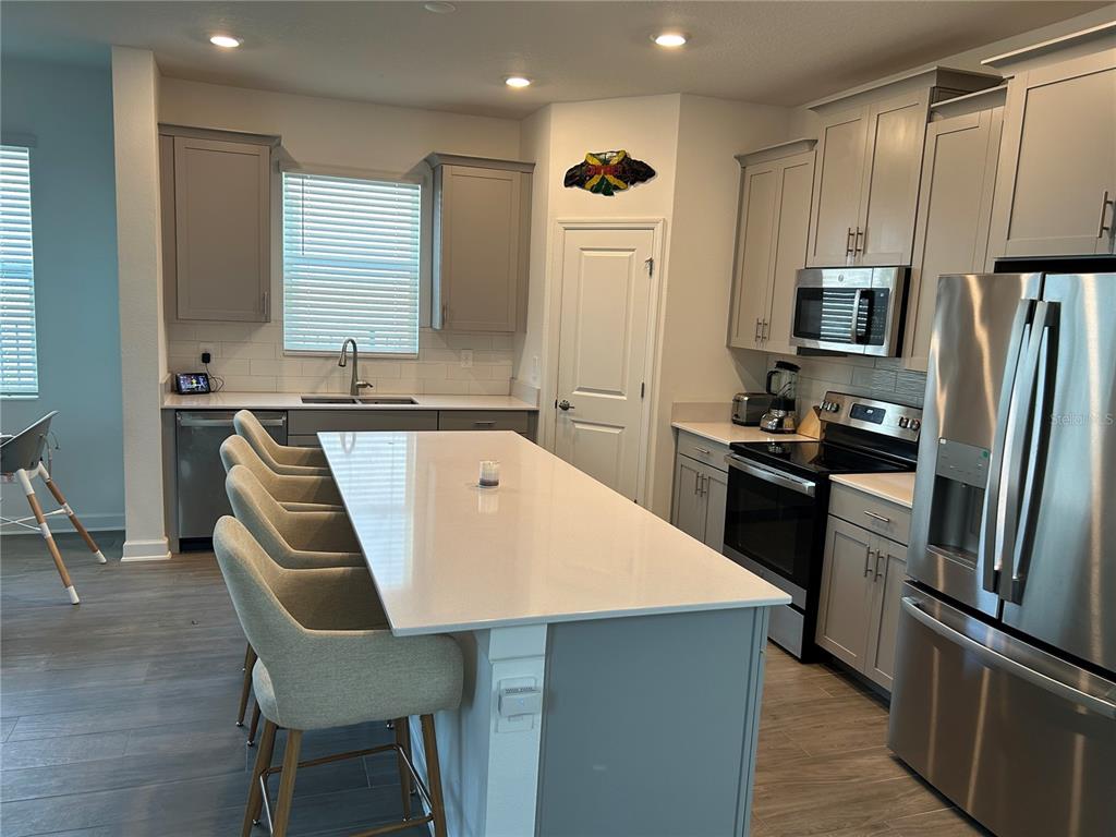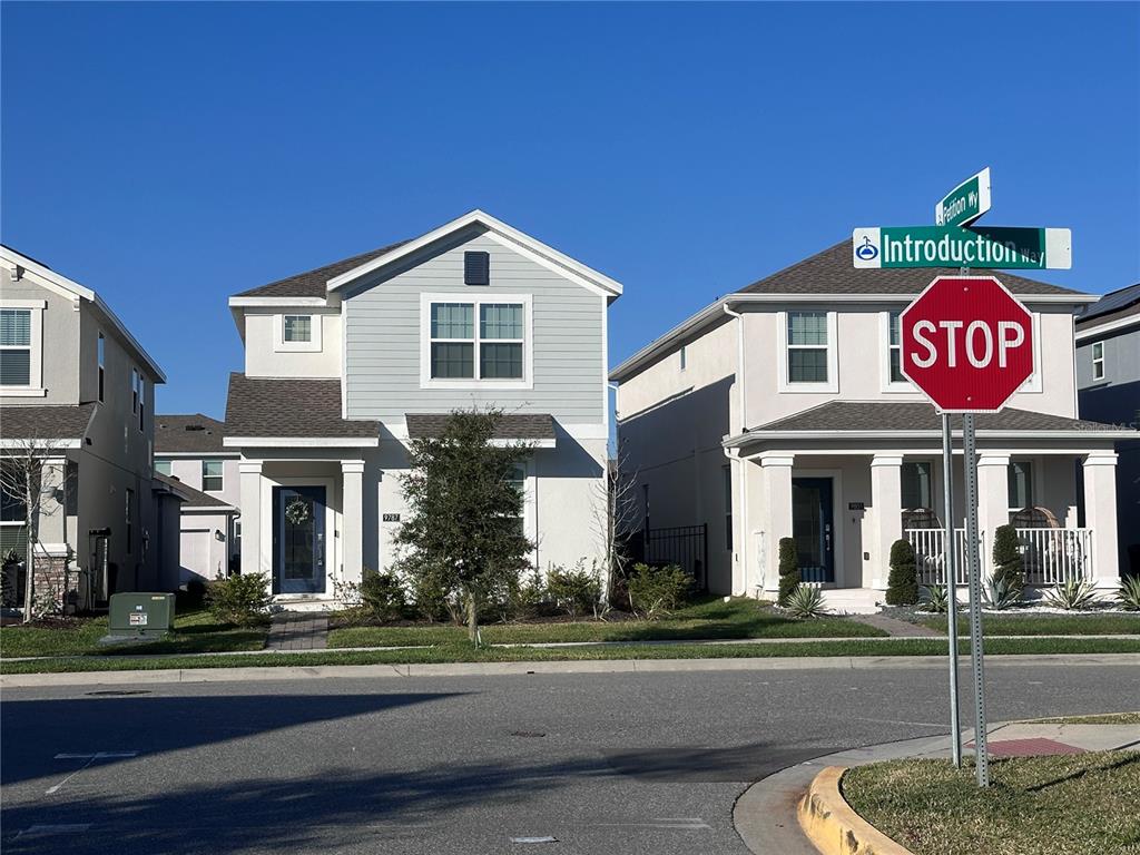 If you are looking for a modern, luxurious, move-in ready, energy efficient, almost brand new home in the thriving lake nona area of orlando, you must see this house built in 2023, located in the newer part of storey park! you are not just purchasing a home, you are buying a resort-style lifestyle! this neighborhood is so new that some internet maps show this house being surrounded by dirt, but this house, and all the houses around it, have been completed and there's no need to worry about construction going on immediately around you. this amazing 2 story home features 4 bedrooms plus a 2nd floor loft and laundry room, 3 full bathrooms and 1 half bath (on the first floor). there are 2 primary bedrooms (master suites), one on each level, making this ideal for multigenerational living. the kitchen has stainless steel appliances with quartz countertops and a big breakfast island. it overlooks the dining and living room area. the 2nd floor has a loft in the middle, surrounded by 3 bedrooms and the laundry room. washer & dryer are not included. there is a 2 car garage and a driveway with room for 2 guest vehicles, accessible from the back of the house on eyre aly. this house includes a 50 gallon, hybrid electric heat pump water heater. it also includes leased solar panels on the roof, which is easily assumable by the buyer, without any credit checks. to power this house, $73 plus applicable taxes is paid monthly to sunnova (which is not subject to increases for the life of the lease) and in addition, current owners pay approximately $20/month to duke energy, based on their usage. owners use an app to monitor the performance of the system. see attachments for details on this 20 year lease. there is also an in-wall pest system. hoa payment includes basic internet, cable and a land line with spectrum bulk services. it's an excellent floor plan with plenty of storage areas. although this house does not have a yard, it's a 2 minute walk to the closest community center which gives you access to green space, playground, basketball & volleyball court, a pool, fitness center and the community mailboxes. you would also have access to the second community center located at 11650 biography way (a 3 min drive or 23 min walk), where there's a clubhouse with a resort-style swimming pool (lap pool, lounge pool, hot tub) and full-service cafe with poolside food and beverage service, fitness center, community garden, tennis court, playground, gated dog park, and walking paths throughout the neighborhood. this community hosts weekly events all year round and is very festive with all the holidays. note: google maps lists an incorrect location for property. it is actually located at the intersection of introduction way & petition way. this property is walking distance to the new middle school and new high school (innovation high school). a new state-of-the-art elementary school is being built at the end of introduction way and it's projected to open later this year. in the meantime, sun blaze elementary school is an 8 min drive. it is a 10 min drive to boxi park and lake nona town center, 14 min drive to orlando international airport, 18 min to waterford lakes town center, approx. 35 min to the theme parks, 45 min to ksc and 51 min to cocoa beach. time to move to one of the newest and almost fully developed communities in the city. schedule a showing today! (measurements are approximate. buyer should take their own measurements)9787 INTRODUCTION, ORLANDO, FL 32832