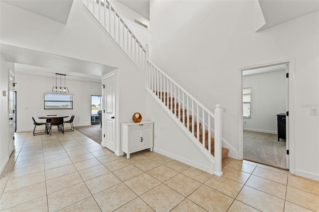Walk-In Closet(s)Ceiling Fan(s) Eating Space In Kitchen High Ceilings Stone Counters Thermostat Open Floorplan Window Treatments Solid Surface Counters Solid Wood Cabinets Kitchen/Family Room Combo PrimaryBedroom Upstairs In Wall Pest System Pest Guard SystemExterior Features: