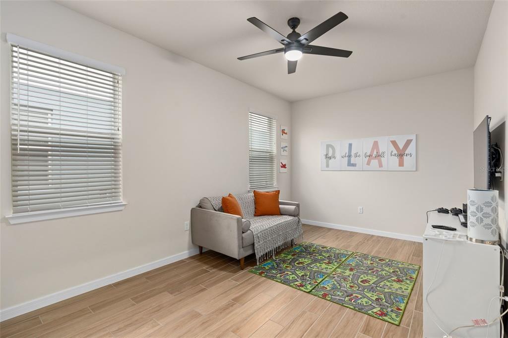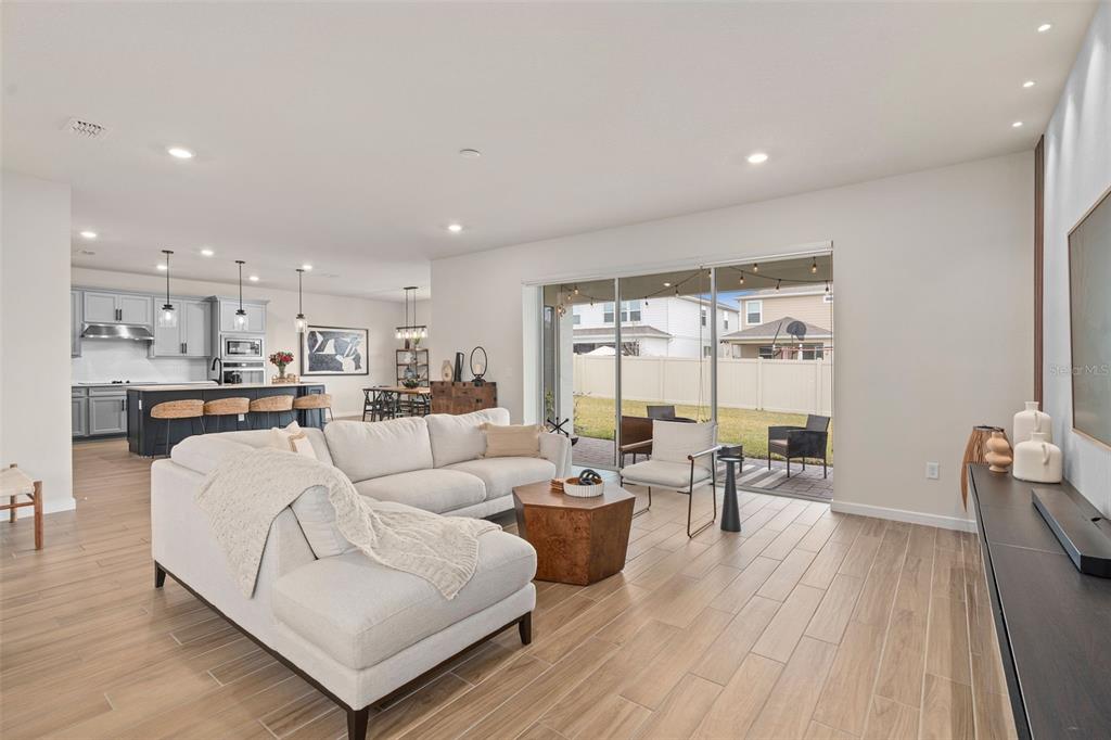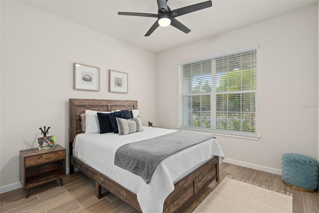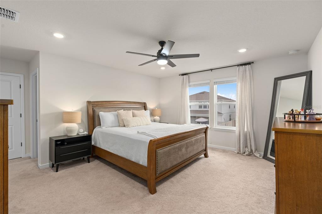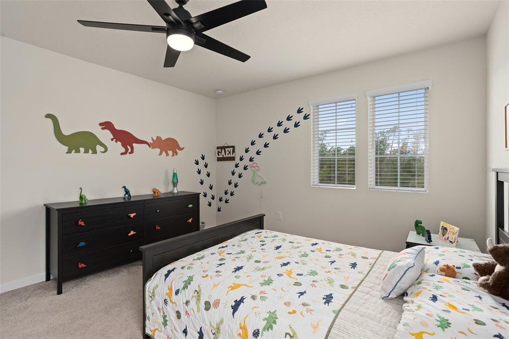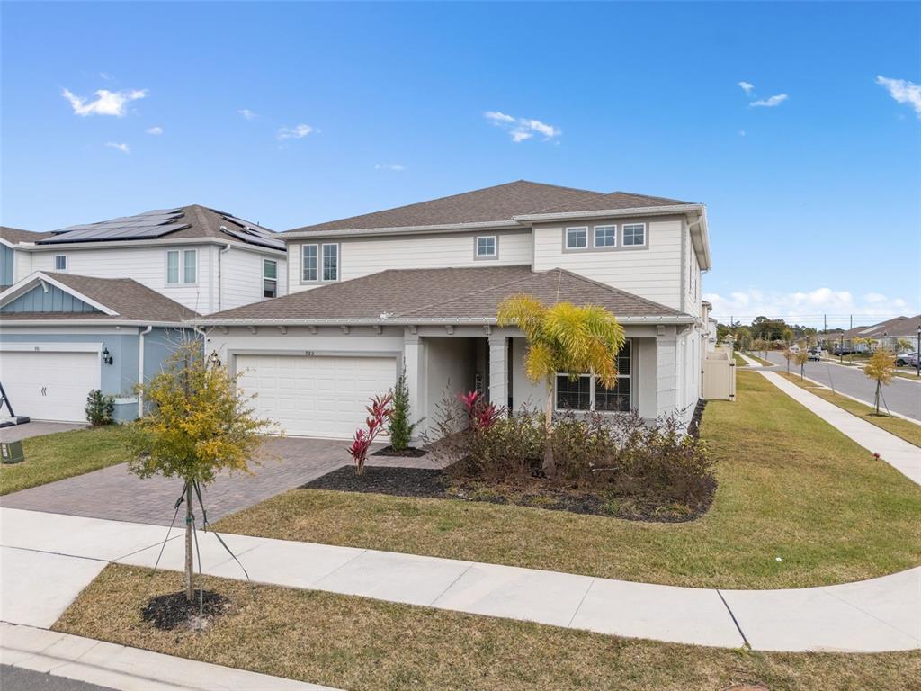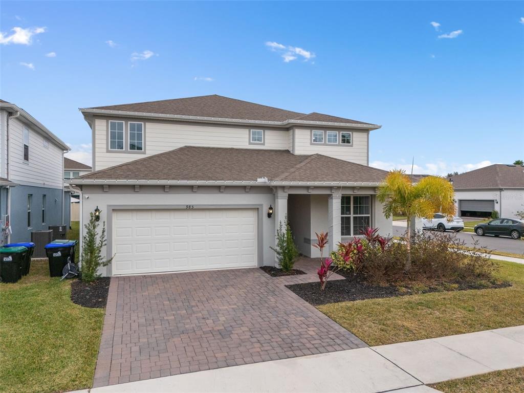 This stunning 5-bedroom, 3.5-bathroom home is nestled on one of the few corner lots in one of orlando's most perfectly designed and highly desired neighborhoods! living in savannah palms will keep you close to everything you need while making you feel like you're in your own peaceful, private community! from the moment you pull up, you'll see the paver driveway leading up to the covered front porch with the beautiful sitting area where you can sip coffee and watch the ducks play in the pond. as you pass through the wonderful front accent door, you will see that the entire first level is covered in upgraded porcelain tile. you'll pass the guest suite with full bath and a spacious walk-in closet. to the left of front door you will find the almost 200 square foot bonus room which could be a stately home office or game room! from there you'll see the double living room area with a beautiful custom accent wall with custom recessed lighting and chandelier installed. you'll also see the triple sliding glass door leading to the back porch with custom lighting installed to illuminate the back yard with the brand new vinyl fence. no expense has been spared in the kitchen - stone counters, custom cabinets with custom hardware, custom chandeliers, and an upgraded faucet! as you proceed upstairs, you'll find the wonderful primary suite with a luxurious bath and extended walk in closet! every upstairs bedroom has brand new ceiling fans installed. the upgraded laundry room comes with added cabinets, sink, and a brand new washer/dryer worth over $2000! all bathrooms have updated hardware, and the home holds almost $6,000 in upgraded window treatments and blinds! the full 2-car garage has also been upgraded with a brand new painted floor. come see all these beautiful upgrades today and make this home yours!985 SAVANNAH PALMS, ORLANDO, FL 32828