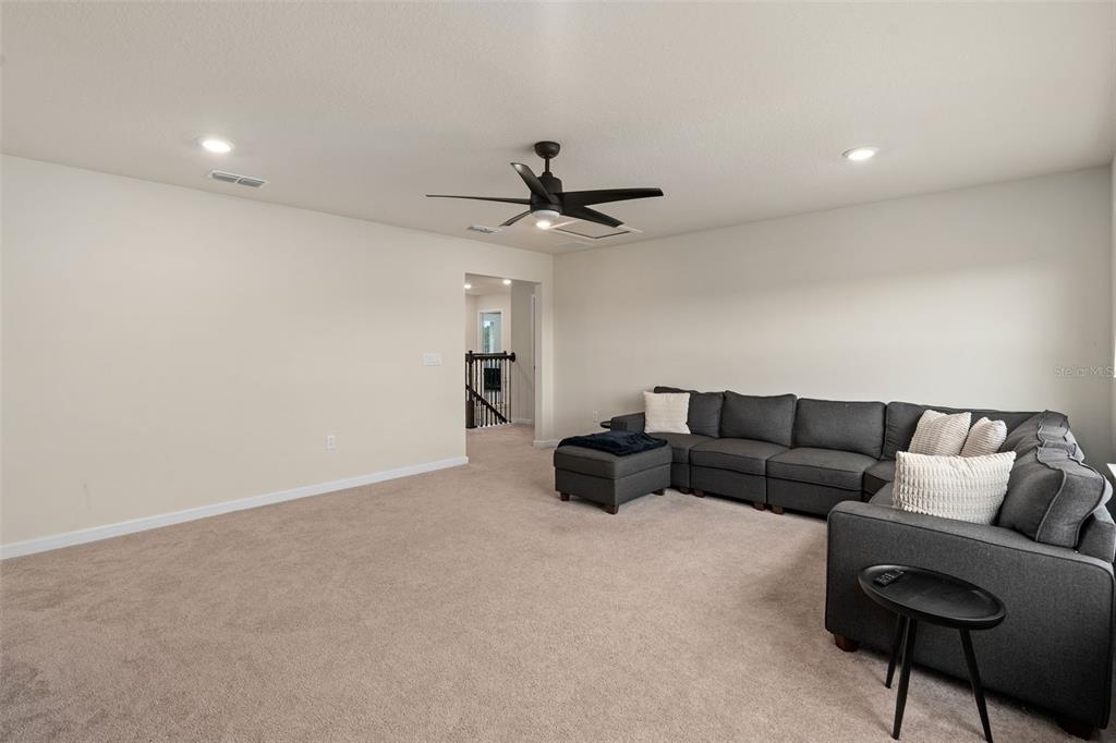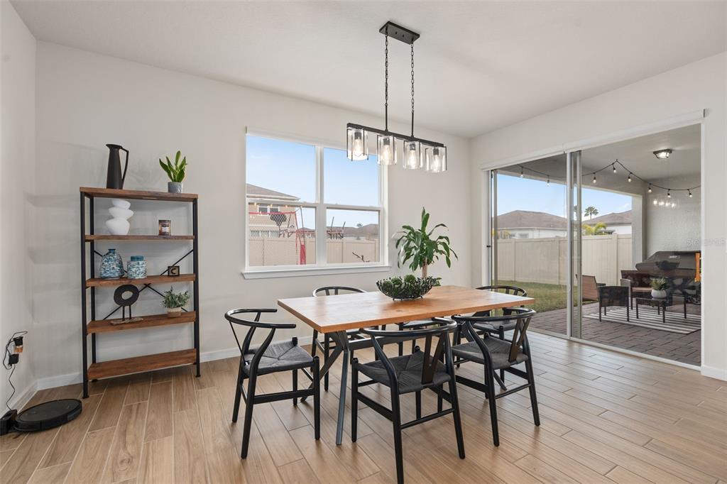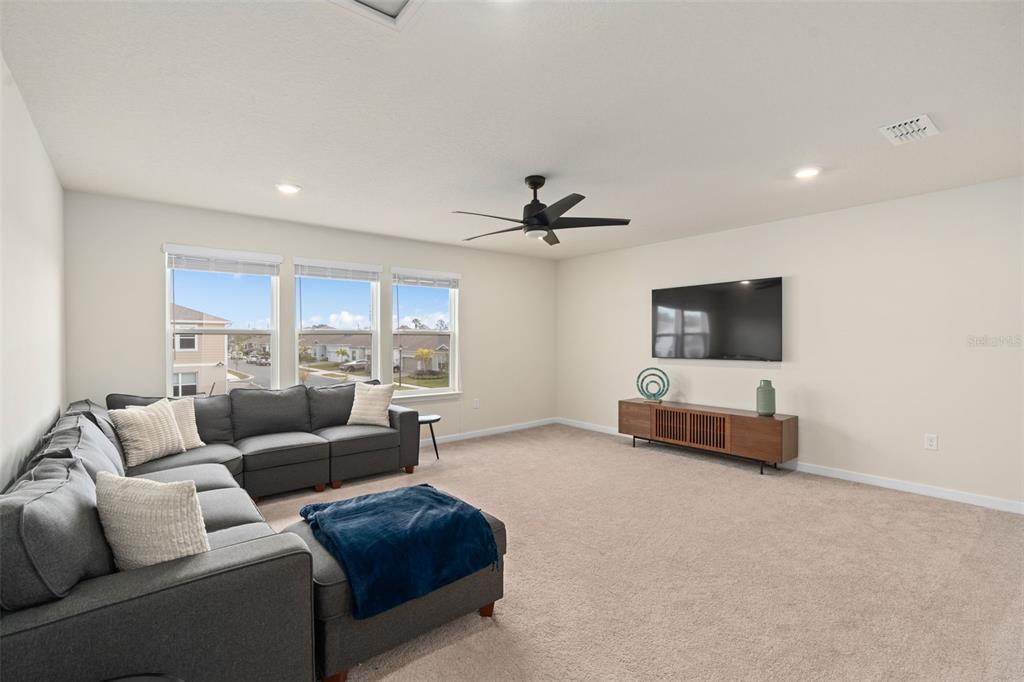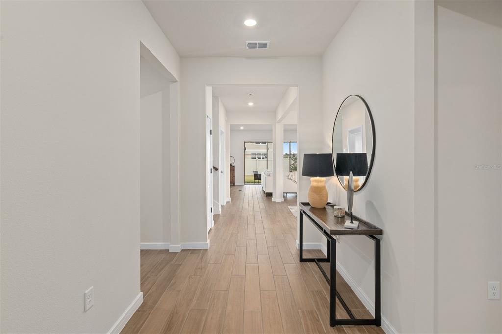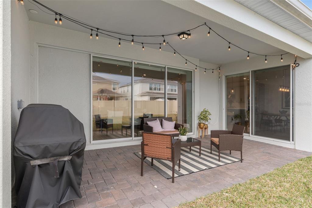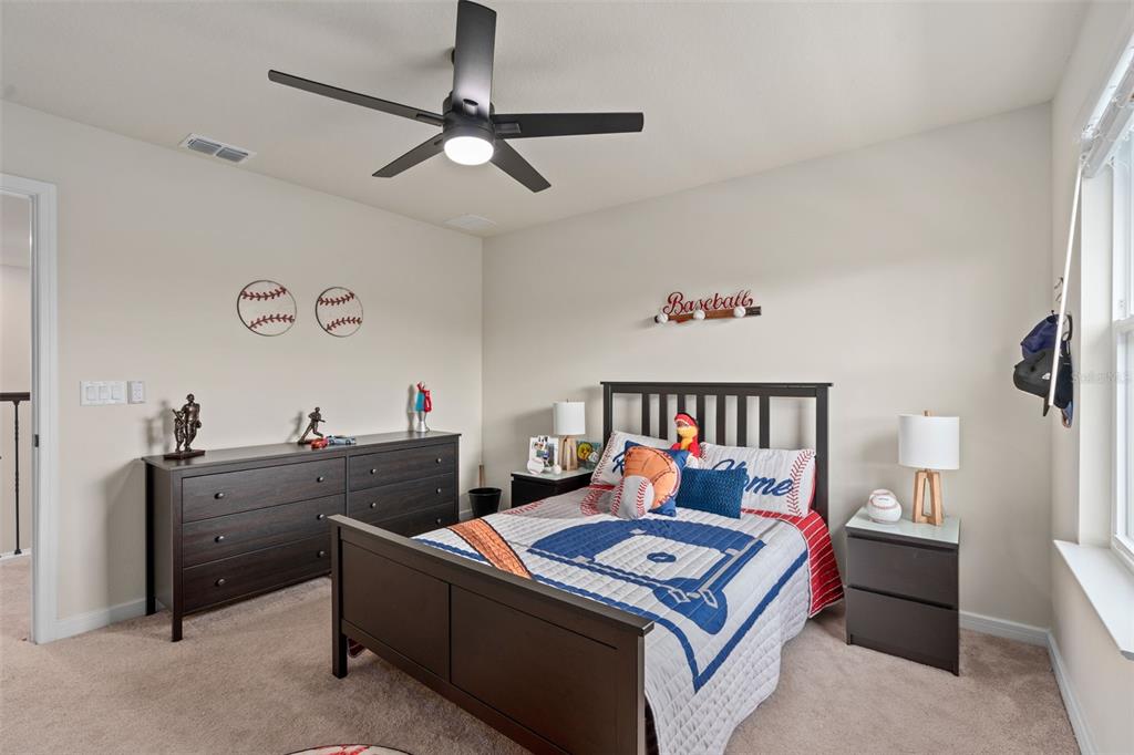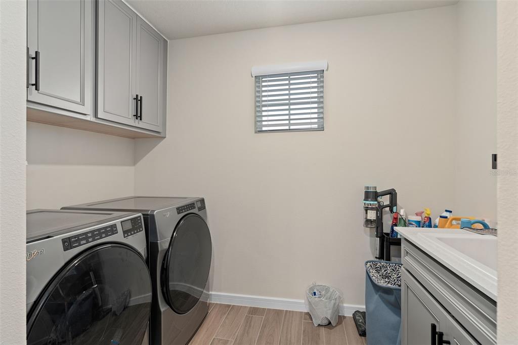 This stunning 5-bedroom, 3.5-bathroom home is nestled on one of the few corner lots in one of orlando's most perfectly designed and highly desired neighborhoods! living in savannah palms will keep you close to everything you need while making you feel like you're in your own peaceful, private community! from the moment you pull up, you'll see the paver driveway leading up to the covered front porch with the beautiful sitting area where you can sip coffee and watch the ducks play in the pond. as you pass through the wonderful front accent door, you will see that the entire first level is covered in upgraded porcelain tile. you'll pass the guest suite with full bath and a spacious walk-in closet. to the left of front door you will find the almost 200 square foot bonus room which could be a stately home office or game room! from there you'll see the double living room area with a beautiful custom accent wall with custom recessed lighting and chandelier installed. you'll also see the triple sliding glass door leading to the back porch with custom lighting installed to illuminate the back yard with the brand new vinyl fence. no expense has been spared in the kitchen - stone counters, custom cabinets with custom hardware, custom chandeliers, and an upgraded faucet! as you proceed upstairs, you'll find the wonderful primary suite with a luxurious bath and extended walk in closet! every upstairs bedroom has brand new ceiling fans installed. the upgraded laundry room comes with added cabinets, sink, and a brand new washer/dryer worth over $2000! all bathrooms have updated hardware, and the home holds almost $6,000 in upgraded window treatments and blinds! the full 2-car garage has also been upgraded with a brand new painted floor. come see all these beautiful upgrades today and make this home yours!985 SAVANNAH PALMS, ORLANDO, FL 32828